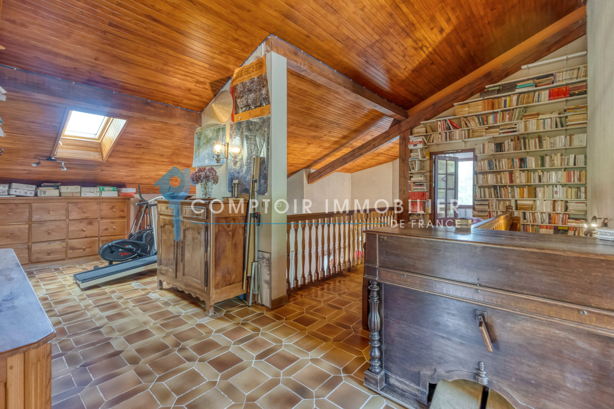 Son côté atypique et sa configuration originale vous séduira avec son entrée par le 2ème étage s'ouvrant directement sur un spacieux espace actuellement bureau agrémenté de multiples rangements encastrés de bibliothèque sur mesure. 2 chambres avec une salle de bain + wc séparé.