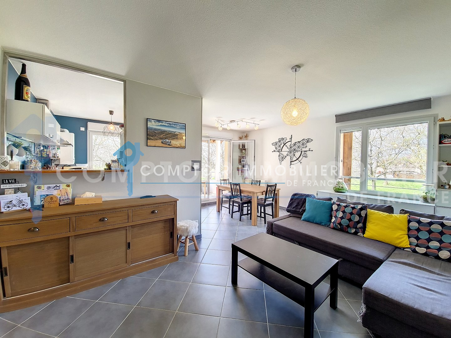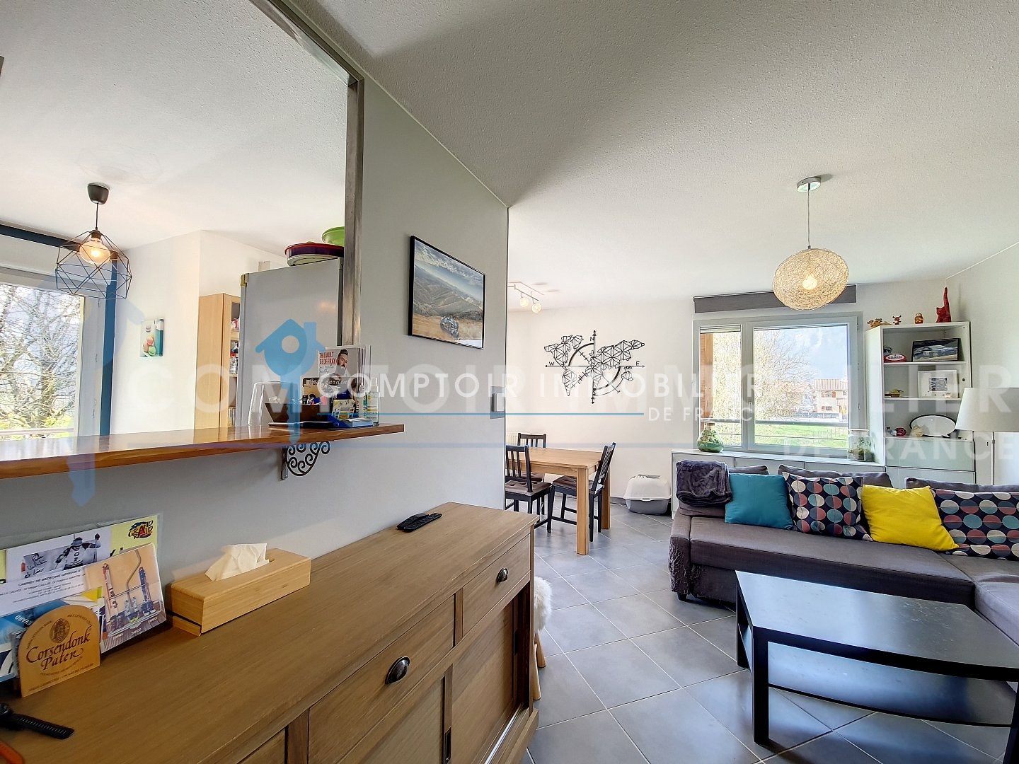En Exclusivité chez Comptoir Immobilier de France: Situé à Tencin, commune de 2100 habitants en plein essort à 25min de Grenoble et Chambéry dans la résidence de la Moussaye proche de toutes les commodités (à 10min de Crolles et 15min de Saint Ismier, Meylan, Montbonnot). Résidence calme et sécurisée à taille humaine de 2011 au 1er et dernier étage sans ascenseur, comprenant un parking avec placement libre et la possibilité d'acquérir un garage de 15m² pour 15000€. Venez découvrir ce lumineux appartement T3 exposé Sud de 63m² où vous aurez juste à poser vos valises ! Il se compose d'une cuisine équipée ouverte sur un vaste séjour d'environ 32m², de 2 chambres de 10m², d'une salle de bain et d'un wc séparé ainsi que de nombreux rangements. Sa terrasse d'environ 10m² offrant une vue sur les massifs et les champs de noyer finira de vous charmer ! Visite virtuelle disponible / Taxe Foncière: 650€ Charges annuelles de copropriété: 1 160 € Montant estimé des dépenses annuelles d'énergie: 612 € par an. Soumis au statut juridique de la Copropriété. Nb de lots : 8. CIF GRENOBLE GRESIVAUDAN - Titouan NICOLAS - 06 67 58 83 30 - Agent commercial RSAC N° 889 187 969 - Ville du greffe : GRENOBLE - Plus d'informations sur cif-grenoble-gresivaudan.com (réf. 14568) Honoraires charge vendeur
