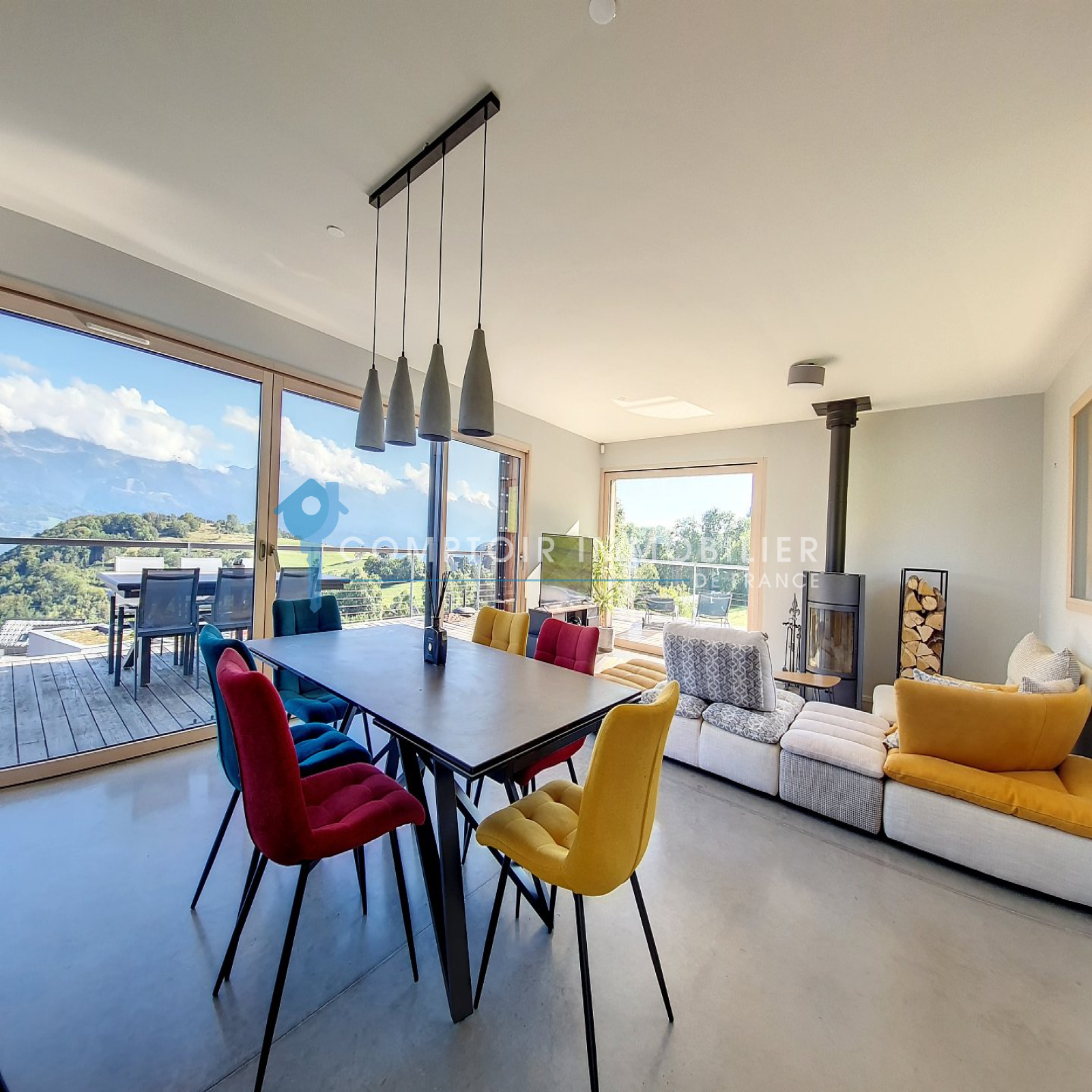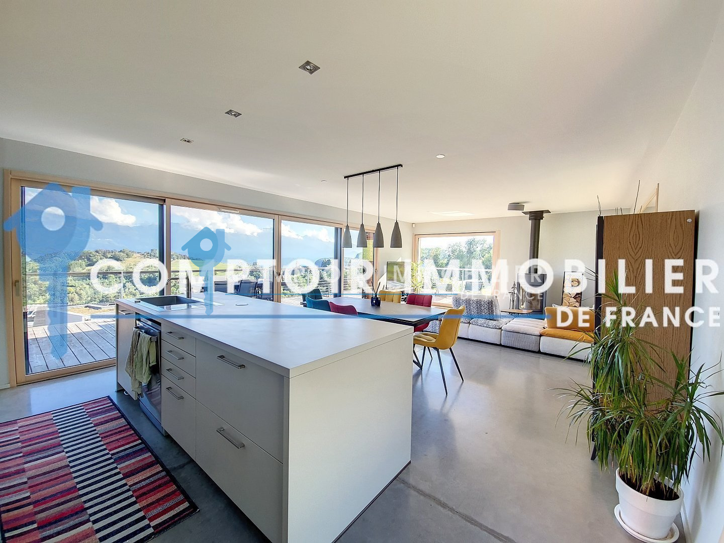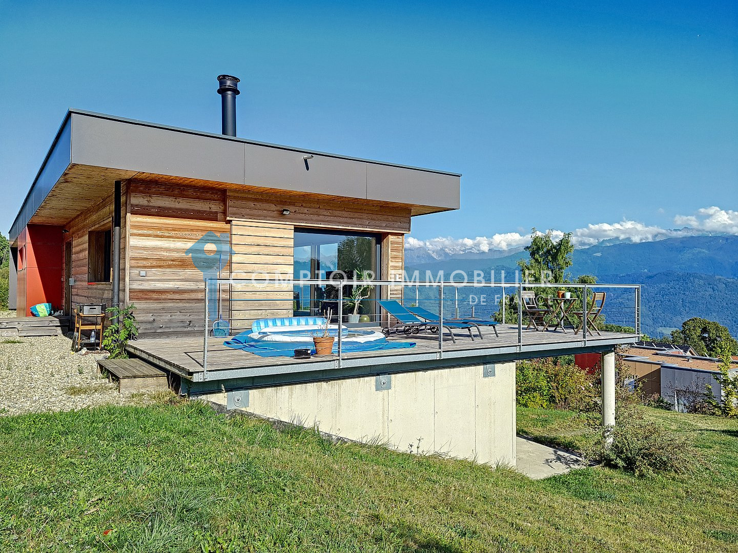 En exclusivité Comptoir Immobilier de France Au c?ur de la nature, située sur les hauteurs de la vallée du Grésivaudan à Saint Bernard du Touvet (Plateau des petites roches) entre Grenoble et Chambéry. Venez découvrir cette maison contemporaine d'exception construite en 2014 d'une superficie d'environ 190m² habitable, le tout sur un terrain arboré de 2000m² comprenant 4 places de stationnement. Construite sur deux niveaux, elle se compose au RDC de 2 chambres de 13 et 15m², d'une buanderie d'une SDB et un wc séparé. A l'étage vous profiterez d'une cuisine équipée ouverte sur un grand séjour salle à manger de près de 50m² donnant sur la terrasse, d'une chambre de 11m², d'une suite parentale de 28m², d'un coin bureau et d'une salle de bain avec wc séparé. Traversante Sud/Est/Ouest, ses prestations de qualité et sa terrasse offrant une vue panoramique et imprenable sur les montagnes finiront de vous charmer ! visite virtuelle disponible CIF GRESIVAUDAN - Pascal AMALRIC - 06 26 56 64 16 - Plus d'informations sur cif-immo.com (réf. 13994) CIF GRESIVAUDAN - Titouan NICOLAS - 06 67 58 83 30 - Plus d'informations sur cif-immo.com (réf. 13994) -- Informations CORONAVIRUS : Nos visites s'effectueront avec la mise en place d'un protocole sanitaire, notamment avec le port d'un masque et dans le respect des gestes barrières, afin d'assurer la protection de tous. --