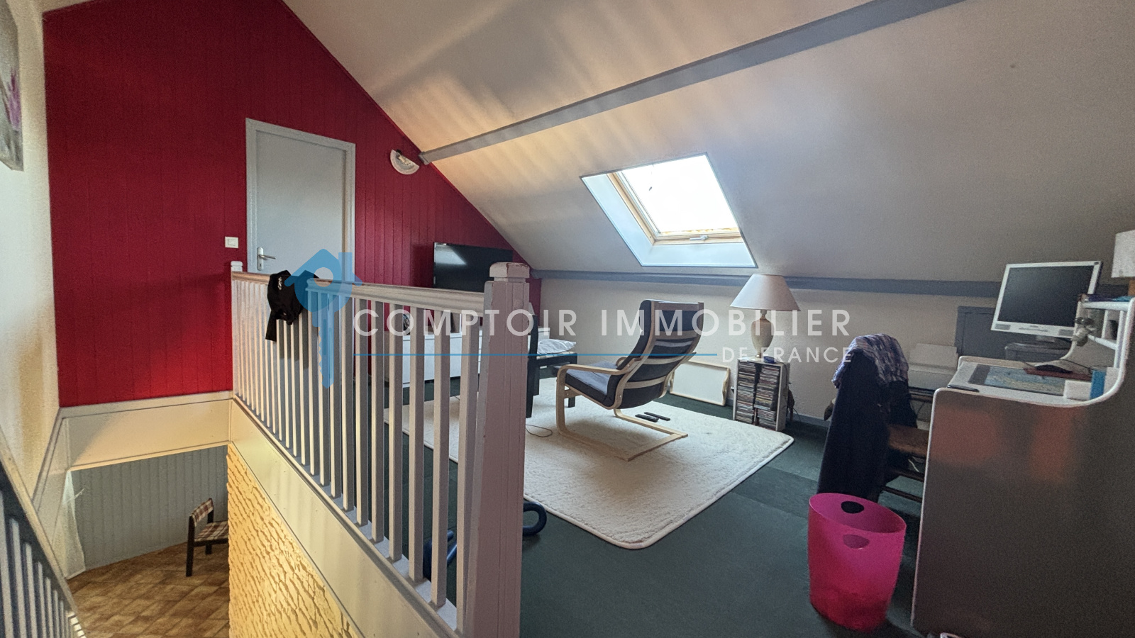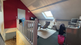 A l'étage, vous découvrirez un espace salon bureau, une chambre, une salle d'eau avec WC, 2 greniers offrant un bel espace de stockage.