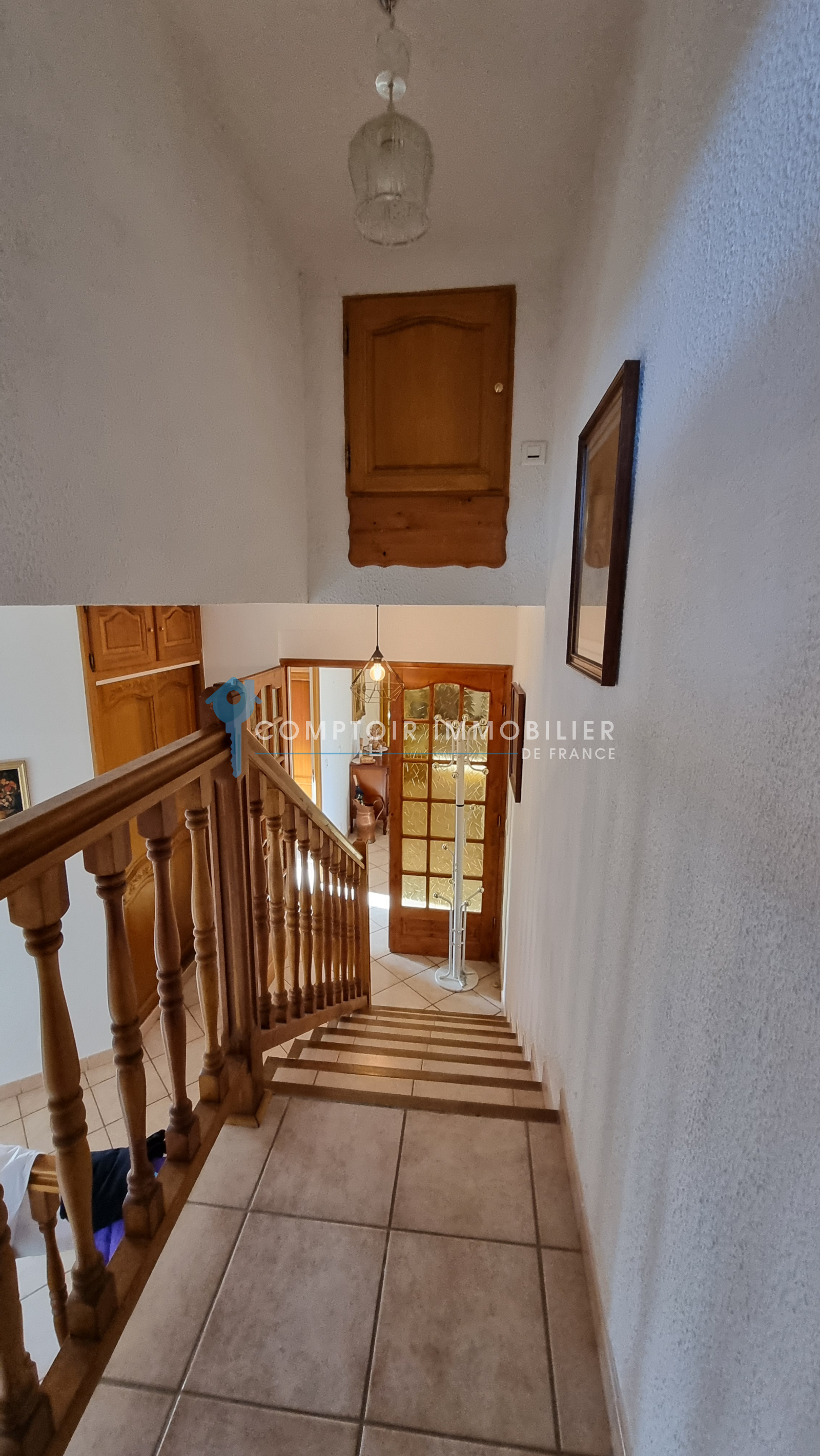 Au demi-niveau supérieur, accessible par une montée d’escaliers de quelques marches, 2 chambres avec au milieu, une salle d’eau W.C.