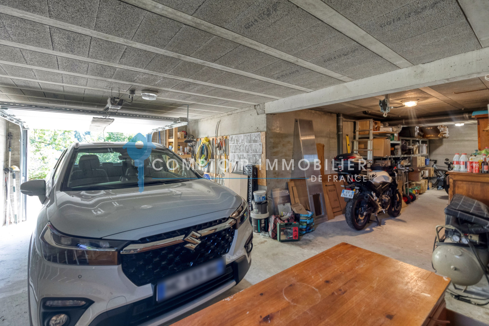 Au sous-sol 80 m² de rangement et garage avec une buanderie et une salle de sport.
