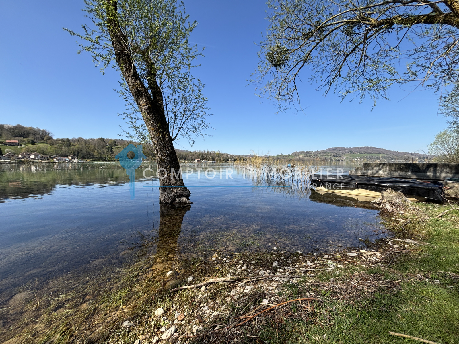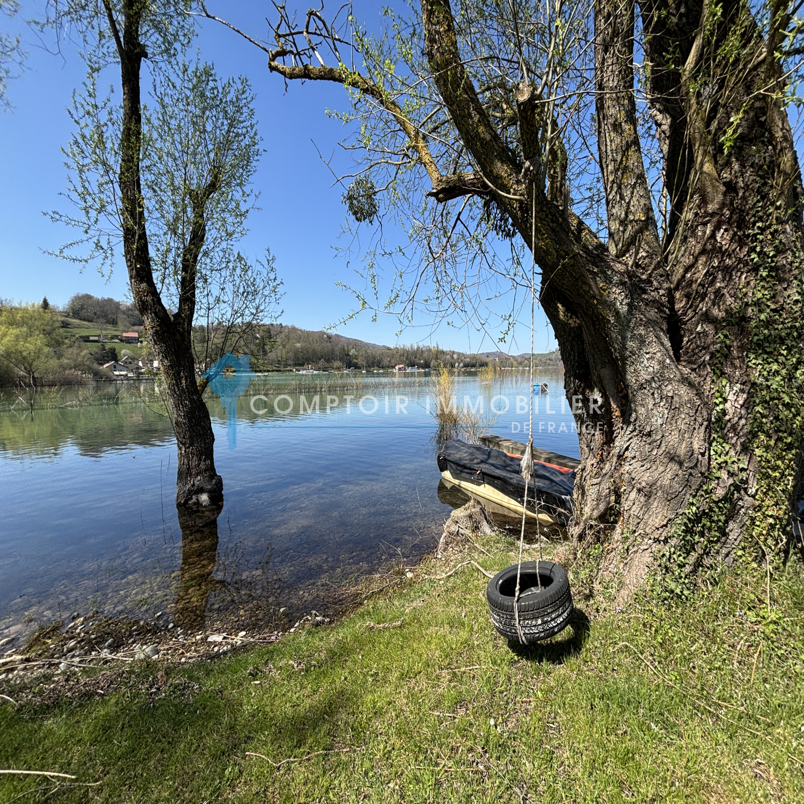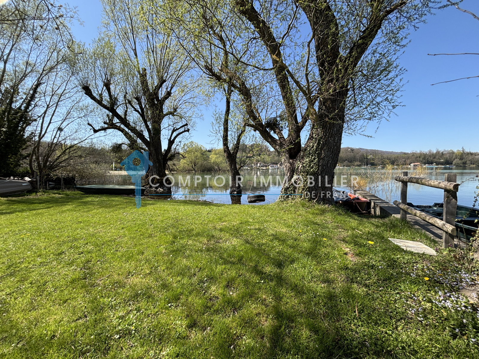 * Une plage privée avec accès au lac bleu de Charavines, son espace de verdure d'environ ainsi qu'un amarage pour un bateau (le petit plus une barque vous attend)