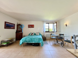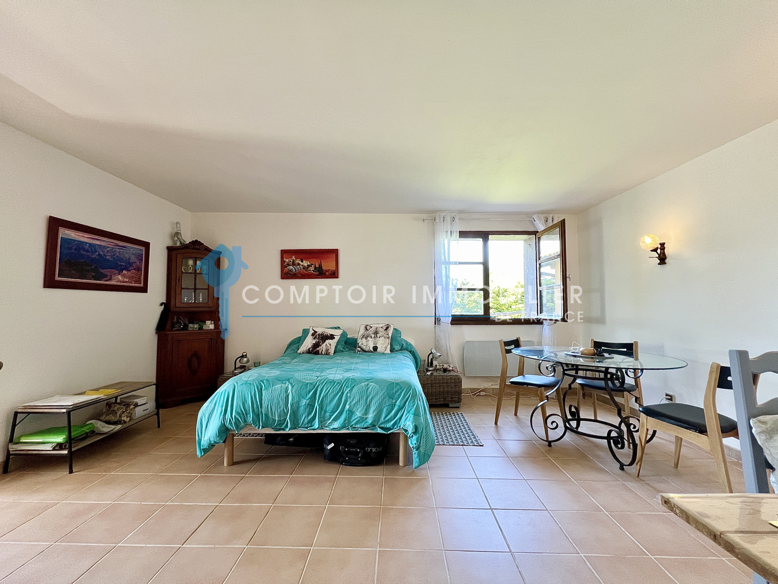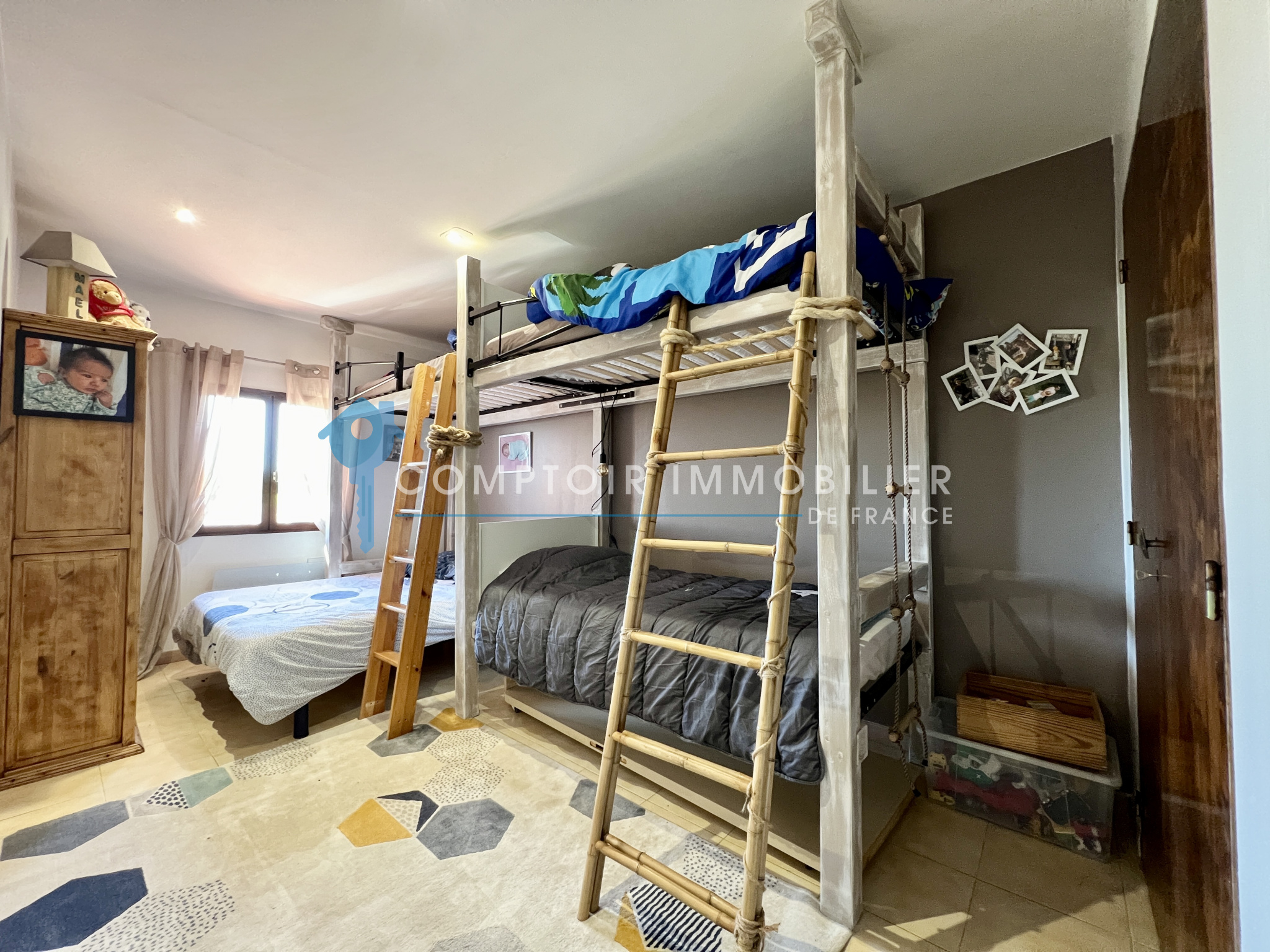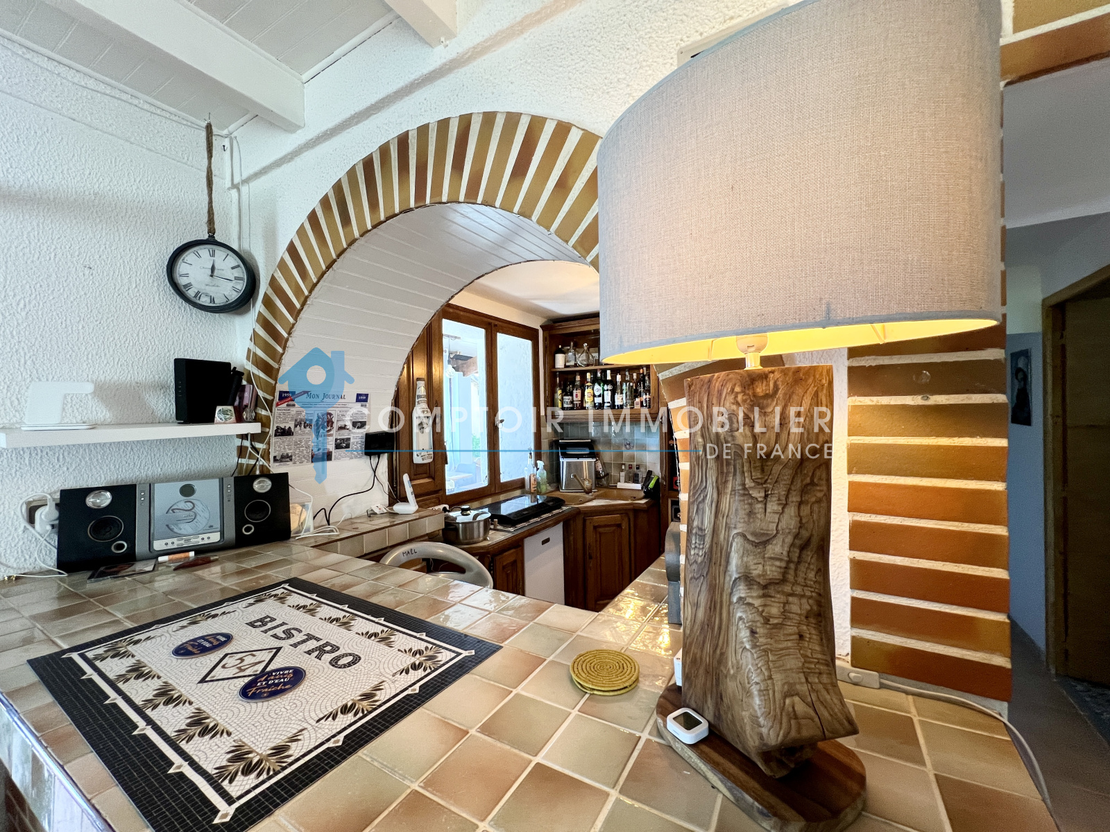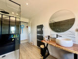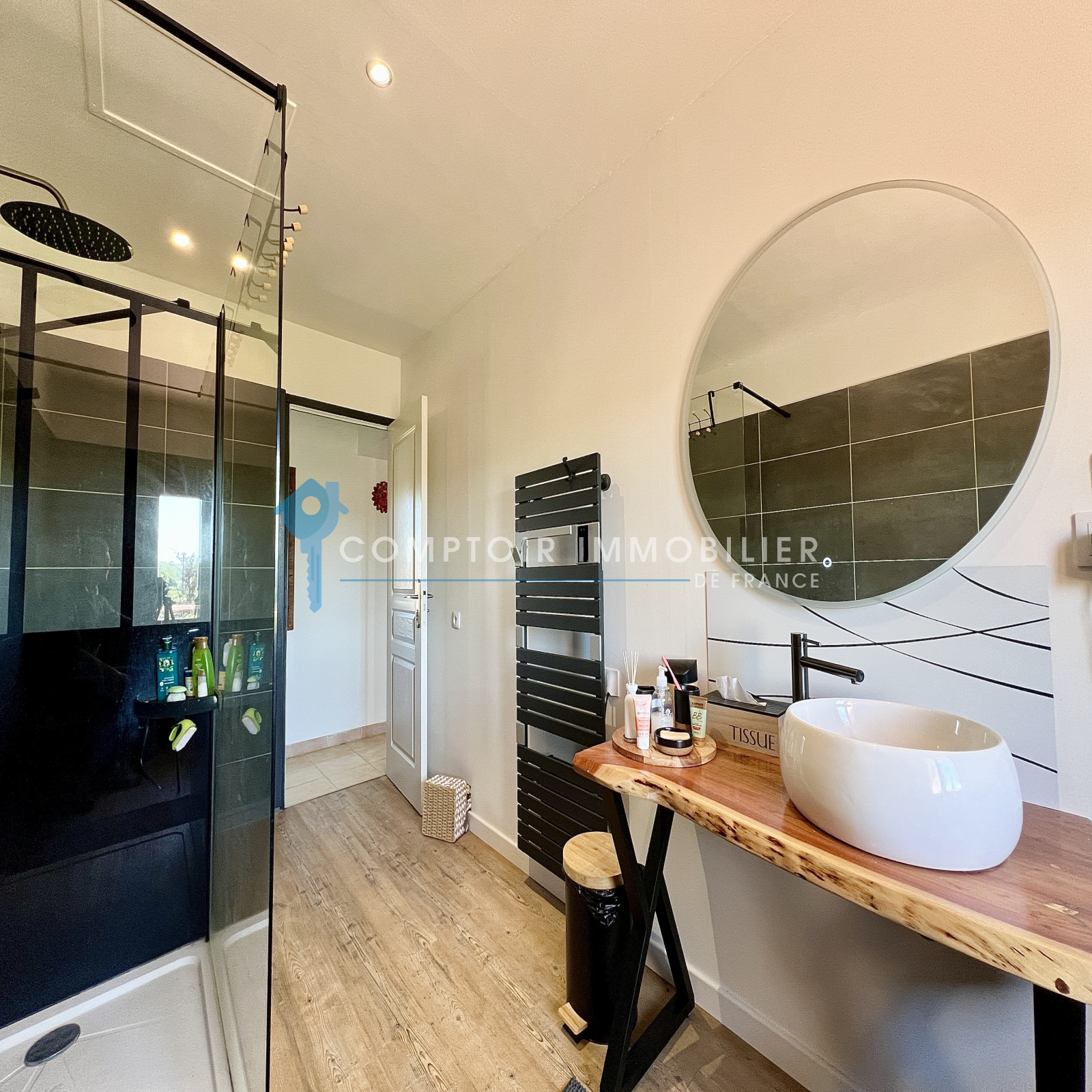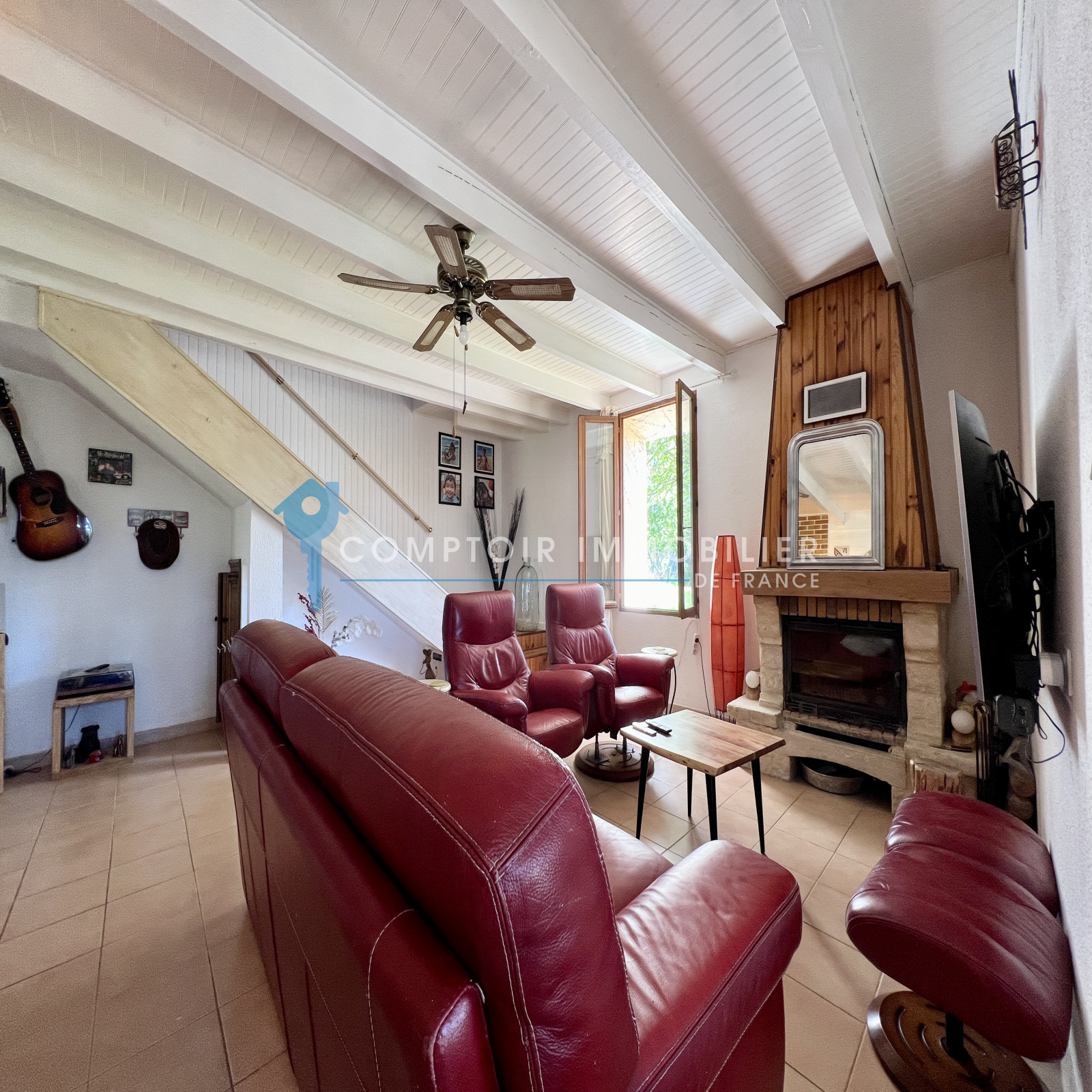 L'entrée se fait par une agréable véranda équipée d'une climatisation réversible, salon cosy avec coin bar et insert, cuisine fermée, buanderie, WC et grande chambre avec placards en RDC.