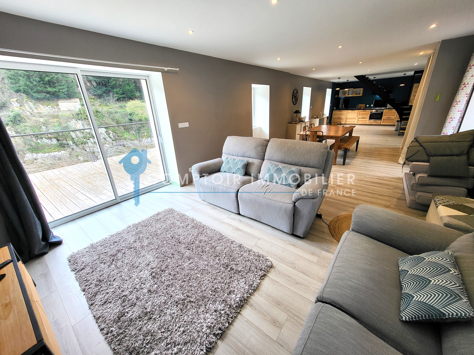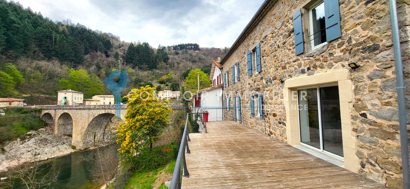 Comptoir Immobilier de France vous propose à la vente, cette superbe maison ardéchoise de type 5, récemment rénovée avec des prestations modernes. D’une surface habitable de 121 m², elle offre un cadre de vie idéal, alliant confort et sérénité. Elle est située sur la commune de Saint-Maurice-en-Chalencon (07190).