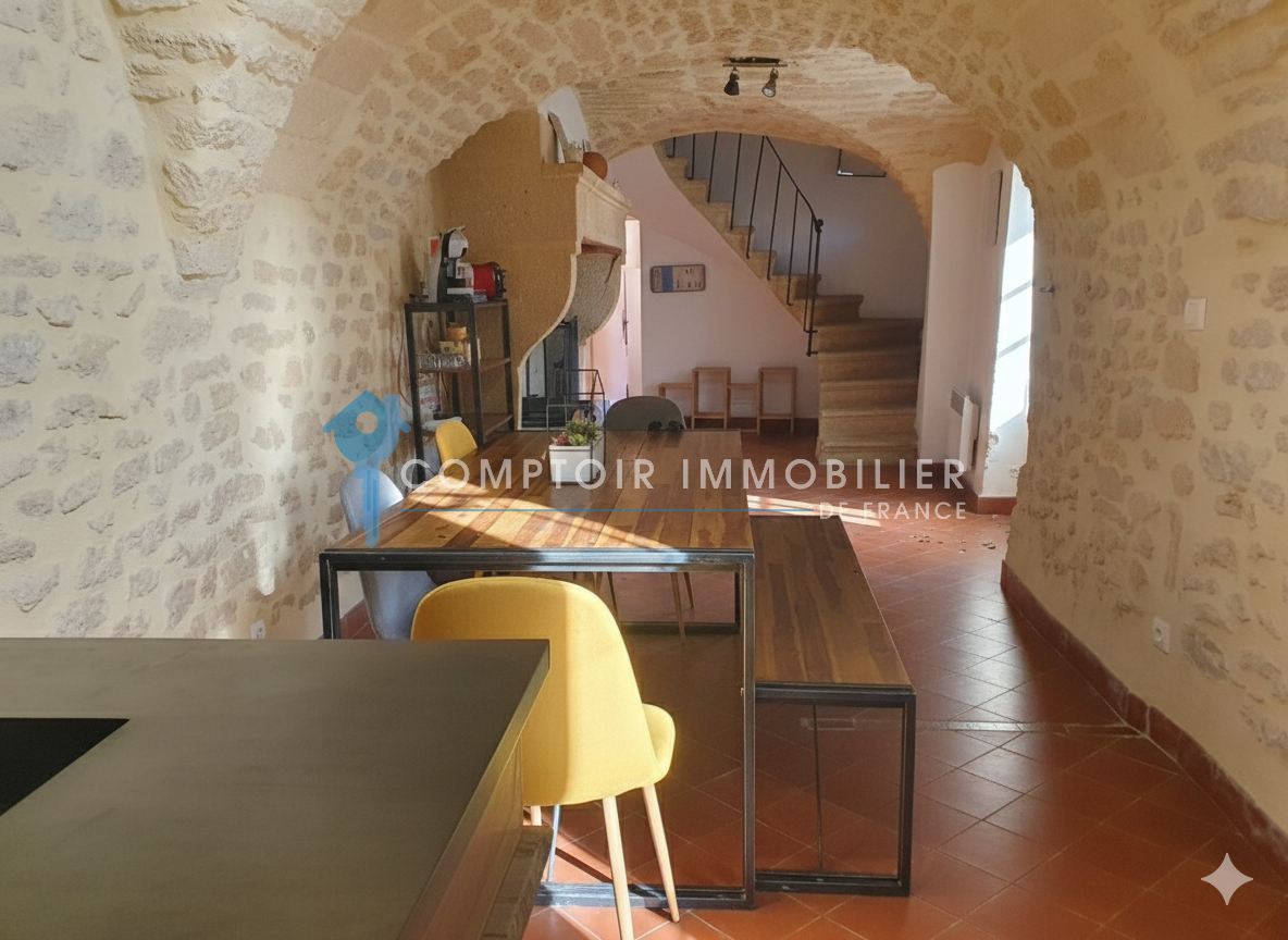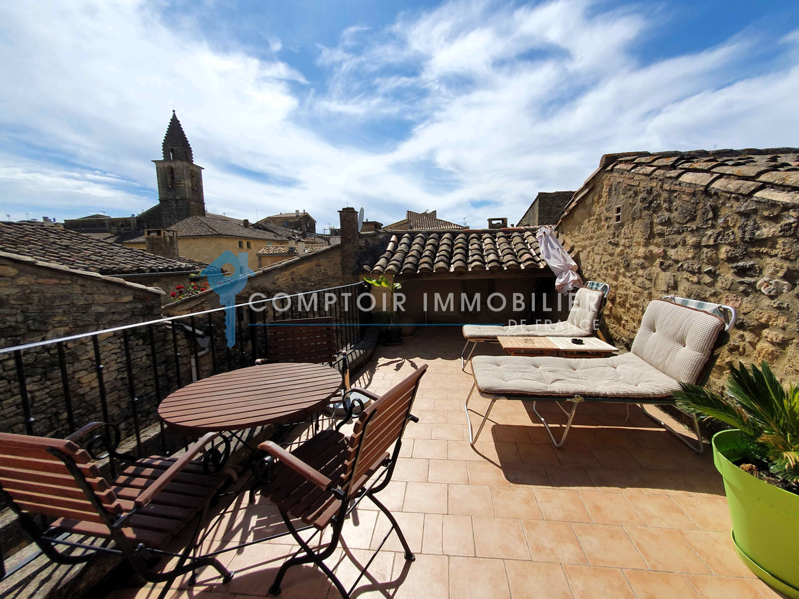 UZES PONT DU GARD : Dans superbe village provençal, découvrez cette charmante maison de village pleine de caractère, répartie sur trois niveaux et offrant cinq pièces. Profitez de deux terrasses, dont une magnifique terrasse tropézienne sans vis-à-vis, idéale pour admirer une vue imprenable sur les toits du village.