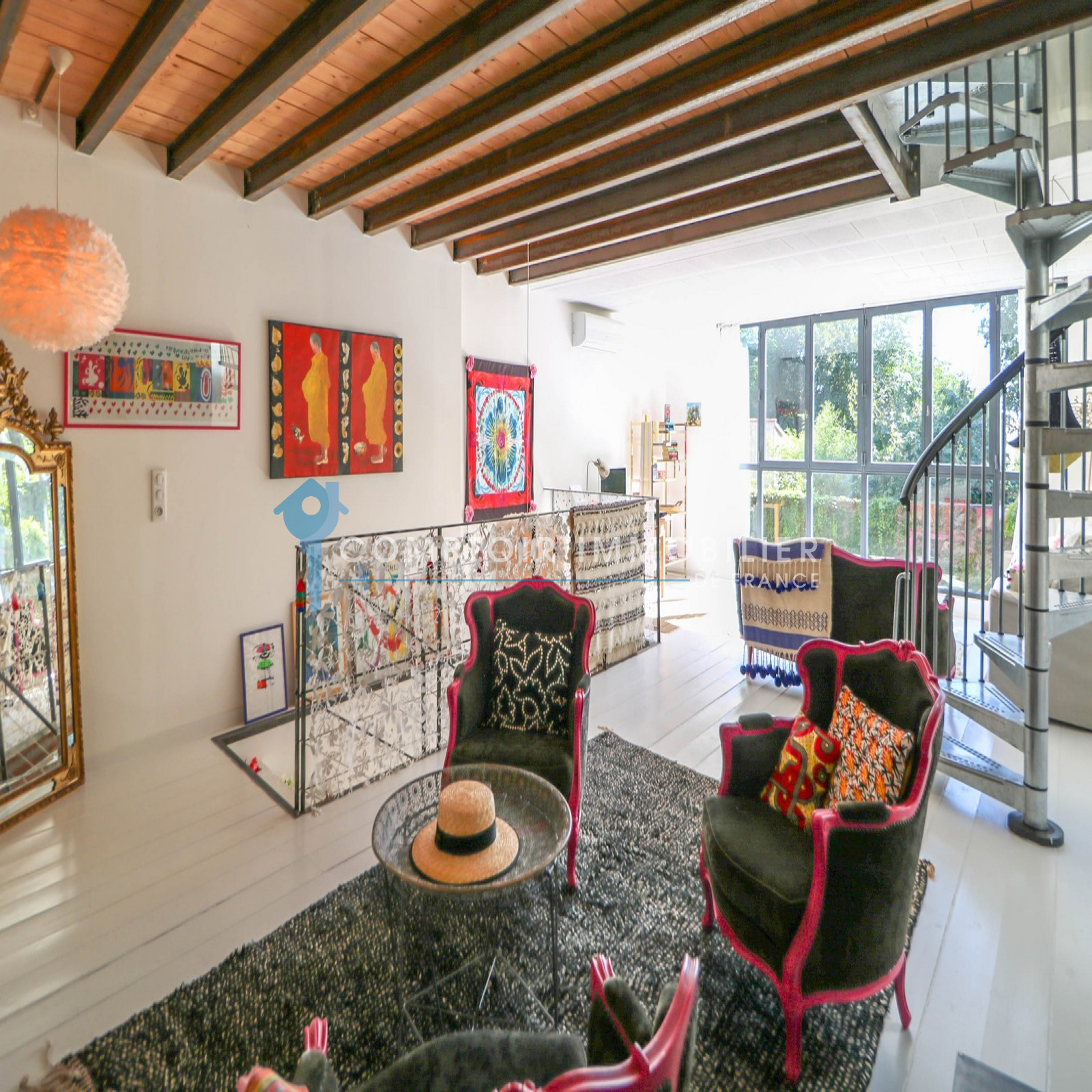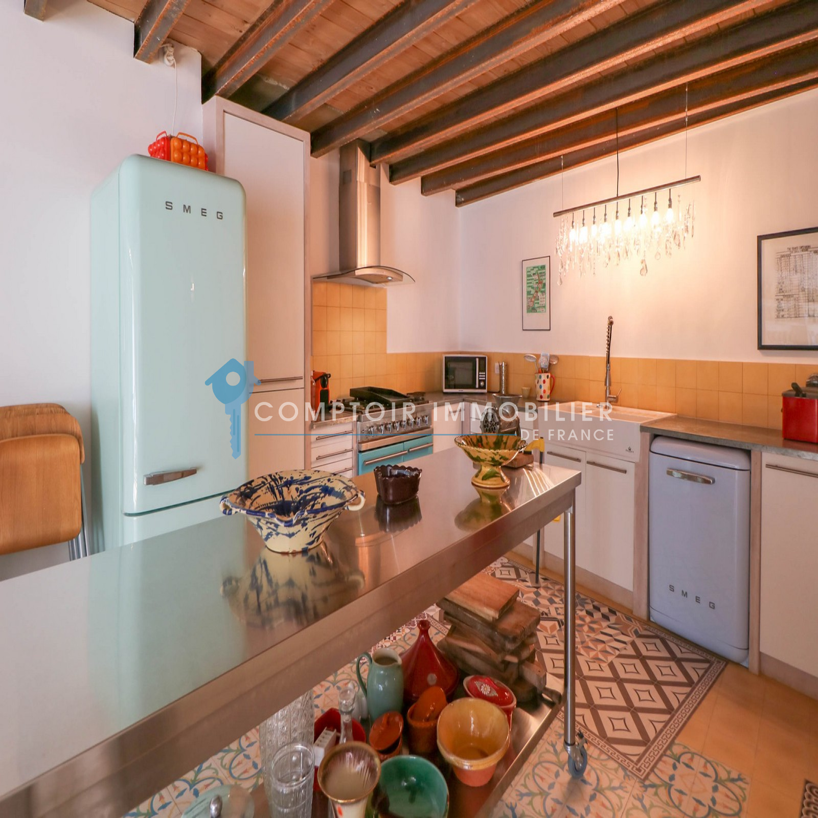 UZES CENTRE PIETON : Située dans une rue discrète et paisible à seulement 150 mètres de la célèbre Place aux Herbes, cette superbe maison de ville entièrement rénovée allie le charme de l’ancien au confort moderne dans un esprit loft. Les matériaux utilisés sont de grande qualité et l’exposition plein sud assure une luminosité exceptionnelle. La cheminée Louis XIV en pierre d’époque, restaurée par un artisan, est en parfait état de fonctionnement et confère une atmosphère chaleureuse à la pièce de vie. La maison dispose également d’un système de chauffage par pompe à chaleur air/air avec climatisation réversible pour un confort optimal toute l’année. Avec sa terrasse sur les toits et sa cuisine d’été, cette propriété se prête aussi bien à une résidence principale qu’à une maison de vacances ou un investissement locatif de qualité en plein cœur d’Uzès.