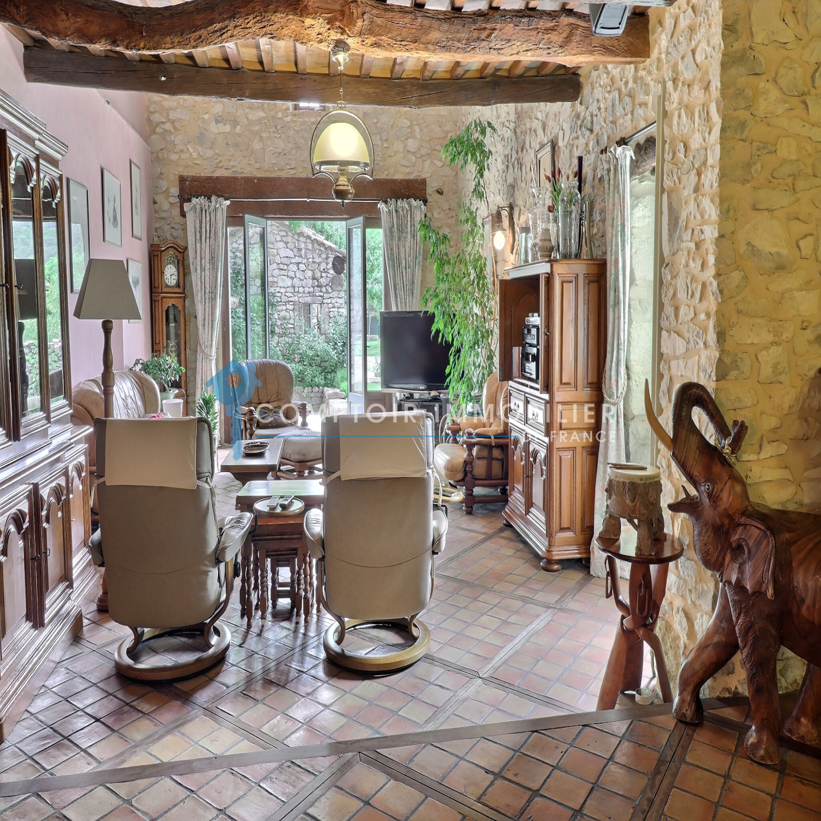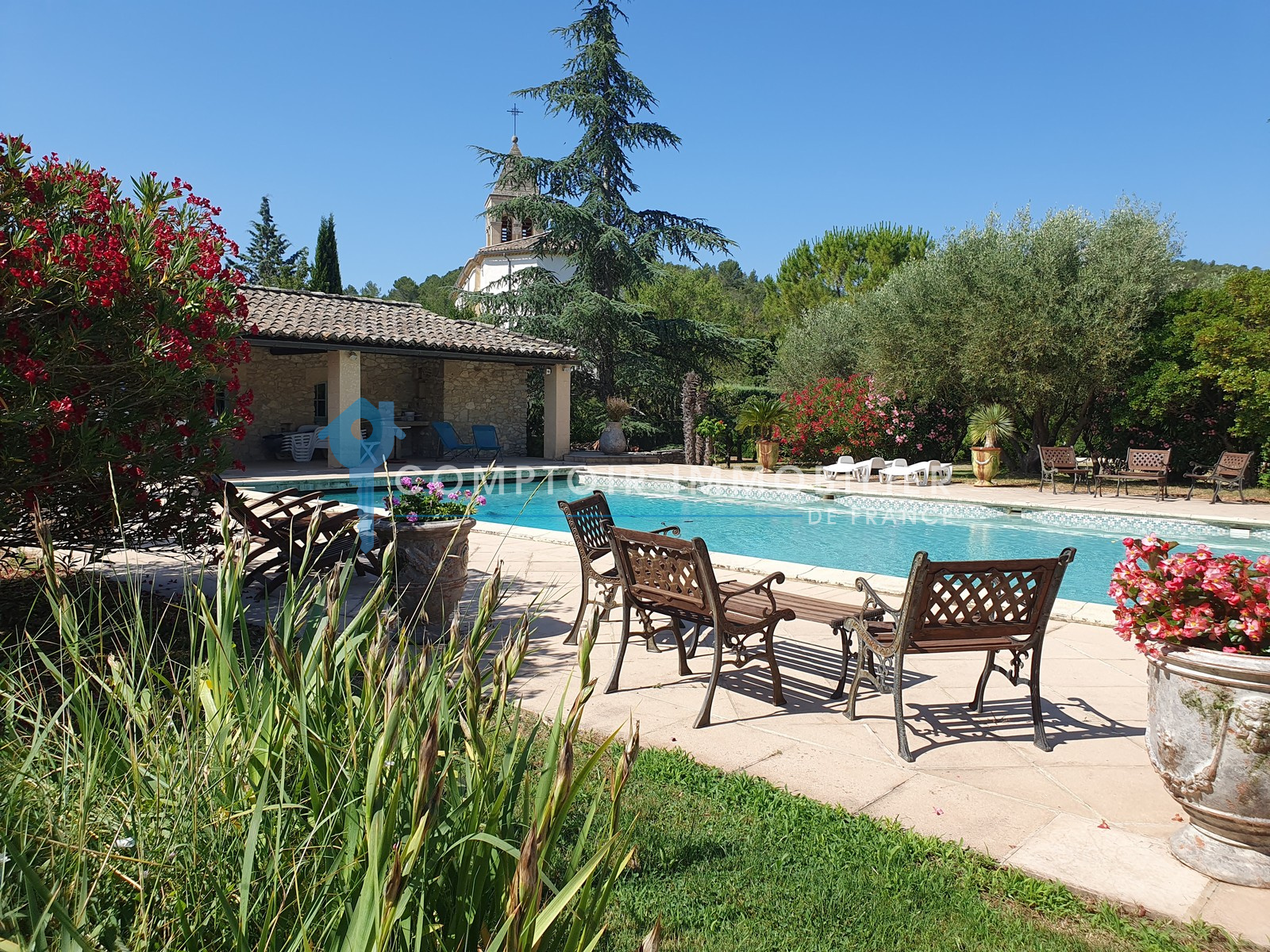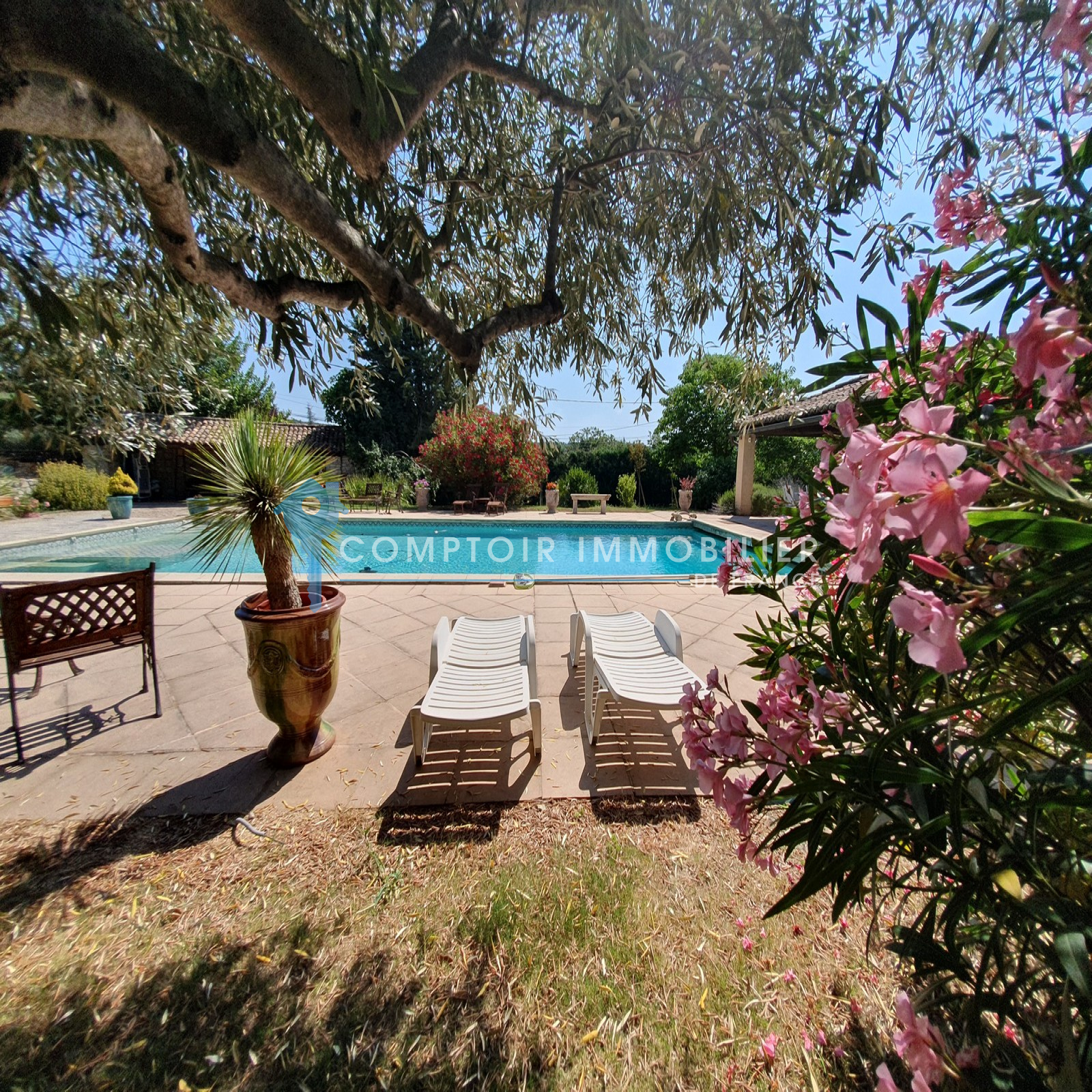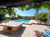 PROCHE UZES : Prestigieux mas de caractère récemment rénové sur grand terrain d'environ 5000 m2 arboré et paysagé avec forage et piscine. 5 chambres dont 2 suites et 1 en rez de chaussée. Très grande pièce à vivre avec cheminée, cuisine équipée séparée. Grand garage. Piscine 15*7 avec pool house. Un charme indéniable sur près de 300 m2 habitables avec de grands volumes. Possibilité achat terrain attenant constructible en sus.