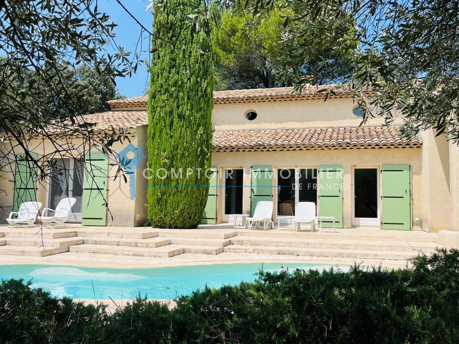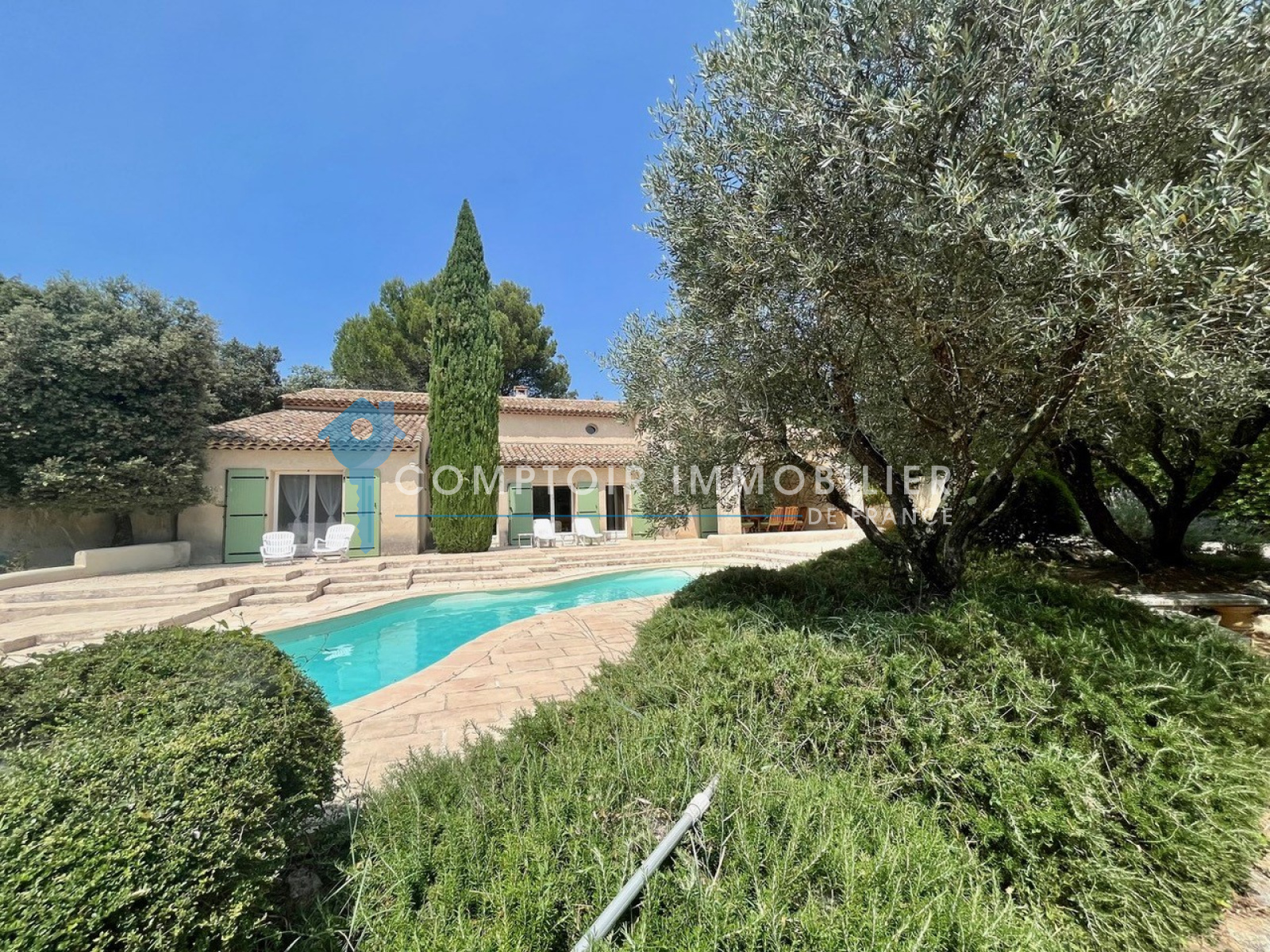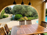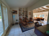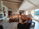 Village en périphérie Uzès : Spacieuse villa sur 2 niveaux avec beau terrain arboré avec piscine. 4 chambres avec salle de bains ou salle d'eau et dressing (dont 2 en rez de chaussée). Vaste et lumineux séjour exposé sud, cuisine équipée indépendante, 5 wc. 2 abris voiture. Chauffage par pompe à chaleur air/eau avec sol rafraîchissant. De très belles prestations dans un cadre arboré très agréable. Premiers commerces de proximité proches.