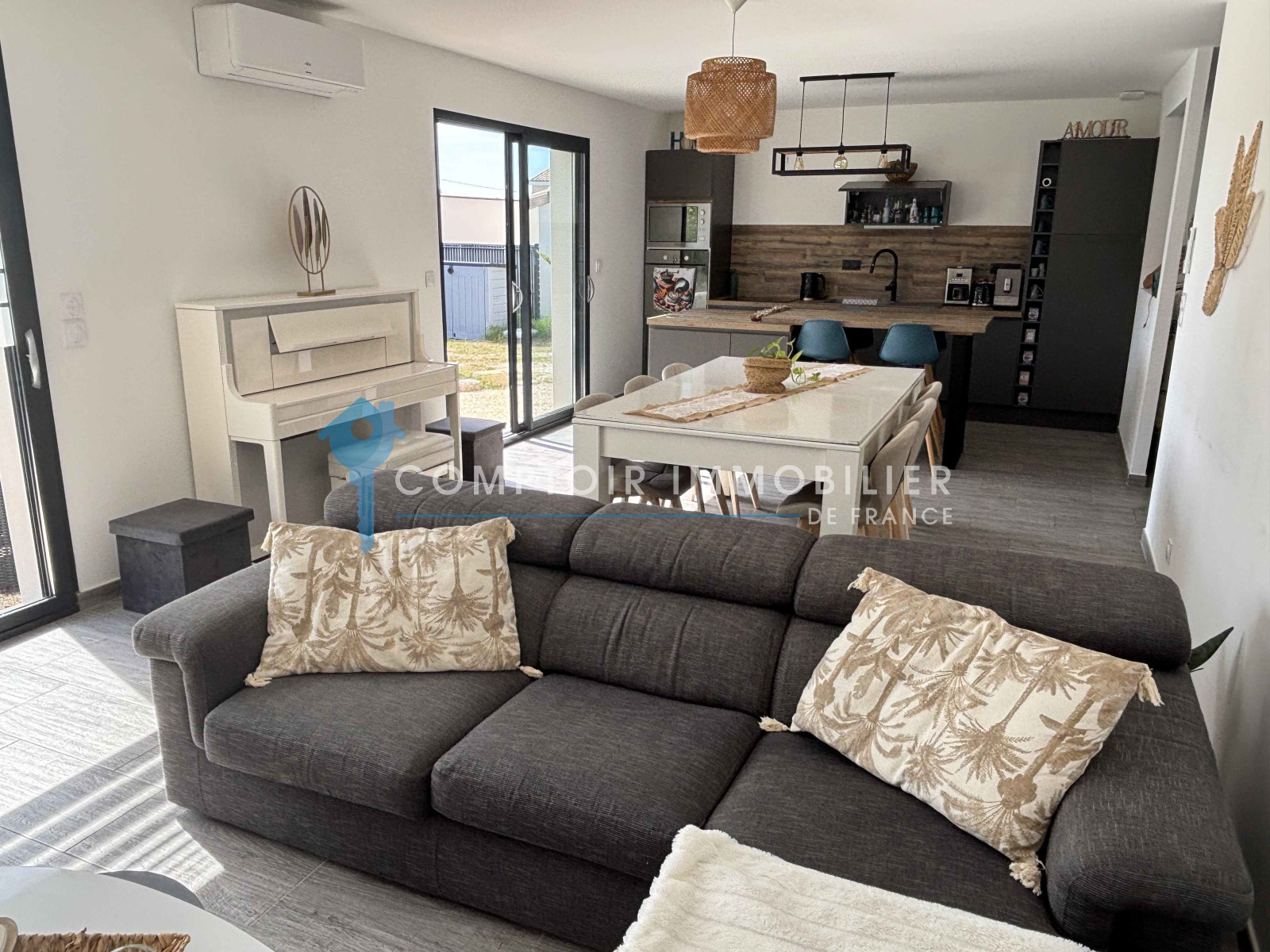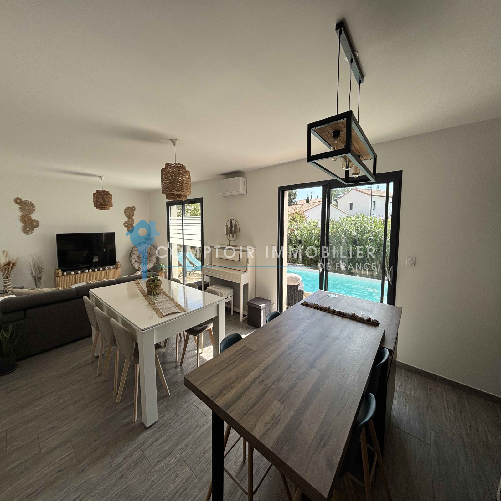 Villa de plain-pied, idéalement située à quelques minutes à pied du centre historique d'Uzès. Nichée sur un terrain de 400 m², cette propriété offre un jardin avec piscine, parfait pour profiter des belles journées ensoleillées. La villa se compose d'une spacieuse pièce à vivre de plus de 40 m², baignée de lumière naturelle, avec une cuisine entièrement équipée, idéale pour les moments conviviaux en famille ou entre amis. Elle dispose de 3 chambres, d'une salle de bains moderne et de toilettes indépendantes. Profitez du confort d'une maison récente, équipée d'une climatisation réversible par pompe à chaleur, garantissant une température agréable tout au long de l'année. Cette villa est le parfait équilibre entre modernité et un cadre de vie paisible à proximité de toutes les commodités. Une opportunité de vivre dans un environnement privilégié, alliant confort et proximité du centre d'Uzès.