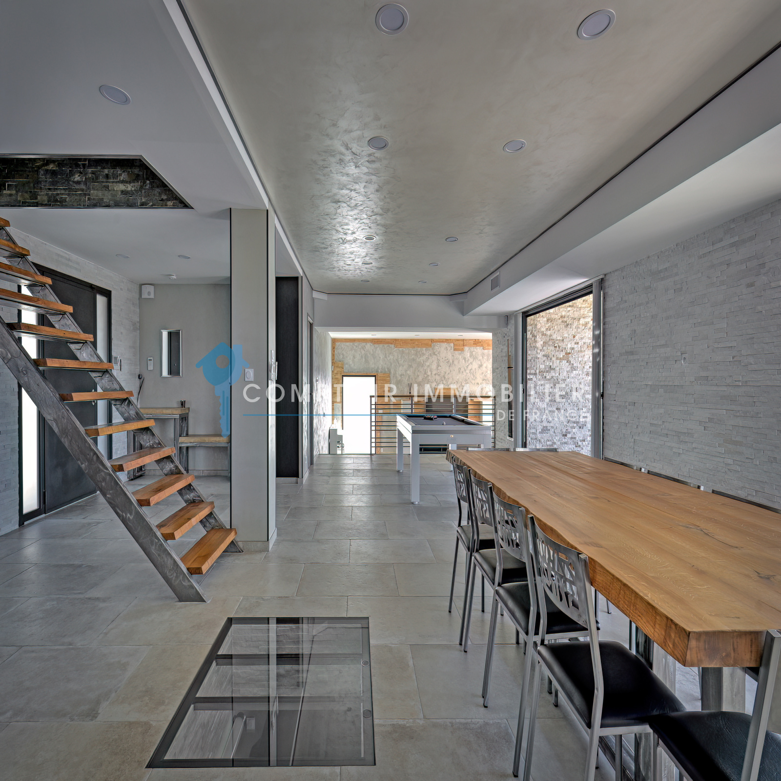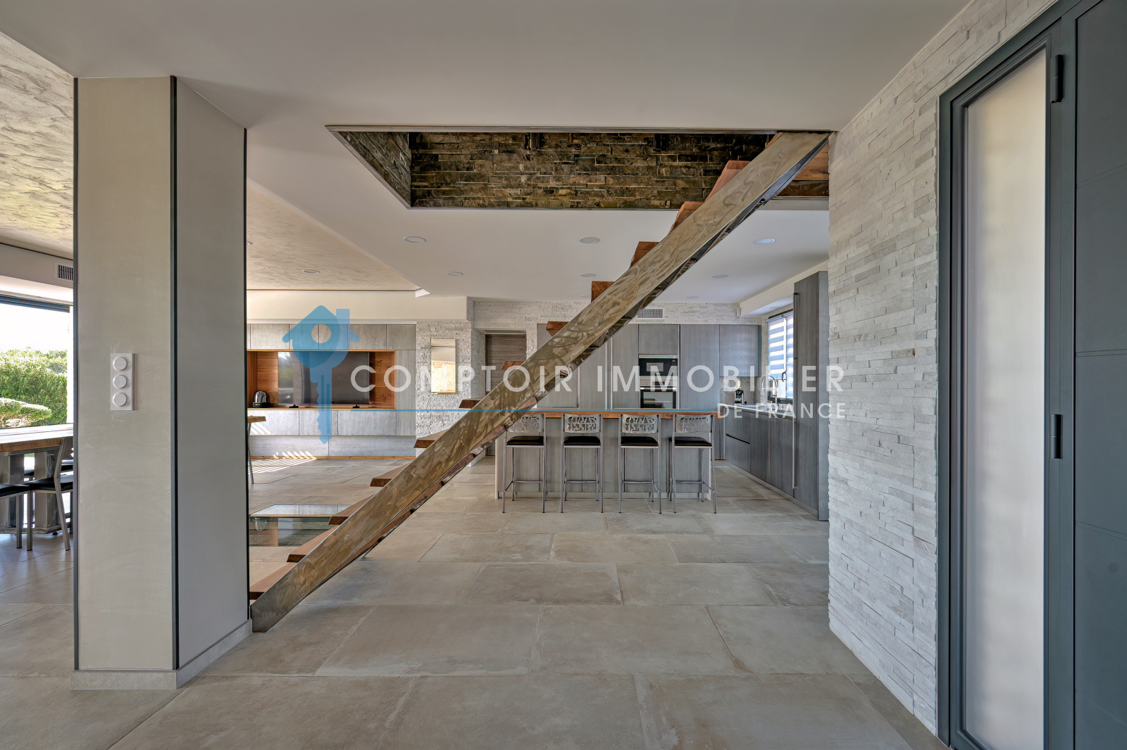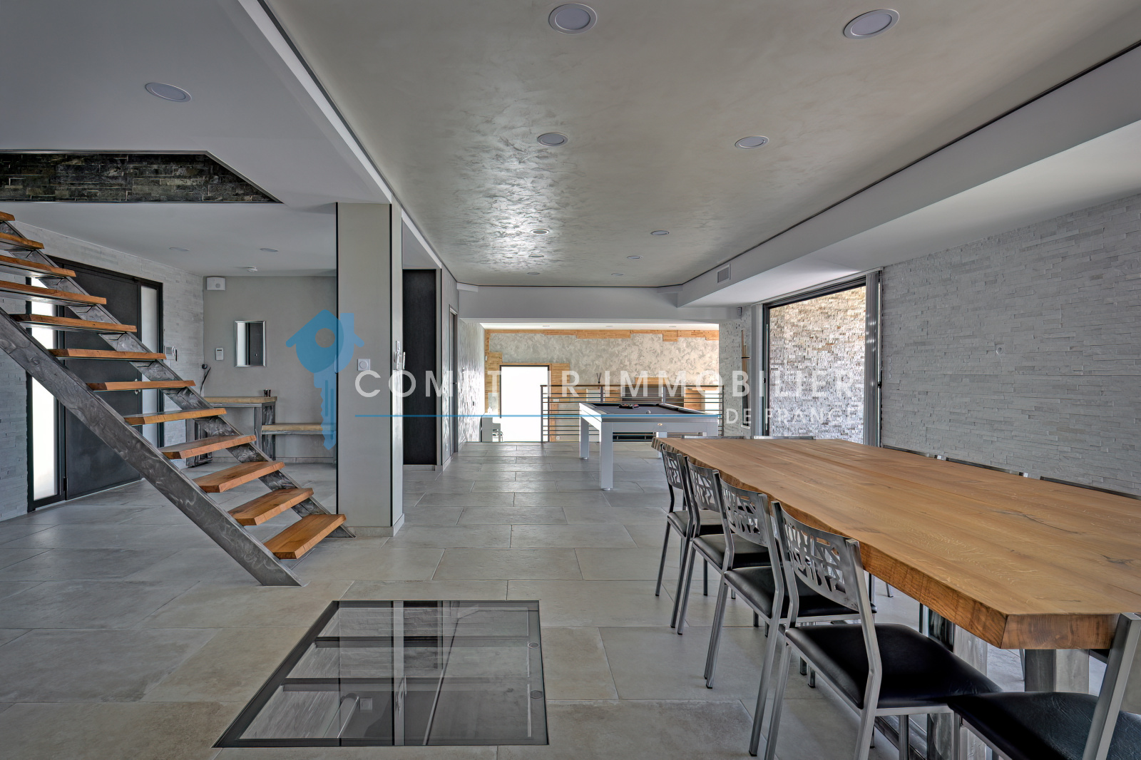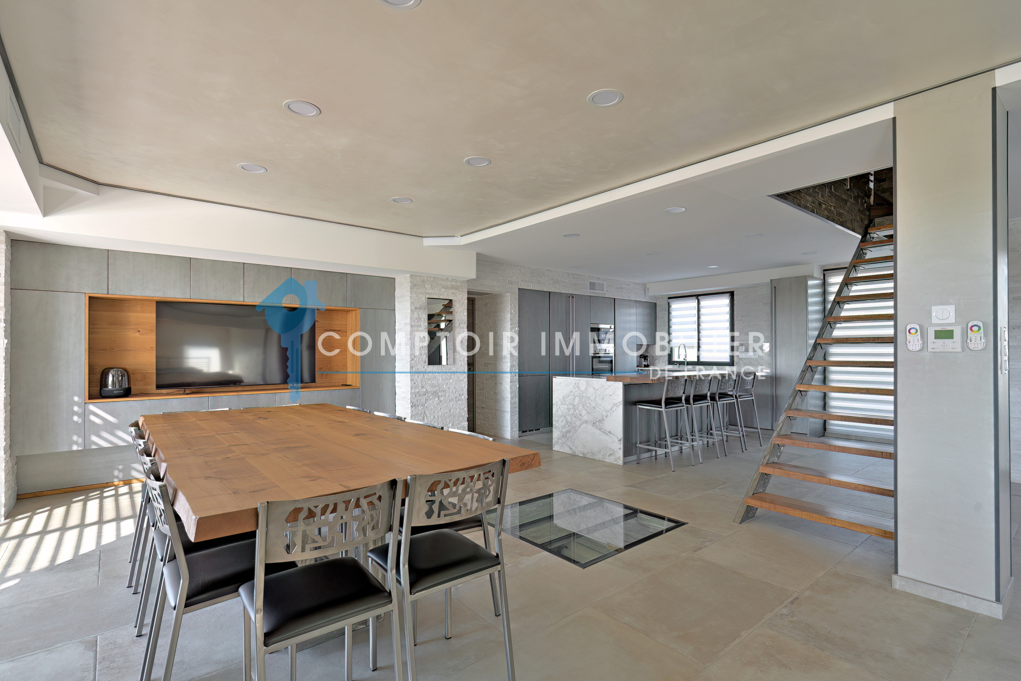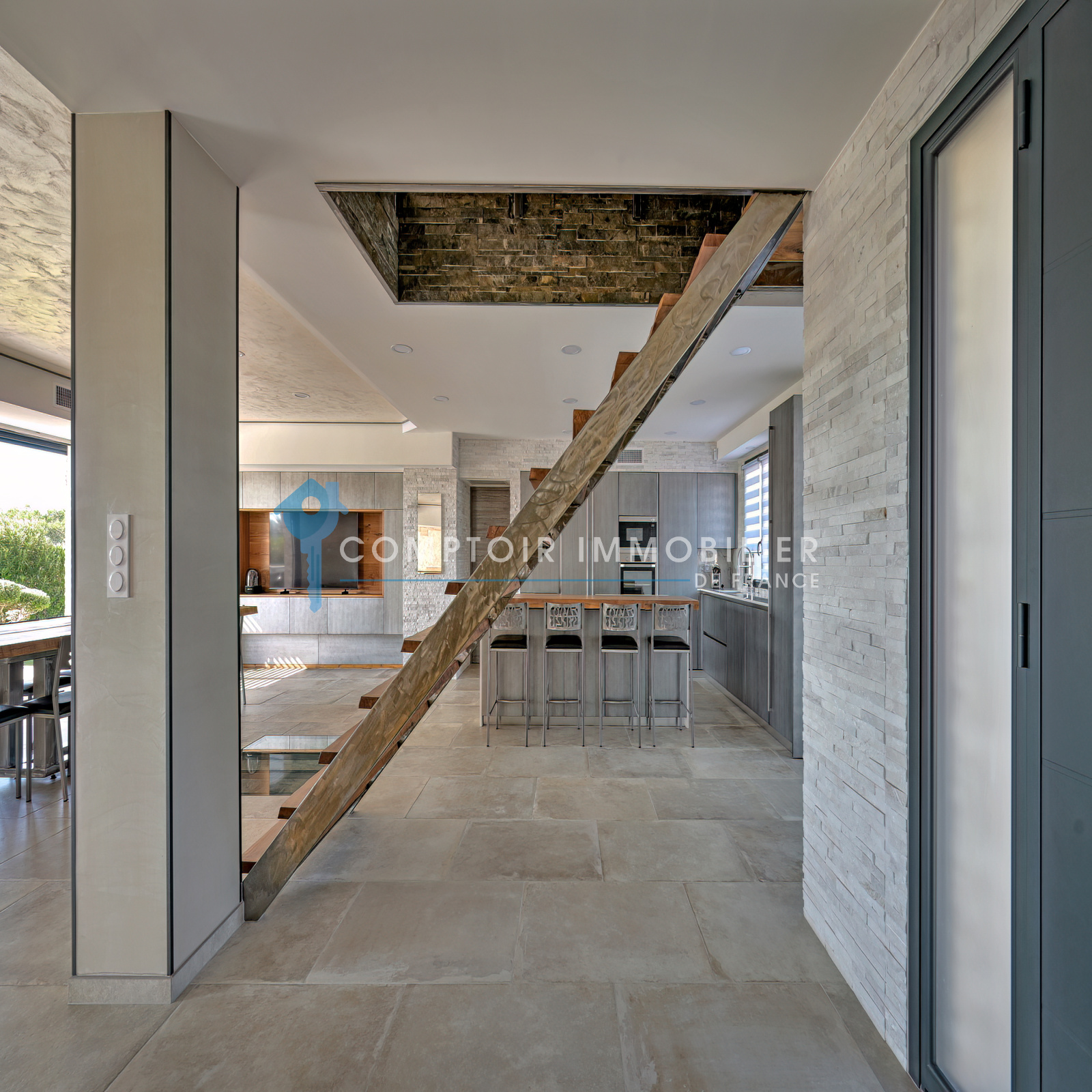Dès l'entrée découvrez une magnifique pièce de vie baignée de lumière ouverte sur l'exterieur et offrant une vue exceptionnelle qui sublime chaque instant , véritable fil conducteur de la maison .