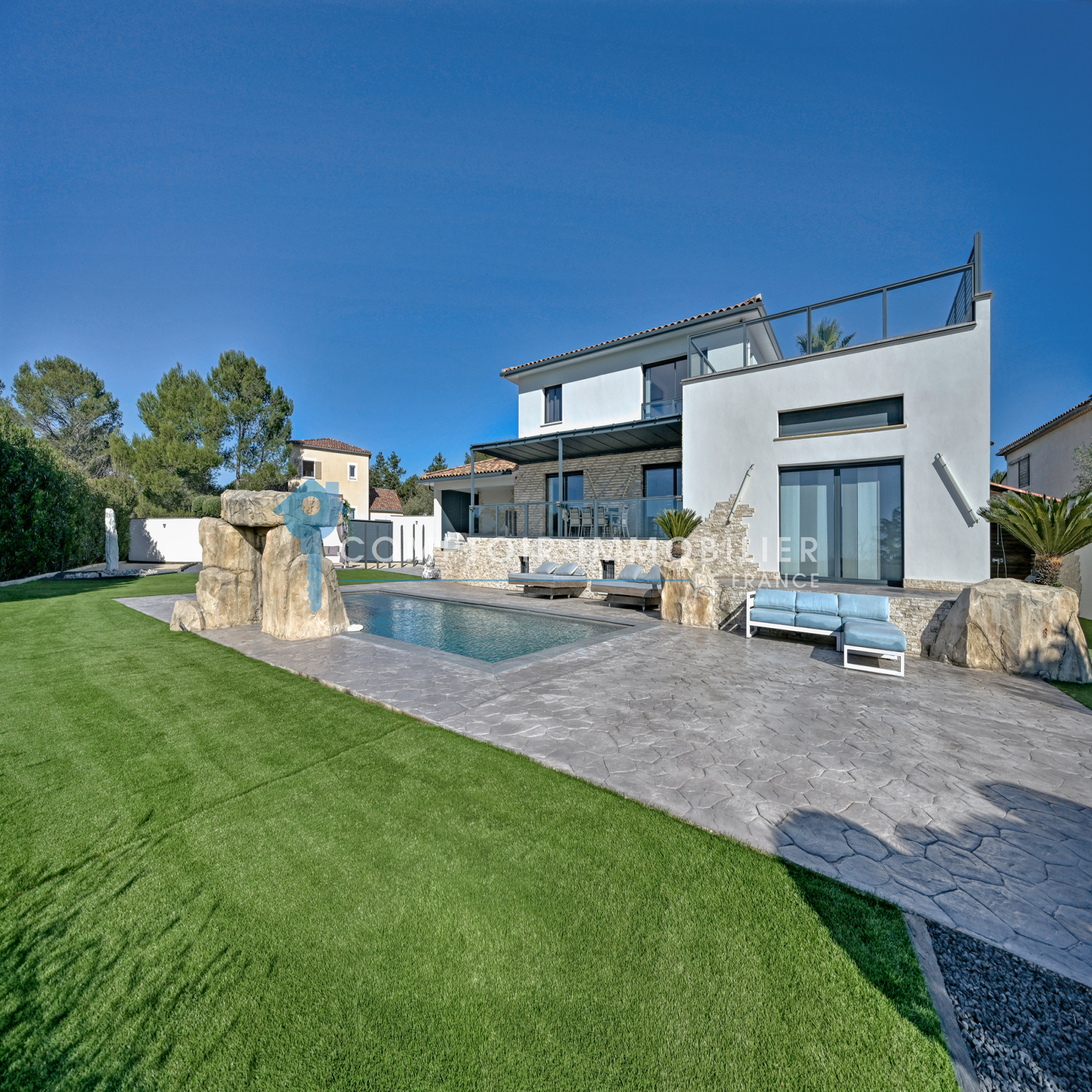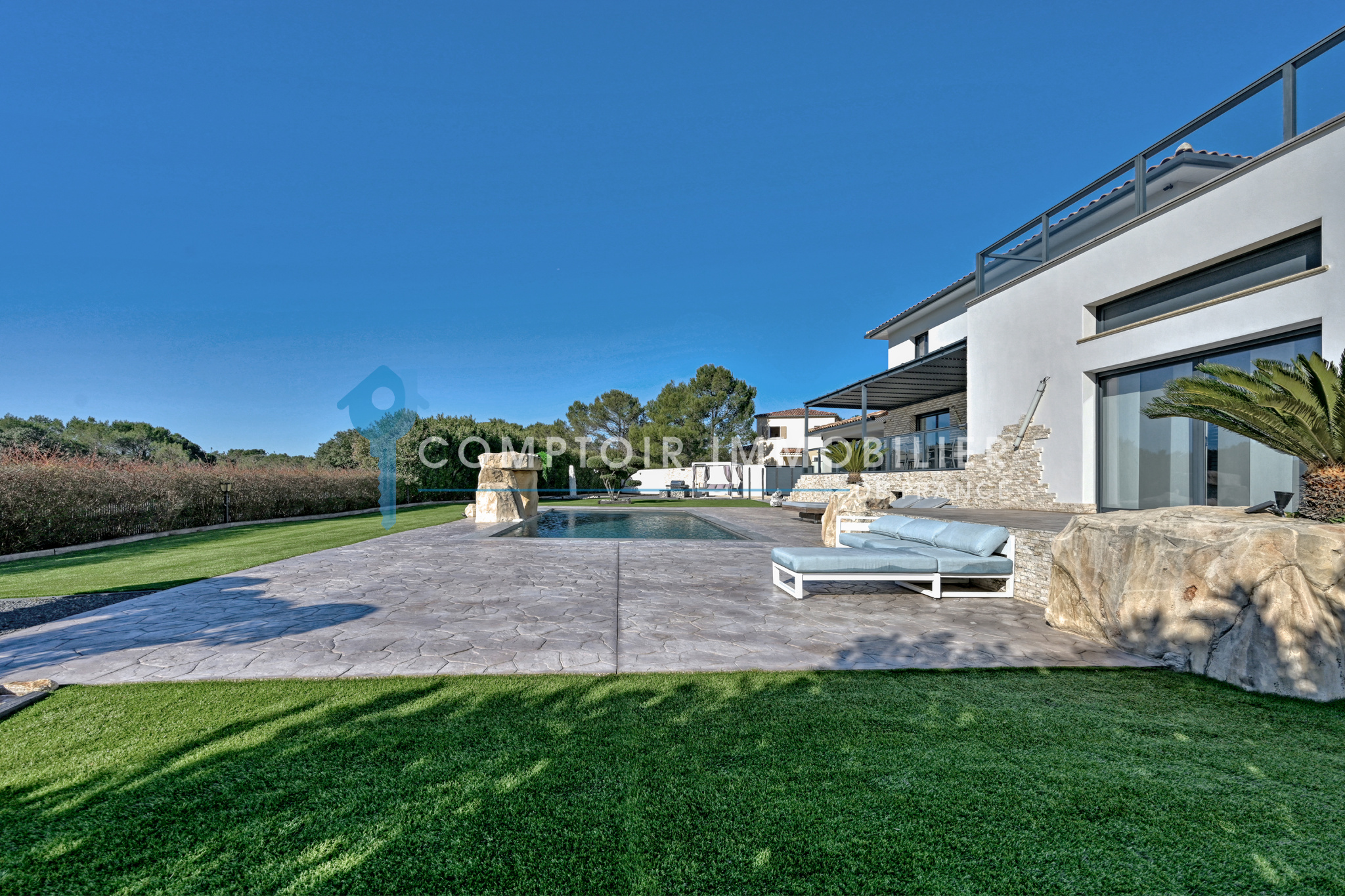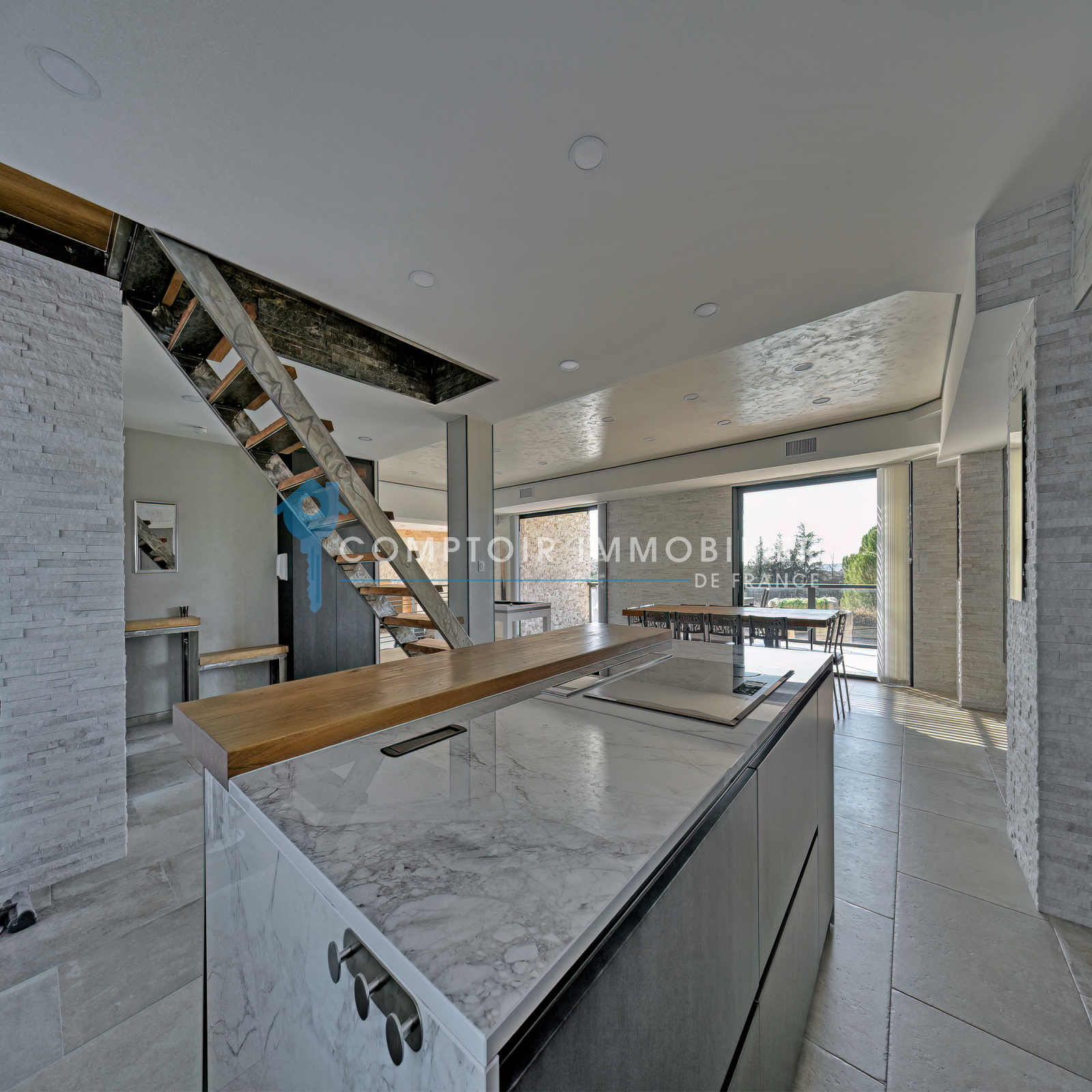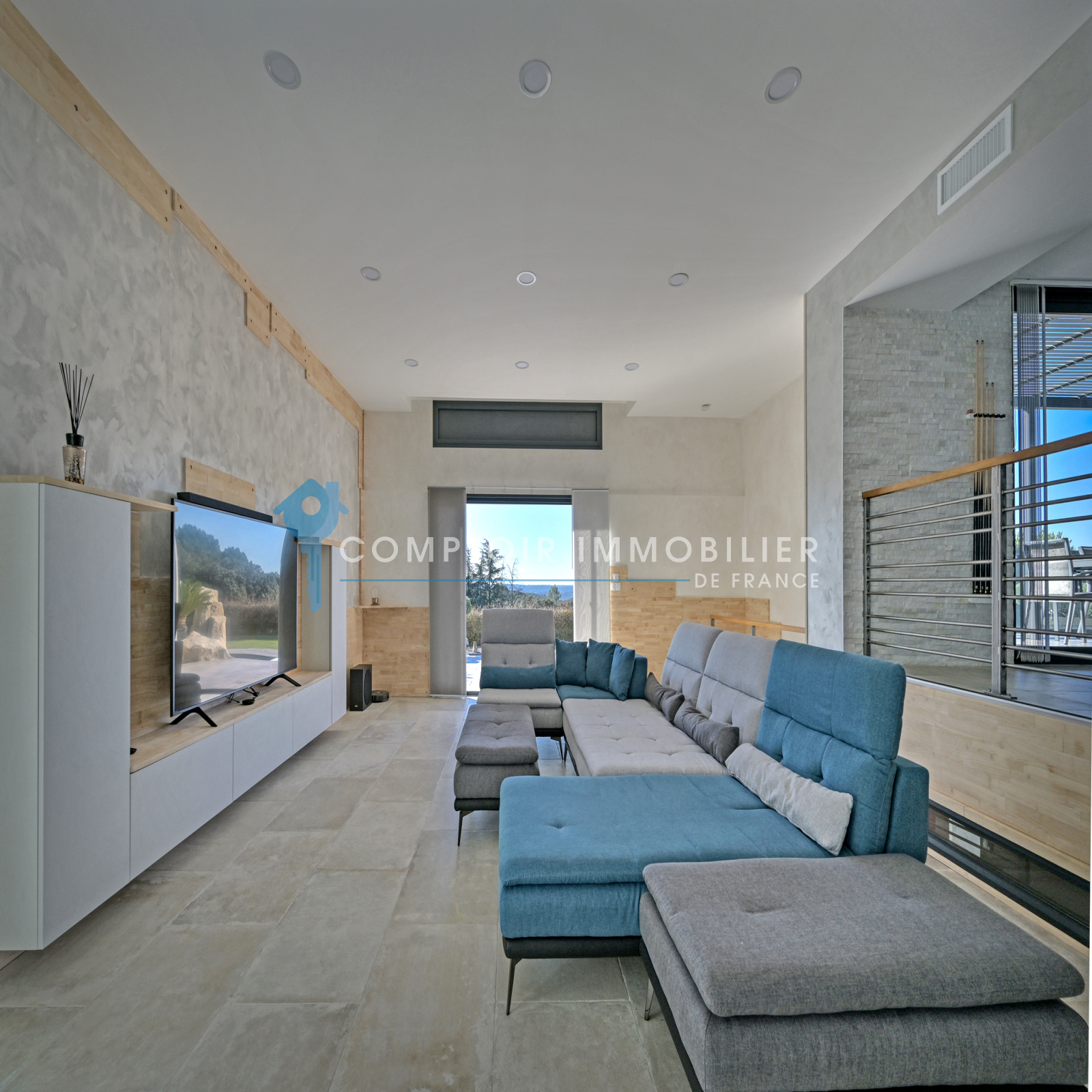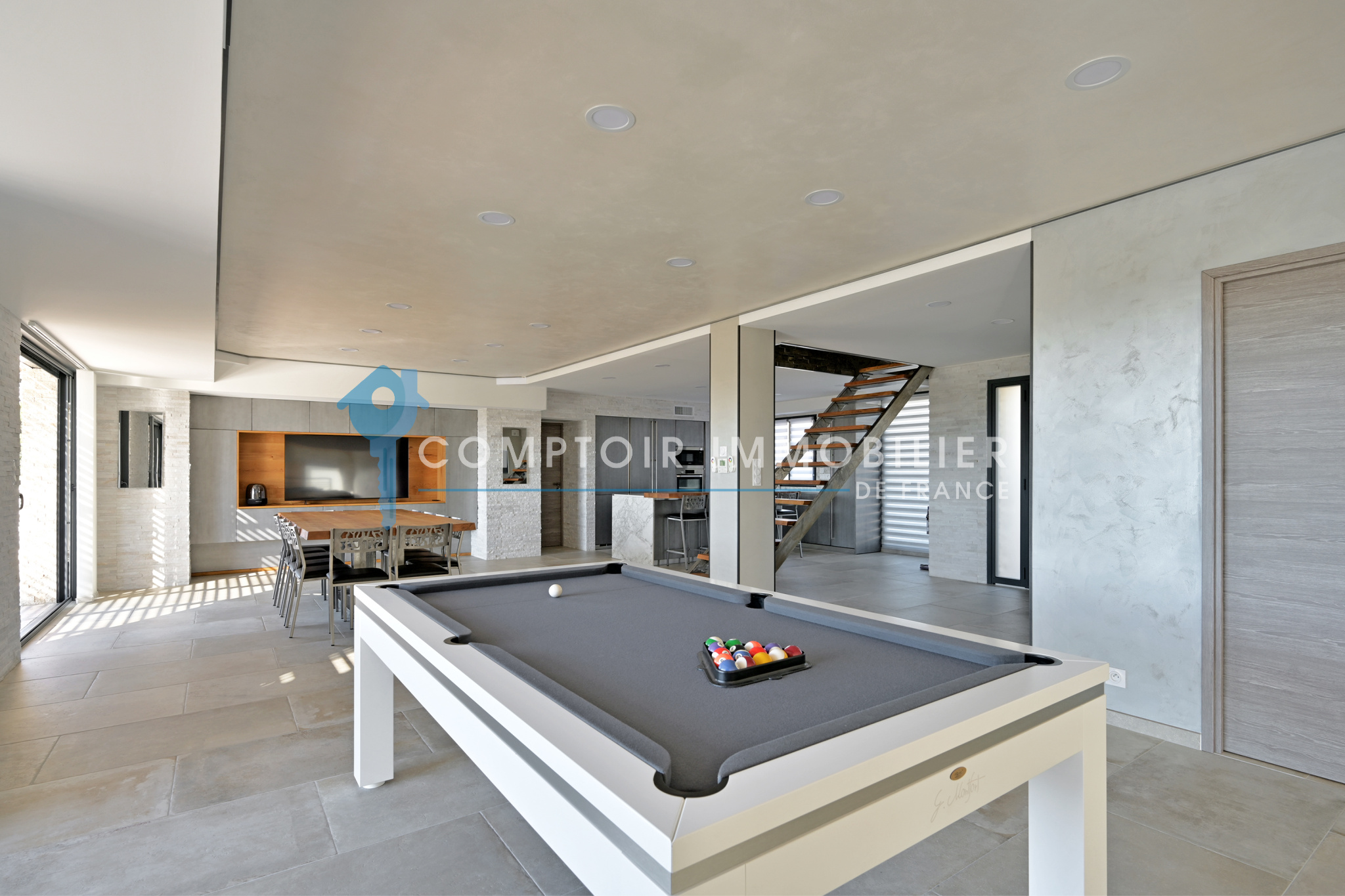 Dès l'entrée découvrez une magnifique pièce de vie baignée de lumière ouverte sur l'exterieur et offrant une vue exceptionnelle qui sublime chaque instant , véritable fil conducteur de la maison .