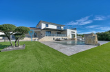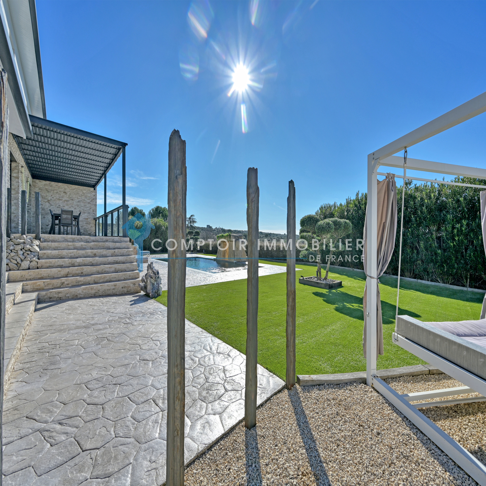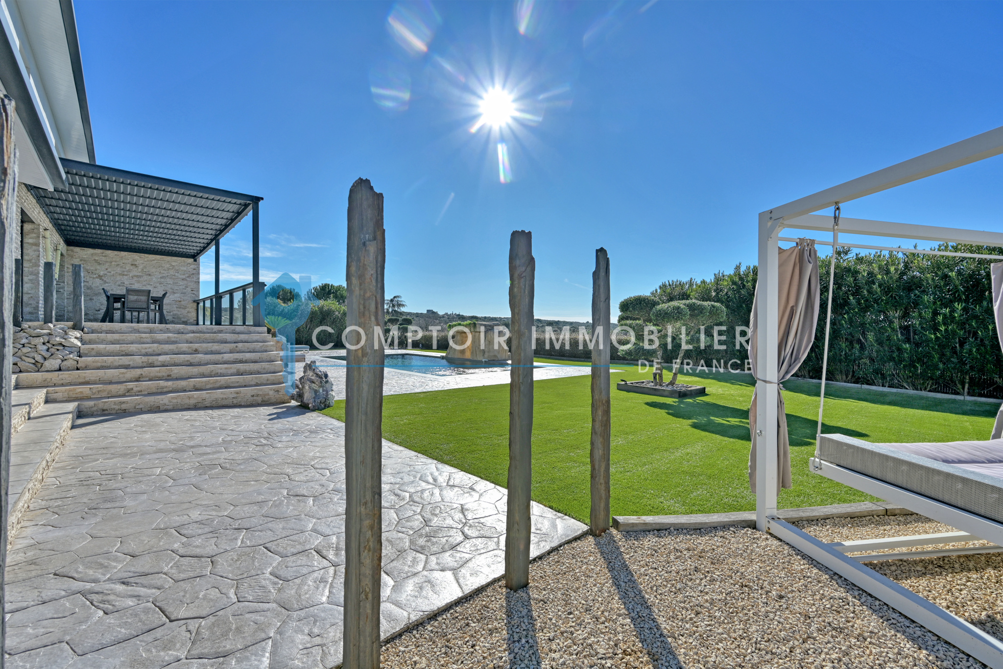 A l'extérieur , plus de 1400 m2 de terrain compose un écrin de verdure parfaitement structuré . La pièce maitresse : une somptueuse piscine miroir à cascade véritable signature esthetique , ou l'eau semble se fondre à l'horizon dans un spectacle permanent de lumière et de sérénité . Les espaces de détente et la vue exceptionnelle viennent parfaire cet environnement rare .