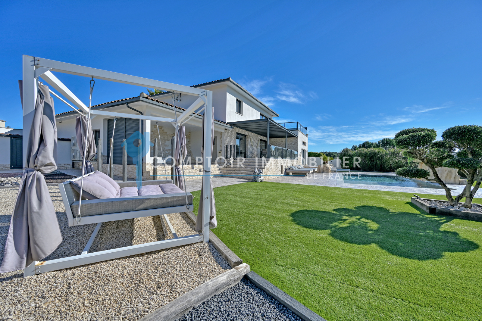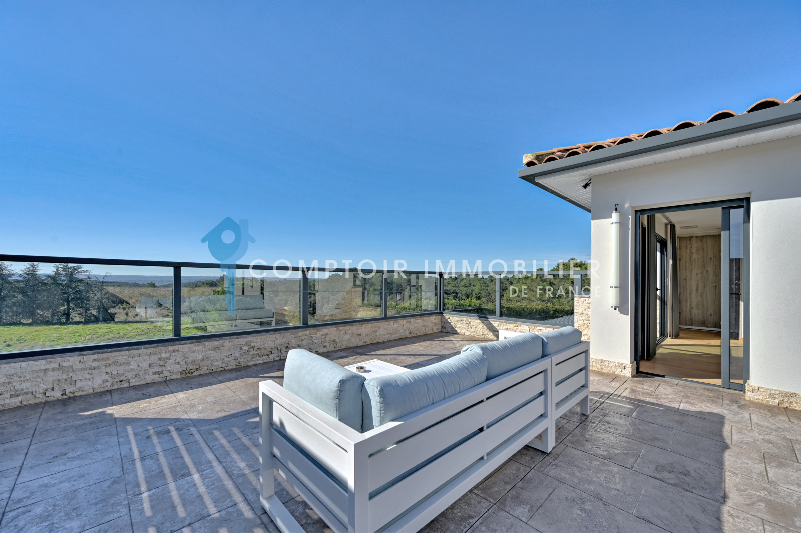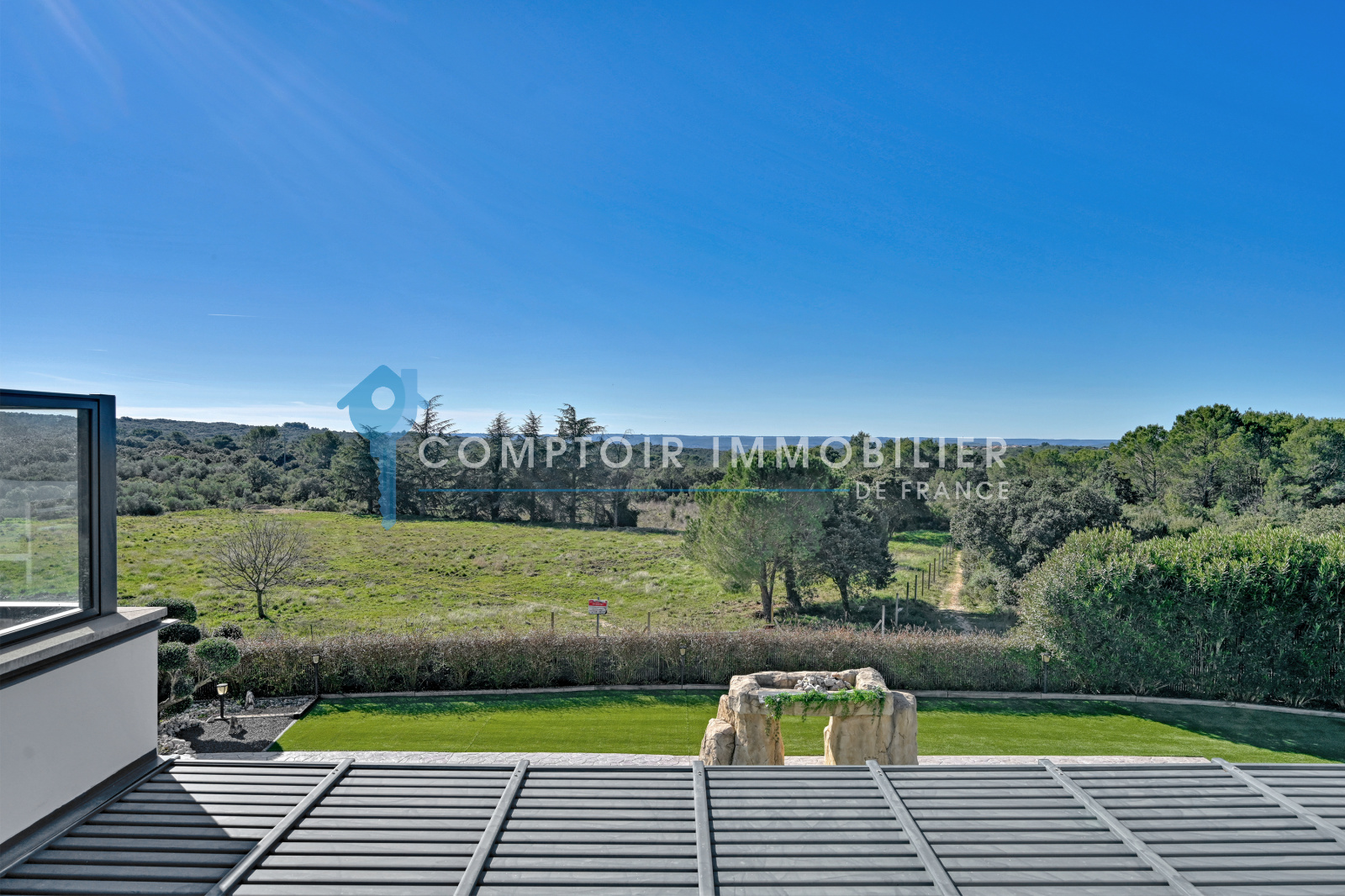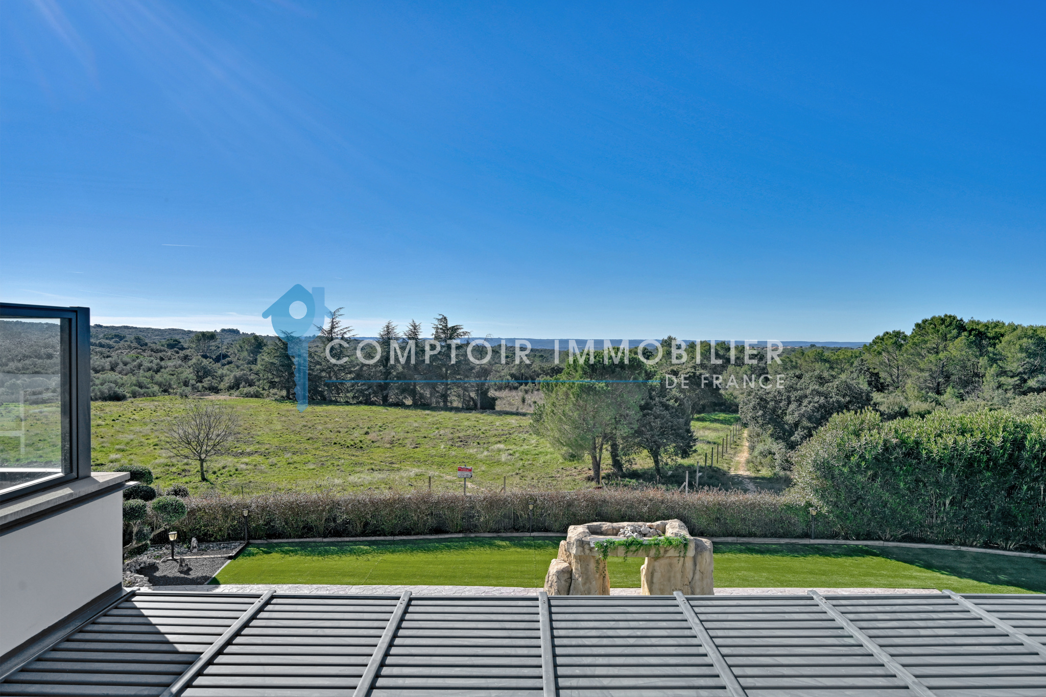 A seulement 6 kilomètres de Uzès , sur les hauteurs de Saint - Siffret , découvrez cette propriété d'exception d'environ 400 m2 dans un environnement privilégié alliant volumes généreux , prestations haut de gamme et cadre de vie unique .