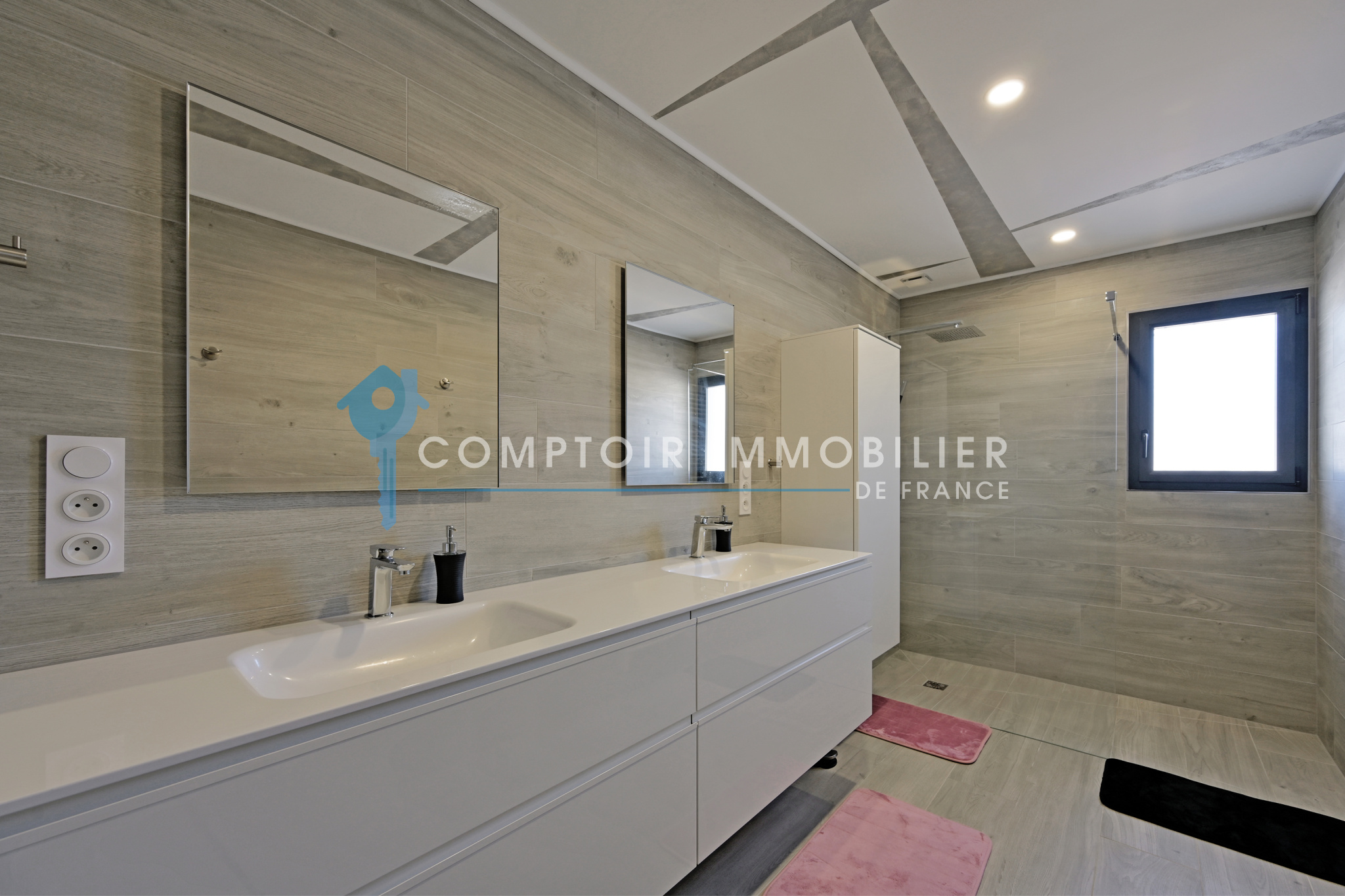 A l'étage, 3 spacieuses chambres dont une suite parentale avec salle d'eau et baignoire ainsi que qu'une deuxième salle d'eau pensées comme de véritables cocons , prolongent le standing de la propriété . La suite s'ouvre sur une vaste terrasse panoramique , offrant un point de vue privilégié sur l'environnement propice à des instants suspendus .