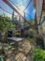 Un jardin cosi avec son mazet pour les repas d'été non attenant à la maison mais très proche.
