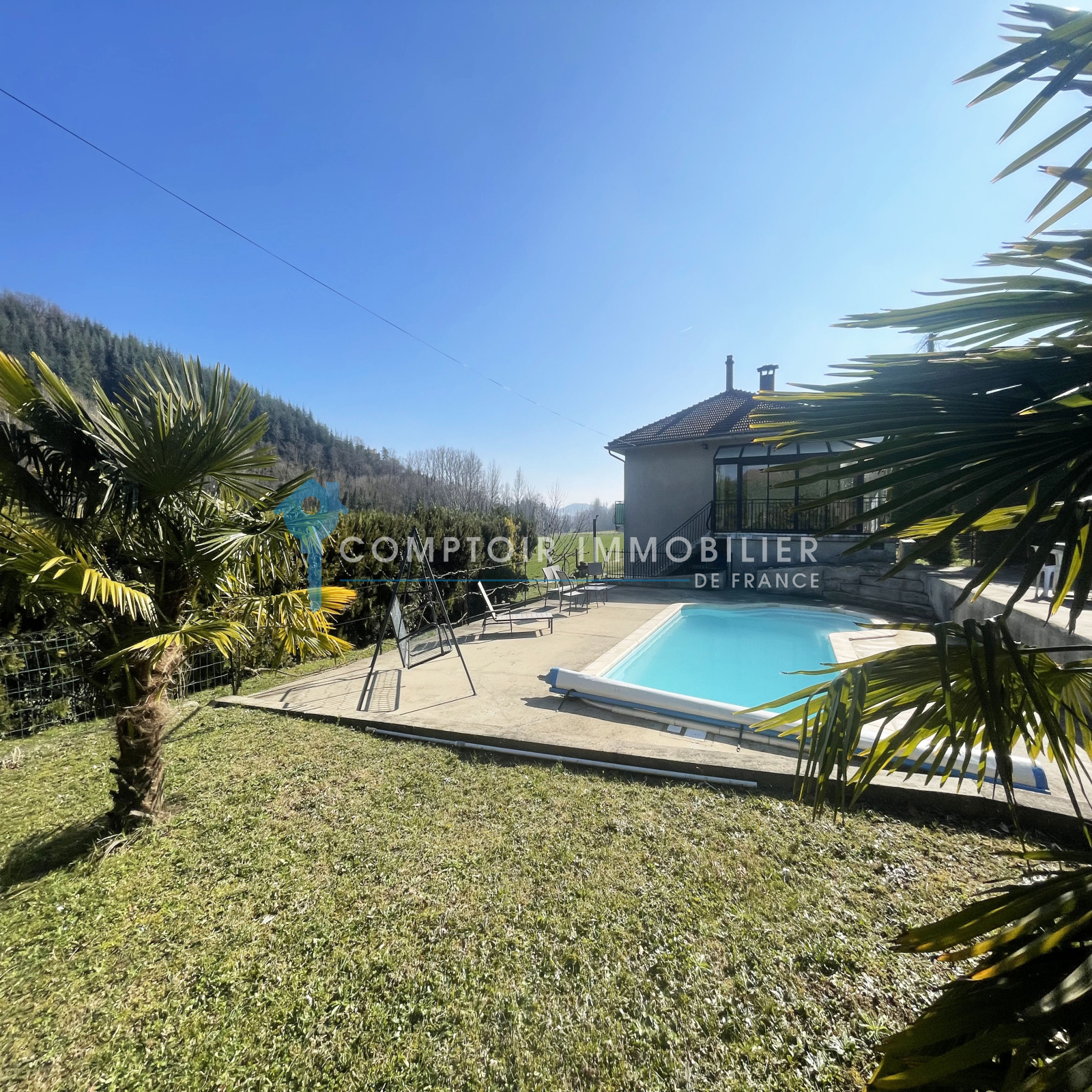 De la pièce de vie, nous accèdons au balcon de 8m2 avec vue sur la forêt et le Vercors, et de la cuisine à une véranda de 15m2 avec vue sur la piscine.