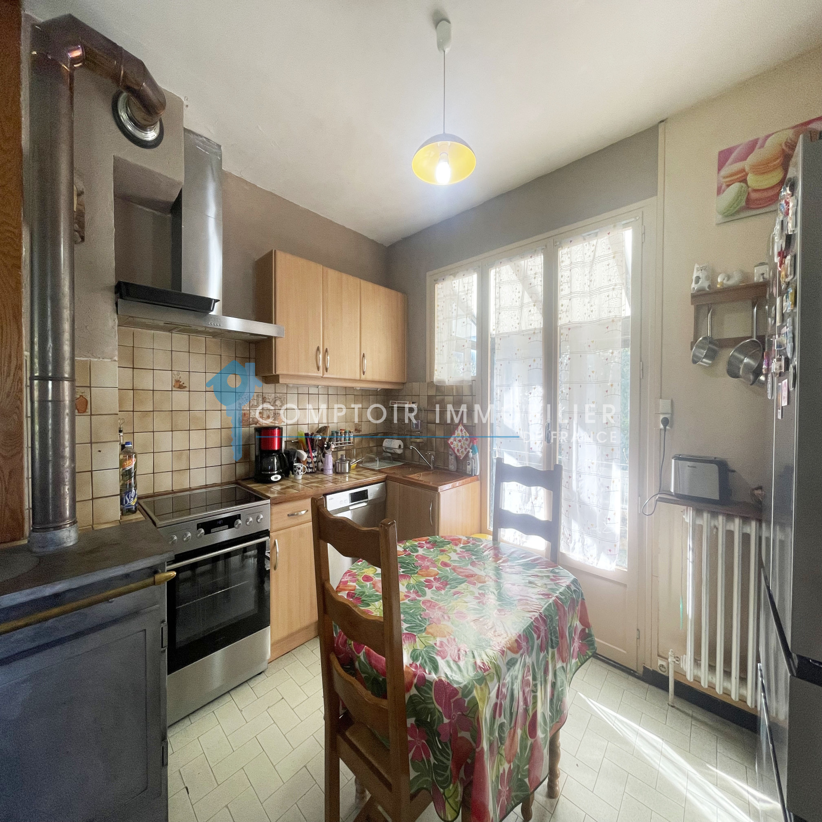 À l'étage, une belle pièce de vie orientée Est et une cuisine semi-séparée pour plus de 47m2, un wc avec lave-main, une salle de bain et 3 chambres.