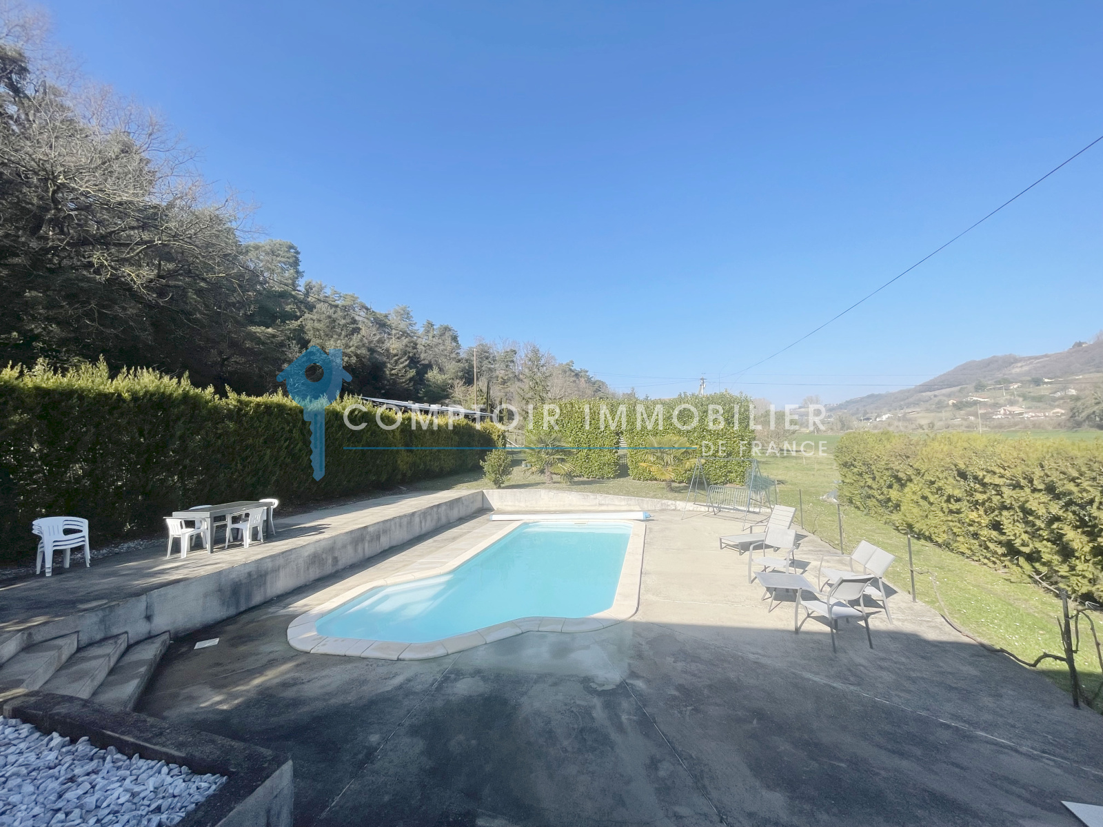 Concernant l'extérieur d'ailleurs, une piscine chauffée de 8,6x4,4m vous attend, avec autour plus de 100m2 de terrasse. Aussi sur la parcelle, des vignes, des cerisiers et autres arbres fruitiers.