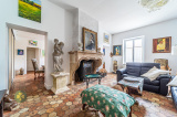 Grand séjour de 45m², belle hauteur sous plafond, belle cheminée contenant désormais un poële à bois (tubé).