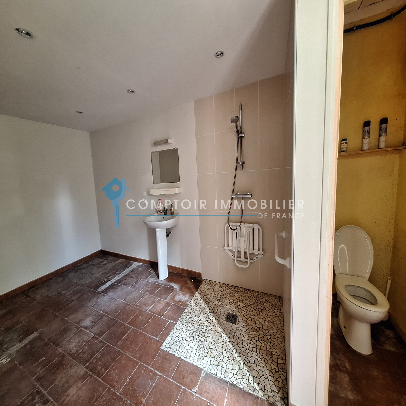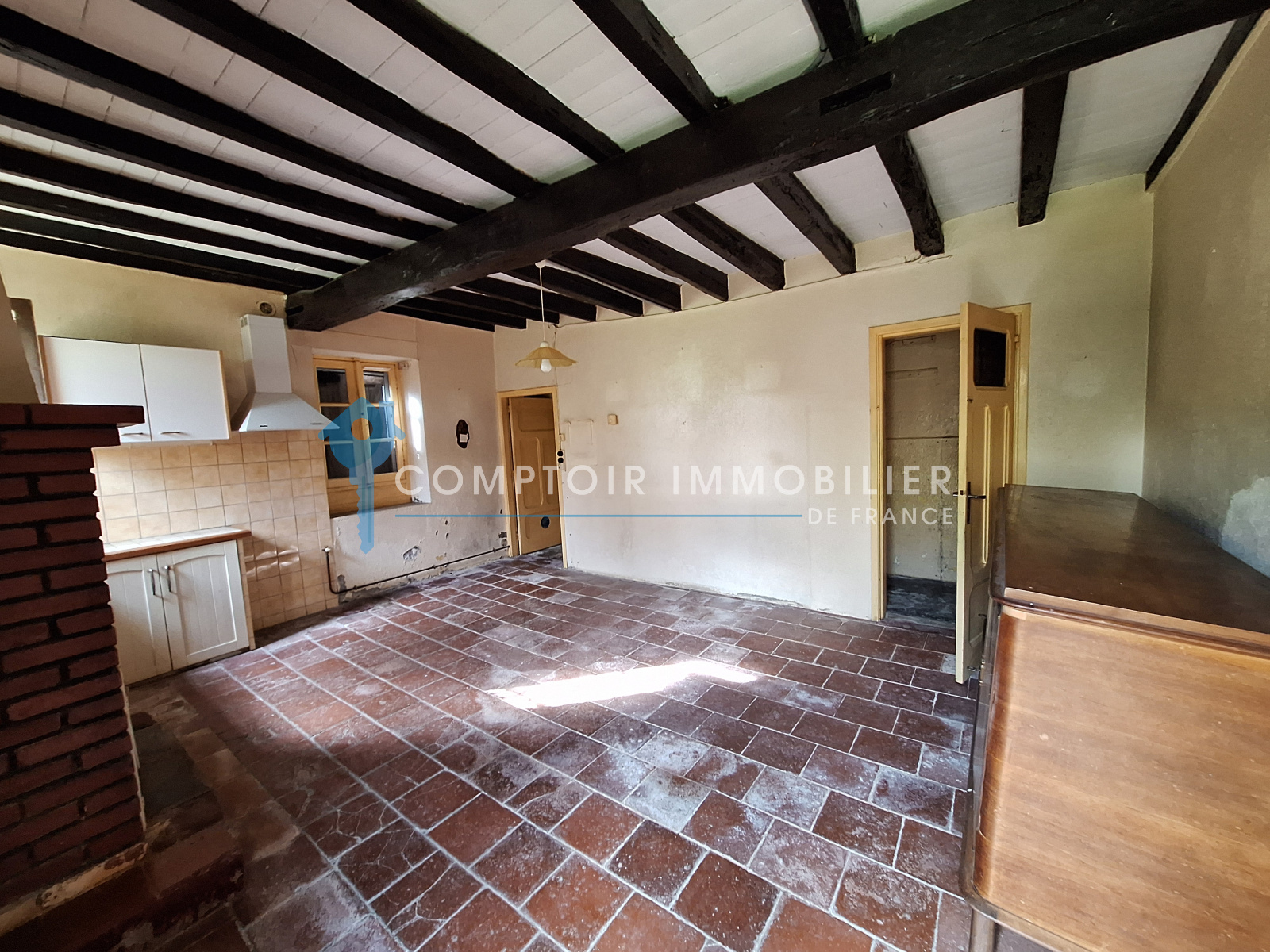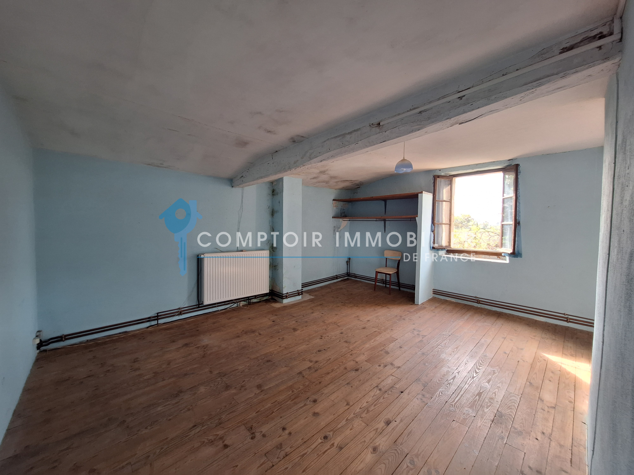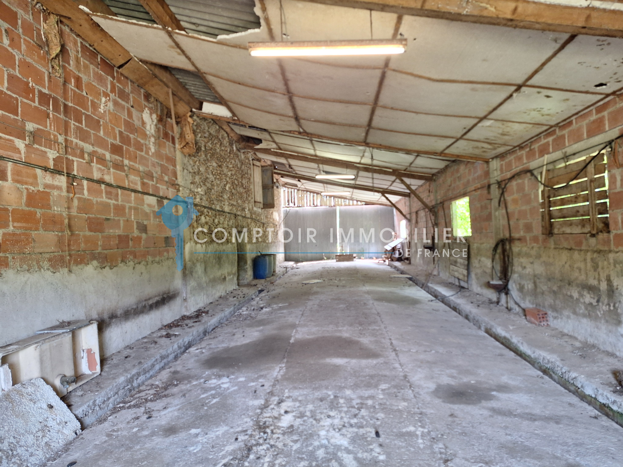 L'ensemble du bien est à rénover, notamment les toitures (certaines parties sont amiantées et la couverture en canales crochetées est à refaire), les portes et menuiseries, l'électricité, l'isolation.