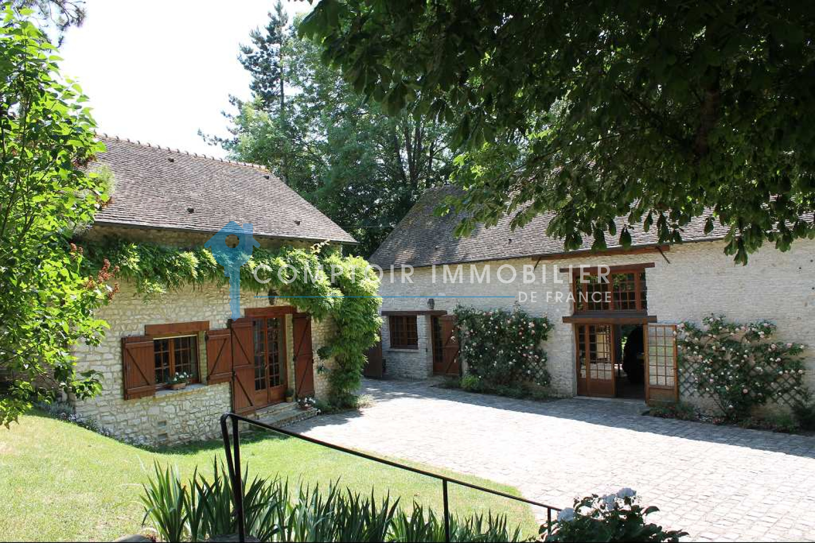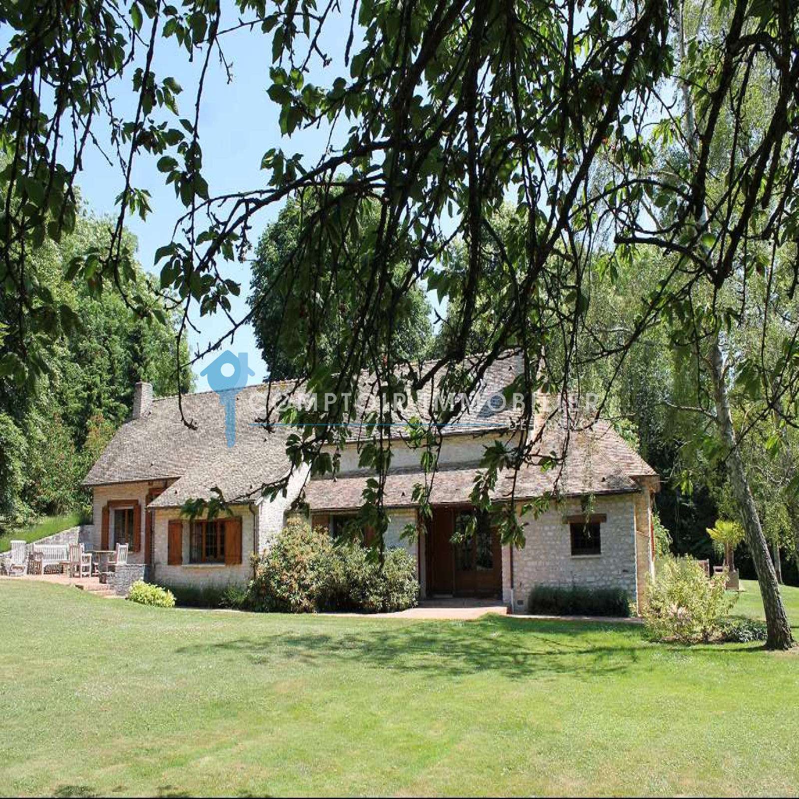 A moins d'1h00 de Paris, proche Pacy sur Eure et Breval. Très belle propriété en pierre avec de belles prestations, dans un environnement calme et idylique. Cette propriété présente une habitation pricipale 173 m2 avec salon/bibliothèque 53 m2 avec cheminée, salle à manger, cuisine équipée, arrière cuisine, bureau ou chambre, 2 wc, buanderie. A l'étage, belle chambre spacieuse 24 m2, salle de bains et douches,double vasques, l'ensemble en onyx, wc. 4 autres chambres, 2 wc, salle d'eau, salle de bains sont réparties dans les 3 dépendances. Grange 67 m2 en tomette, possibilité faire salle de réception. garage. Le tout sur un magnifique parc arboré et clos de 1,6 ha. COMPTOIR IMMOBILIER DE FRANCE - Gilbert GENESTE - 06 61 19 05 67 - Marie NGUYEN - 07 77 96 31 87 - Plus d'informations sur www.cif-immo.com (réf. 2674)