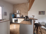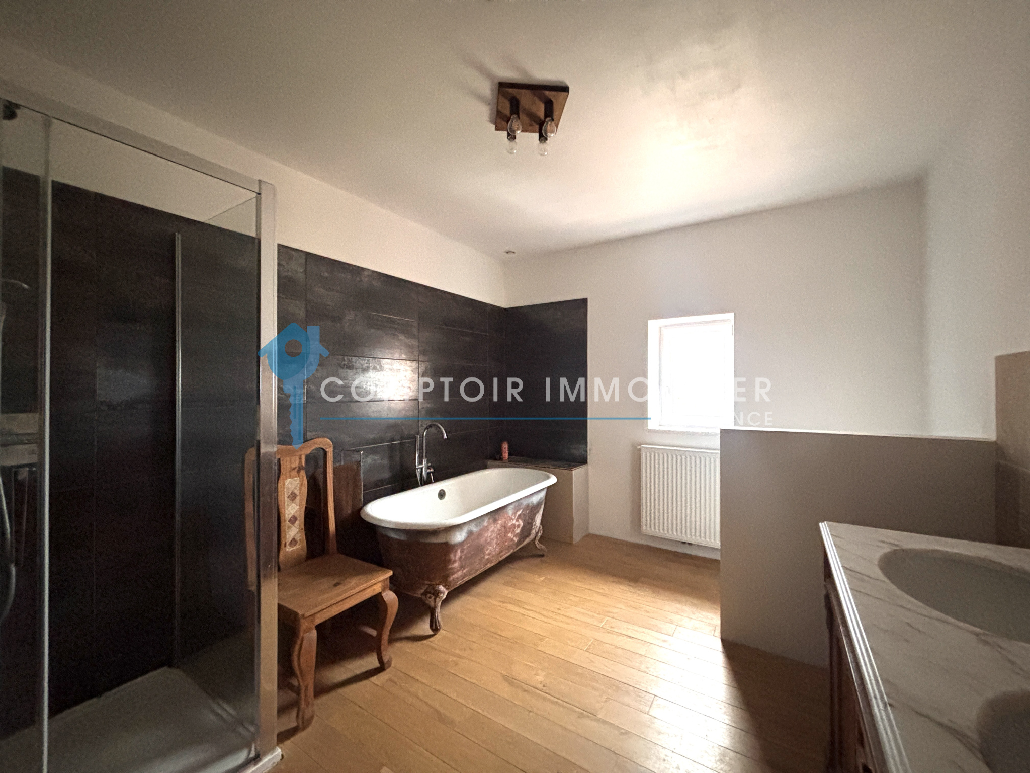 Second gîte de 55 m² : Le RDC comprend une pièce de vie ouverte sur une cuisine équipée et aménagée avec accès à une terrasse de 12m². A l'étage, on trouve une grande suite avec douche, vasque et WC indépendant.