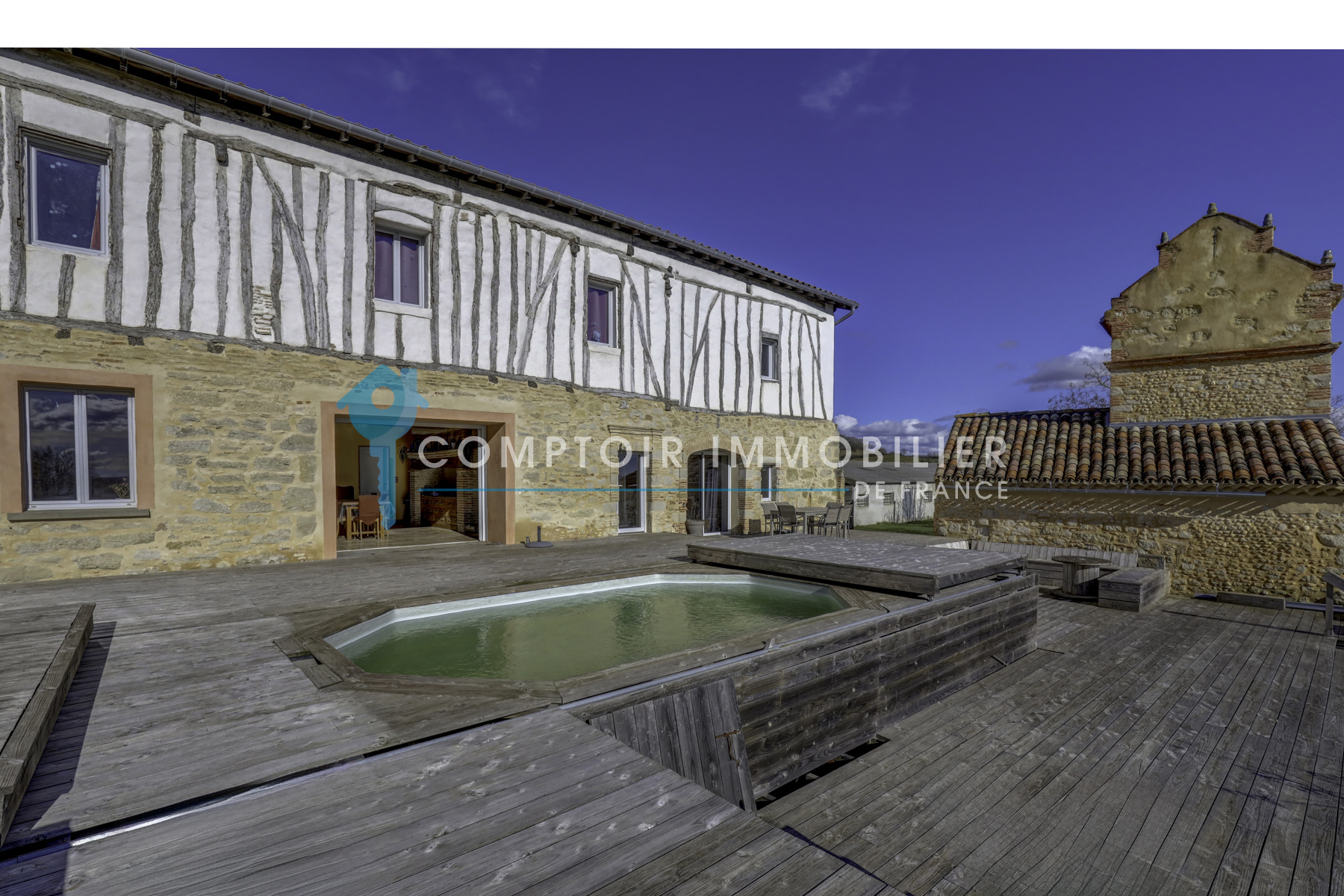 Habitation principale : 290 m² : La bâtisse centrale propose au RDC un hall d'entrée/cellier, une spacieuse pièce de vie ouverte sur une cuisine aménagée, une pièce de loisirs, un salon et d'un WC. A l'étage, un dégagement dessert 4 chambres dont une suite parentale, une salle d'eau double et un WC. Une large baie vitrée ouvre sur une terrasse de 200 m² bénéficiant d'une vue degagée pyrenées avec piscine.