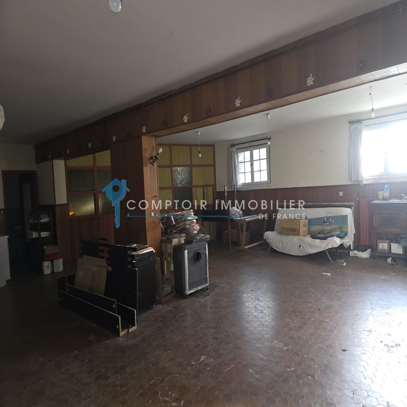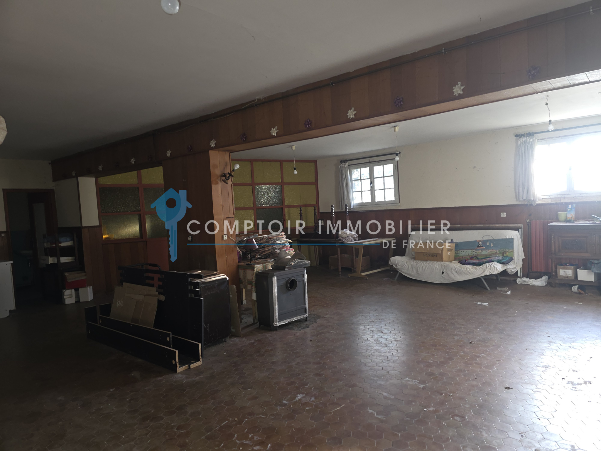 Au 1er Etg : env 100 m² avec une belle véranda avec baies coulissantes - 1 cuisine meublée - 1 grand séjour/salon - 2 chambres - 1 salle de bains - wc séparé - accès au sous-sol par l'intérieur - combles aménageables -