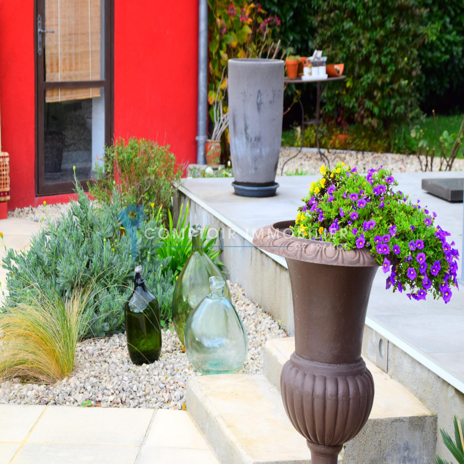 Une petite allée gravillonnée vous dirige vers le porche d’entrée.