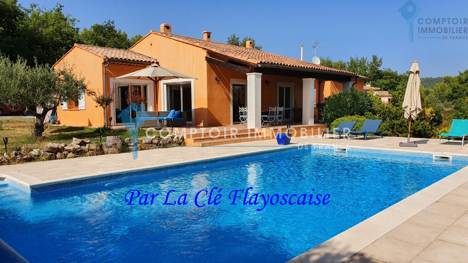 Cette superbe villa de 190 m2 bénéficie d?une vue dominante dans son écrin de verdure de 4000 m², tout en étant à 2 km du centre du village. Elle vous ravira par la générosité de ses dimensions, mais également par la convivialité de sa pièce de vie lumineuse ouvrant sur sa grande cuisine entièrement équipée, mais aussi sur sa terrasse spacieuse avec sa superbe piscine. Vous vous sentirez immédiatement chez vous dans cet environnement calme et apaisant. De grands volumes également pour les 4 chambres sans oublier les annexes totalisant 80 m² supplémentaires tels que le grand garage, la salle de jeu, la buanderie, etc. Prestations de qualité pour cette propriété familiale pleine de charme dans un cadre exceptionnel. Venez découvrir tous les atouts de cette villa située à quelques minutes de Flayosc, village de la Dracénie, à mi-chemin entre les gorges du Verdon et le Littoral. COMPTOIR IMMOBILIER DE FRANCE - Patricia PAYOUX - 07 83 12 48 65 (Conseillère immobilier dans le Var en Dracénie - La Clé Flayoscaise) - Plus d'informations sur www.cif-immo.com (réf. 13966) -- Informations CORONAVIRUS : Nos visites s'effectueront avec la mise en place d'un protocole sanitaire, notamment avec le port d'un masque et dans le respect des gestes barrières, afin d'assurer la protection de tous. -- Honoraires charge vendeur