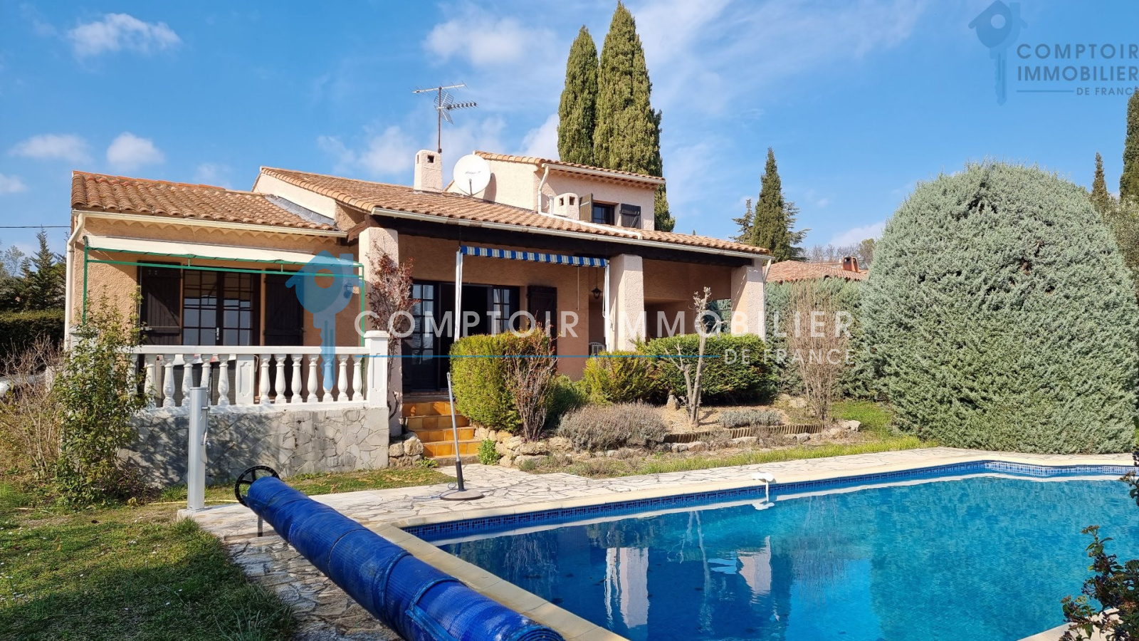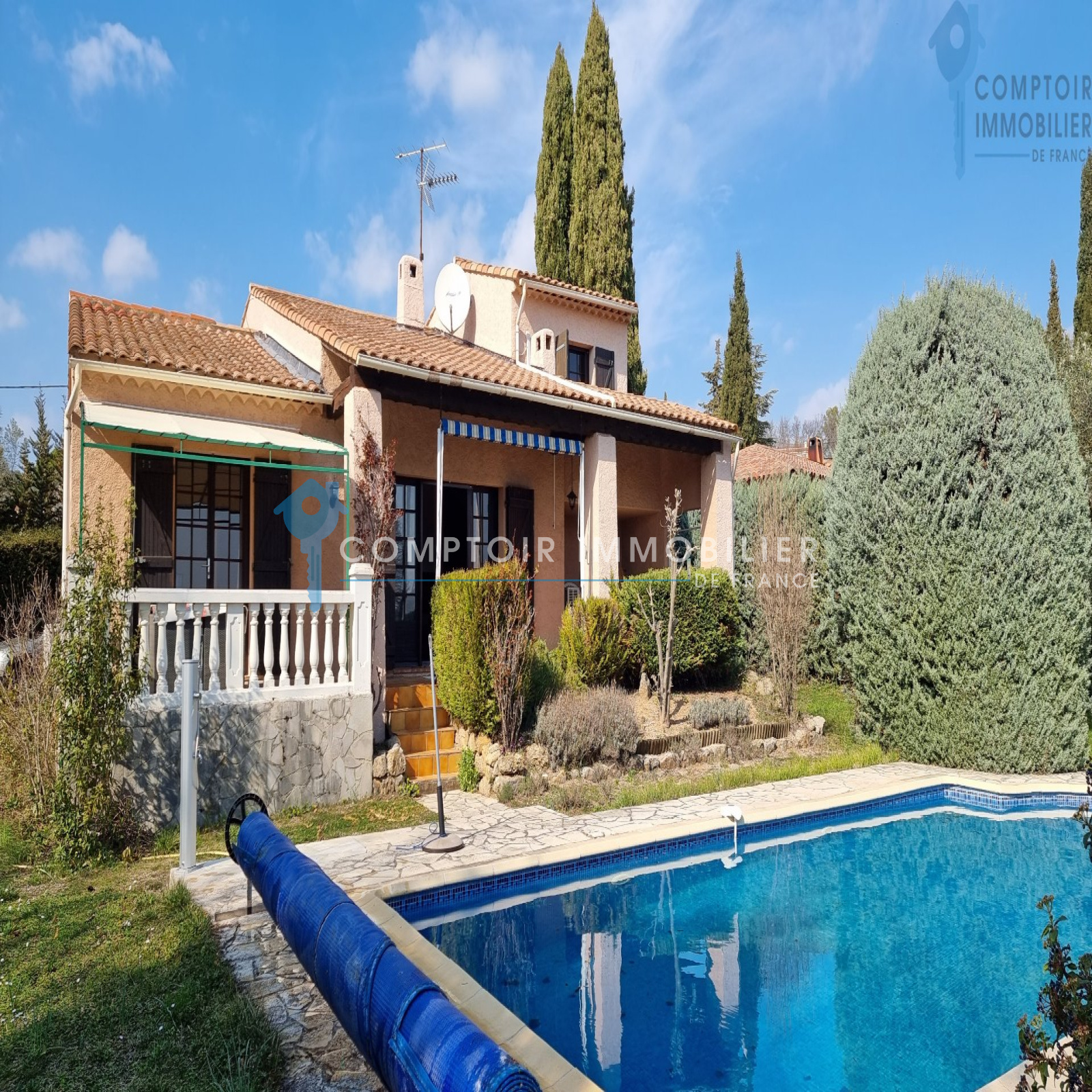 Superbe vue dégagée sur le village de Flayosc : Pourquoi ne pas le vivre tous les jours ? Vous recherchez une villa de caractère de 92 m² située dans un jardin clos, arboré et sans vis-à-vis de 1290 m², dans le calme le plus complet mais sans être isolée ? La voici ! À 15 minutes à pied des commerces de Flayosc, elle propose un salon avec une mezzanine à l?étage donnant accès à une suite parentale, une cuisine indépendante avec accès direct au garage attenant de 19 m², sans oublier les 2 chambres avec leur salle de bain et WC indépendant. Un parking peut accueillir plusieurs voitures et coté Sud-est, vous pourrez vous prélasser au bord de la piscine carrelée en toute tranquillité et en toute intimité?avec une superbe vue sur le village ! À mi-chemin entre le littoral et les Gorges du Verdon, Flayosc est un village animé toute l'année grâce à ses nombreux commerces et restaurants. Coup de c?ur assuré ! COMPTOIR IMMOBILIER DE FRANCE - Patricia PAYOUX - 07 83 12 48 65 (Conseillère immobilier dans le Var en Dracénie - La Clé Flayoscaise) - Plus d'informations sur www.cif-immo.com (réf. 14405) -- Informations CORONAVIRUS : Nos visites s'effectueront avec la mise en place d'un protocole sanitaire, notamment avec le port d'un masque et dans le respect des gestes barrières, afin d'assurer la protection de tous. -- Honoraires charge vendeur