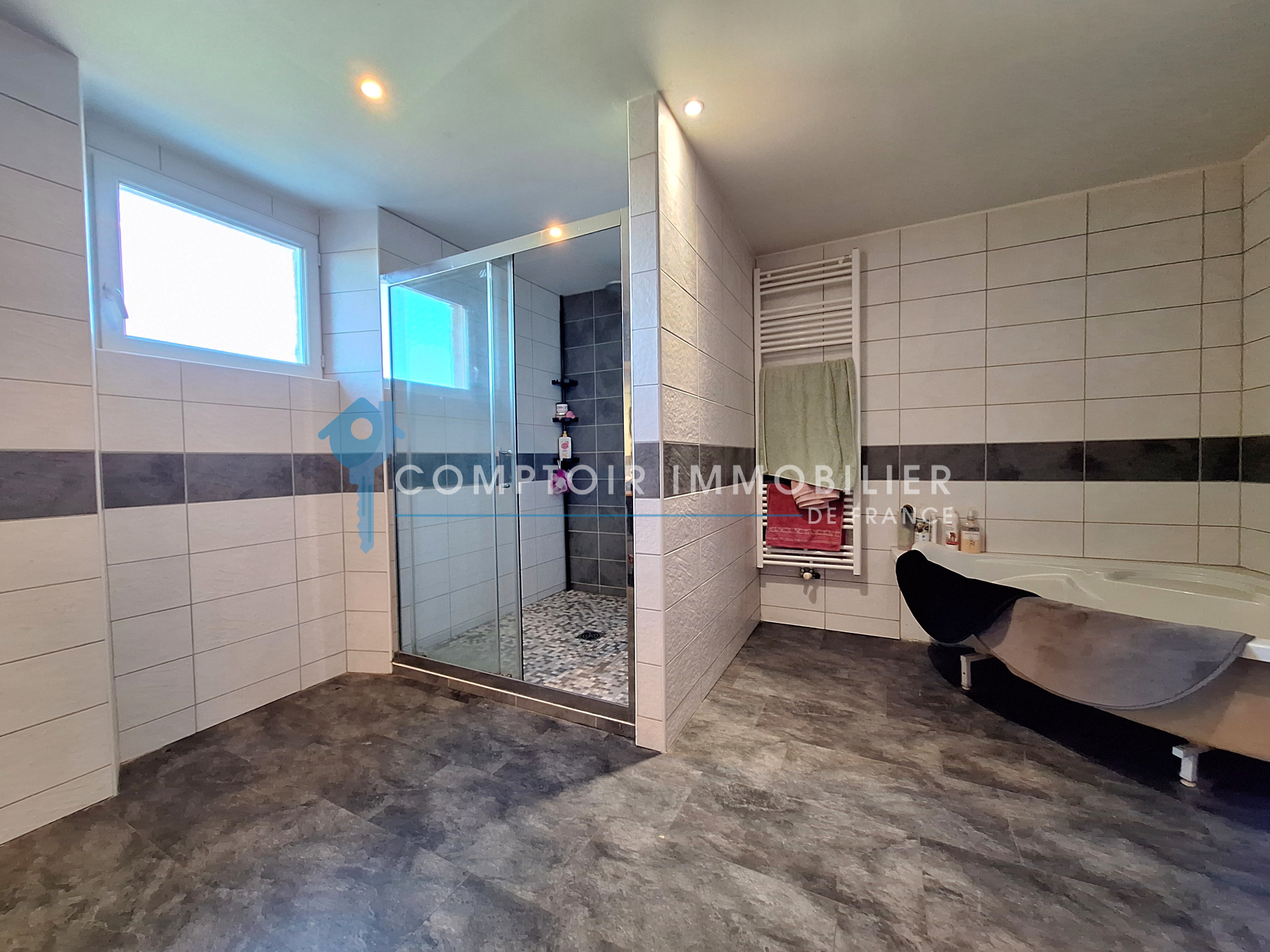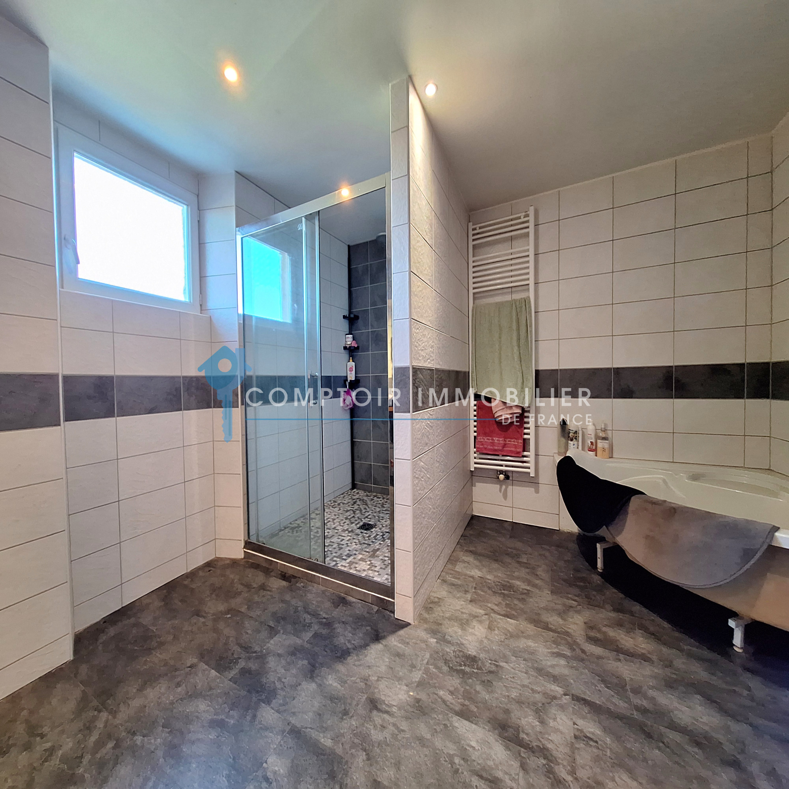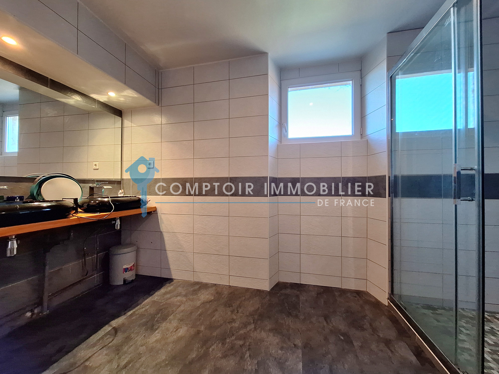 Au rdc d'un grand hall d'entrée ouvrant sur une cuisine aménagée et équipée et un grande pièce de vie de plus de 36m². On trouve encore un dégagement qui accède à une chaufferie, une douche et un WC.
