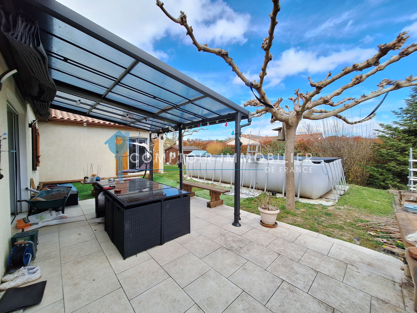 Sur la commune de Saint-Germain-Des-Prés dans une impasse calme, devenez propriétaire d'une villa de 2010 avec 5 chambres et une large terrasse en partie couverte. Sa surface intérieure habitable mesure environ 125m² en plain-pied L'espace intérieur se compose d'un coin salon de 34m² avec poêle à bois ouvert sur la cuisine et sa buanderie, de 5 chambres, de nombreux rangements et une salle de bain avec douche, bain et WC et un second WC indépendant. Une des chambre ouvre directement sur la terrasse. Le double vitrage garantit le calme du lieu. Le terrain offre assez d'espace pour être divisé en zones de loisirs comme un espace de jeux, une piscine hors-sol 8/4m, un poulailler et un potager. Pour dîner sous les étoiles, vous profiterez de la terrasse de 28m² dont 12 sont couvrables. Le domicile vous fait profiter d'une aire de parking privative pour garer sa voiture et d'un garage. Le prix est de 248 000 €. Pour ce qui est du montant de la taxe foncière, il est fixé à 930 € sur l'année, ce qui correspond à plus ou moins 78 € mensuels. Honoraires charge vendeur www.cif-immo.com/tarn-sud