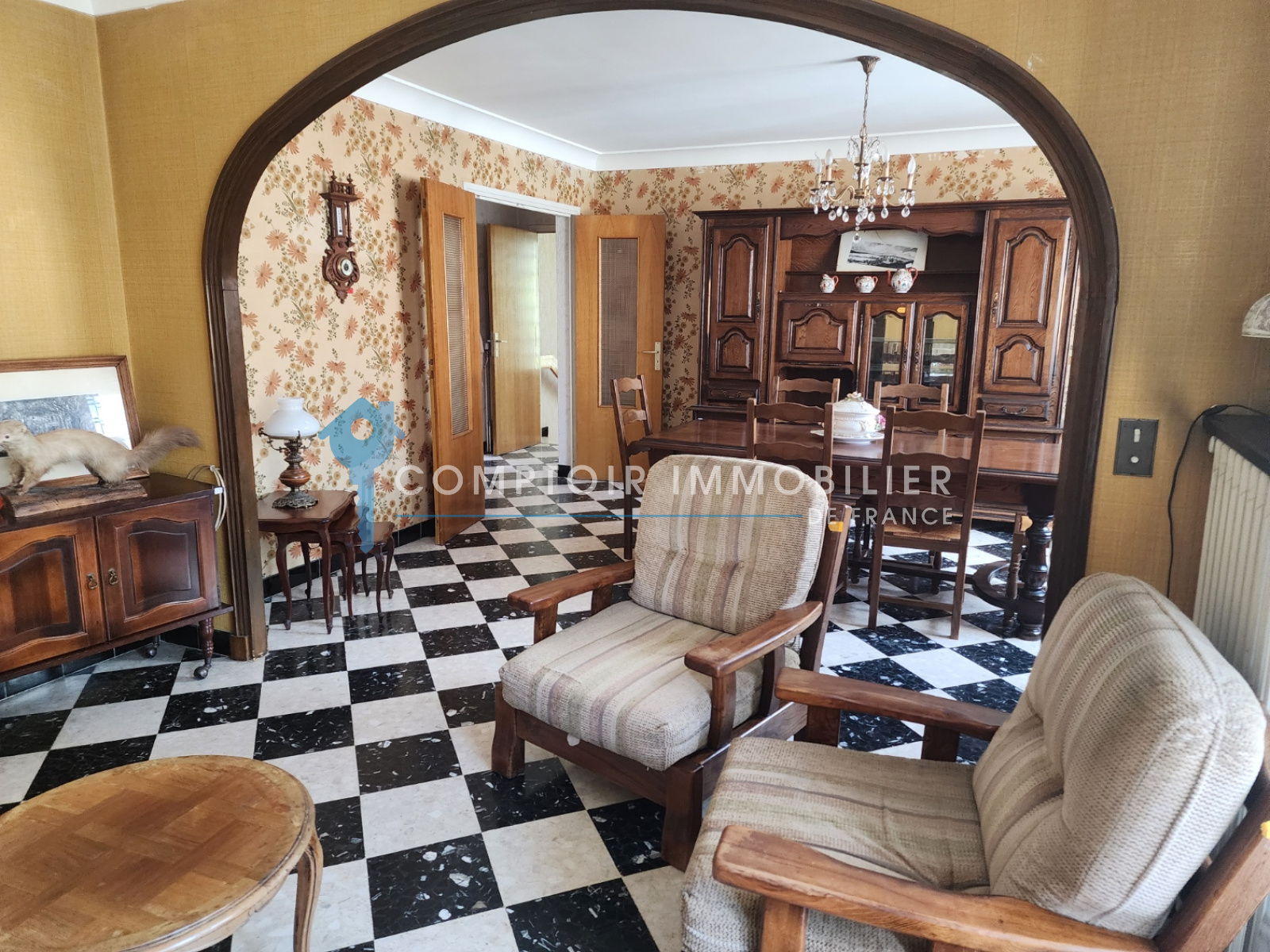 CIF. Marie.José Albanese vous propose à la vente cette maison de 193 m² très lumineuse - elle se compose d'un grand local commercial (ancien magasin d'electricité) avec changement de destination possible et d'un appartement de type 4 sur 559 m² de terrain - 3 garages - parking -