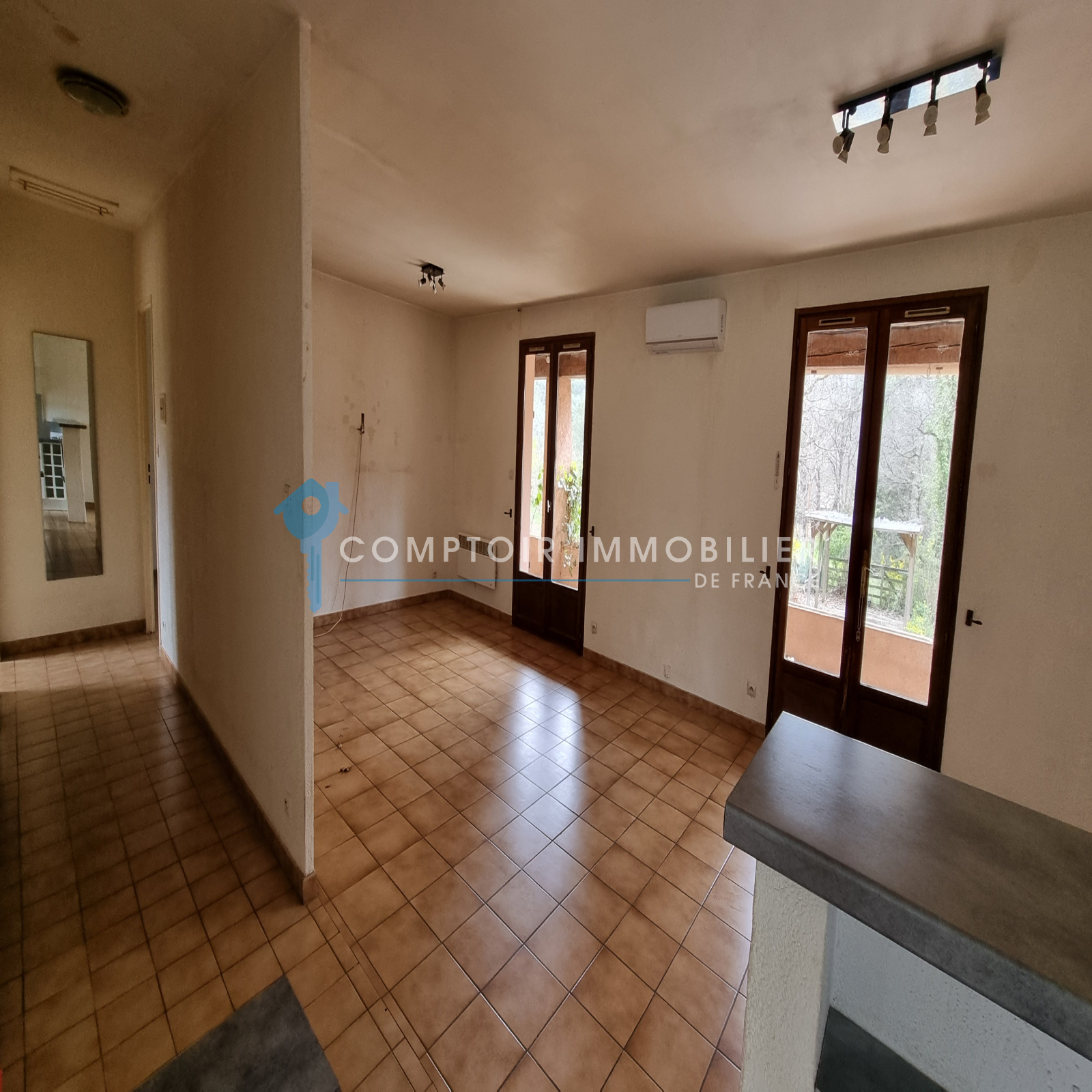Climatisation réversible et cheminée insert dans le salon, portail automatique, tout à l'égout, vide sanitaire.