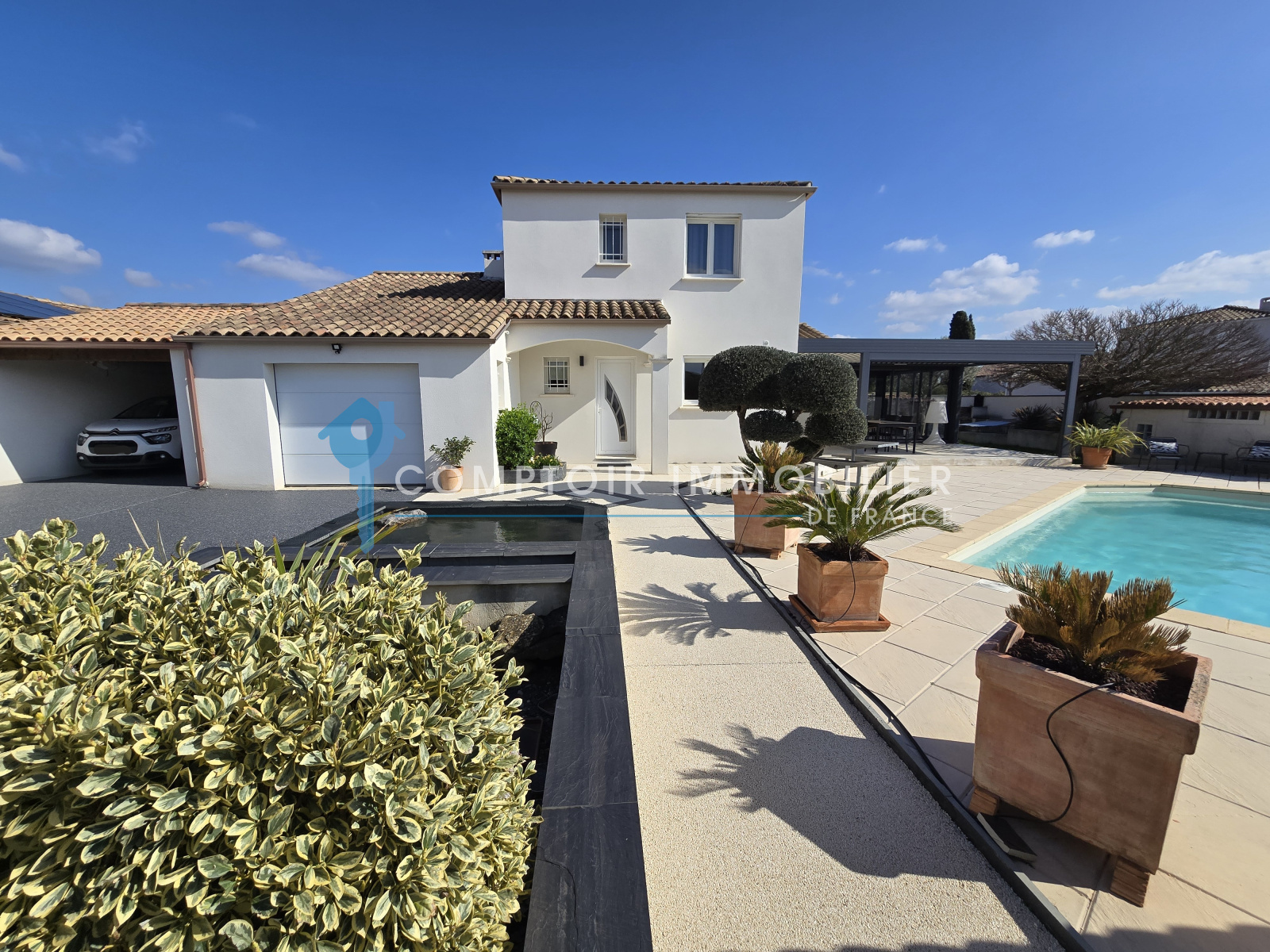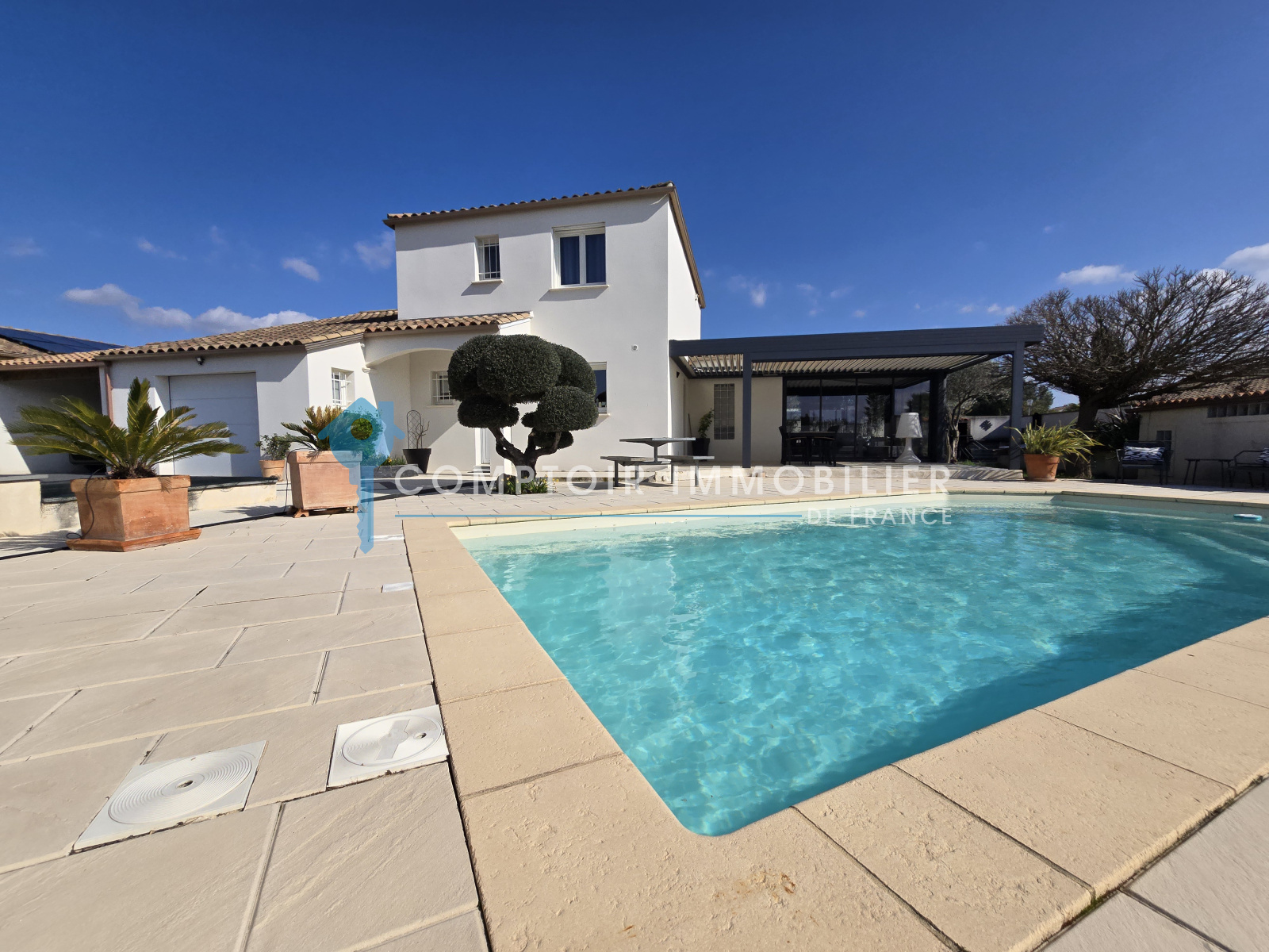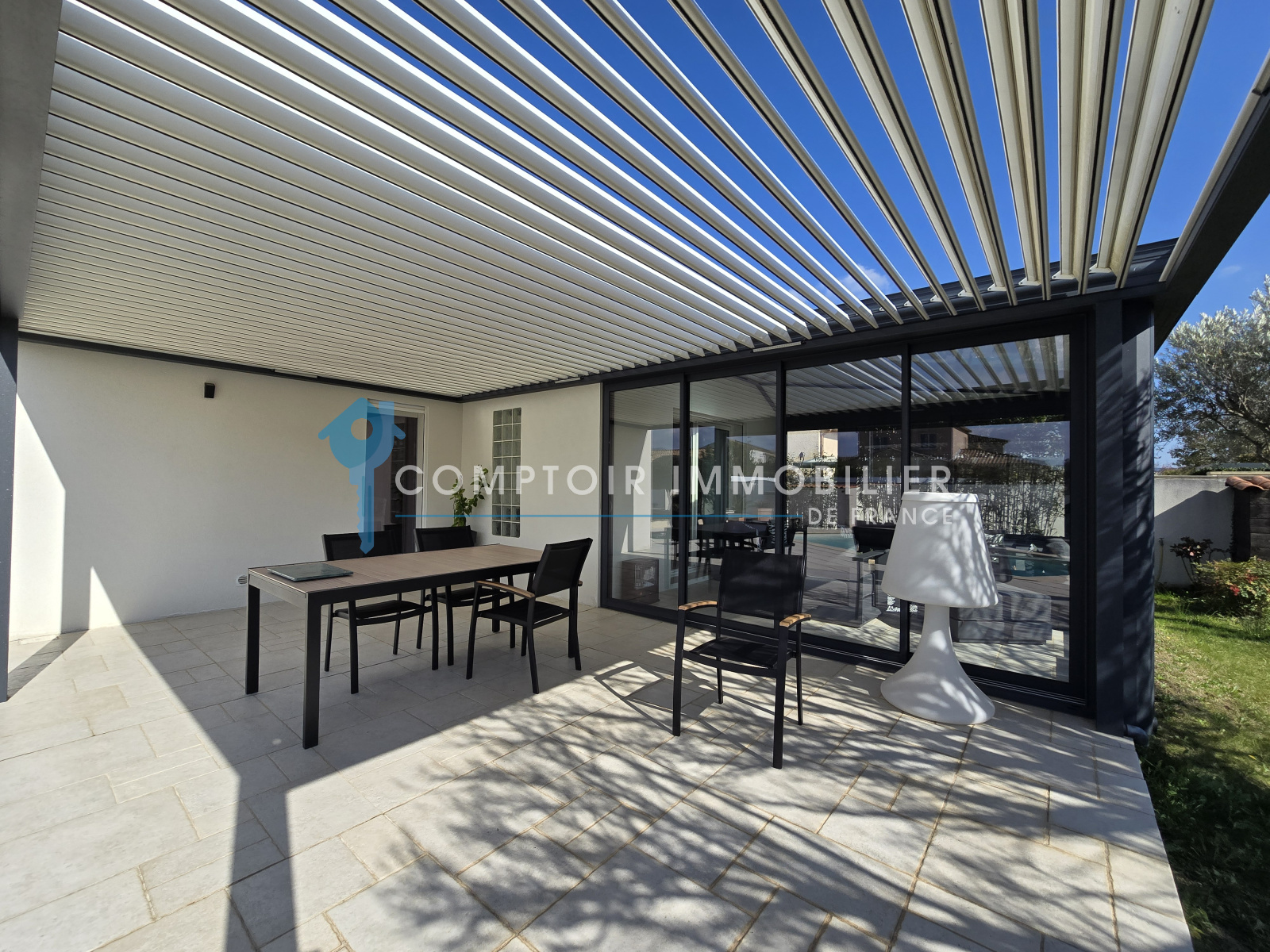 Ses atouts: pergola bioclimatique, climatisation réversible, panneaux solaires, ballon thermodynamique, adoucisseur, eau du canal de Gignac,...
