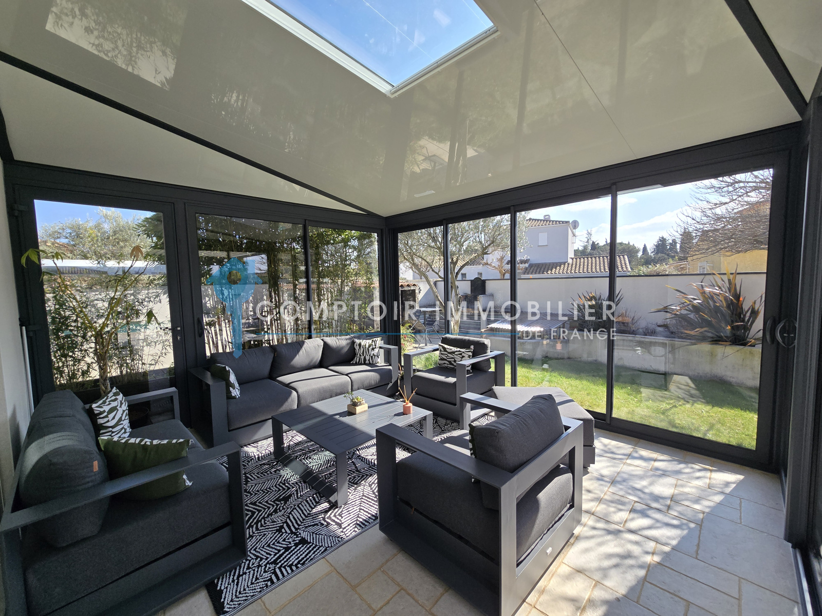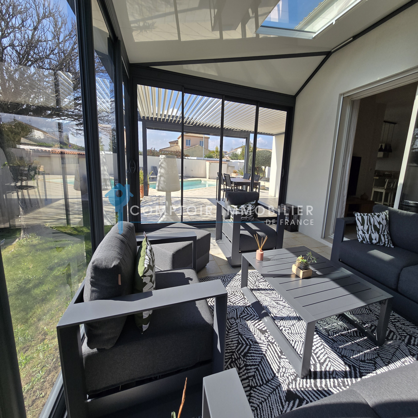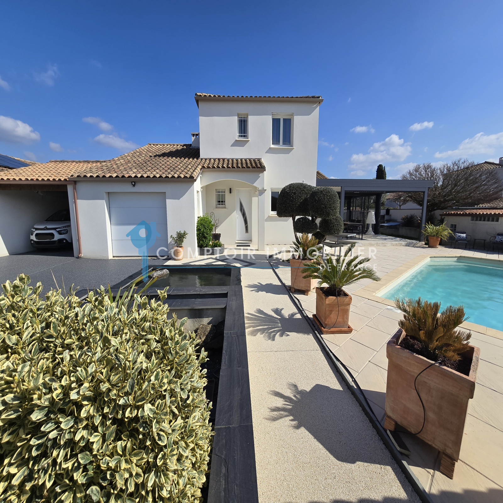 Ses atouts: pergola bioclimatique, climatisation réversible, panneaux solaires, ballon thermodynamique, adoucisseur, eau du canal de Gignac,...