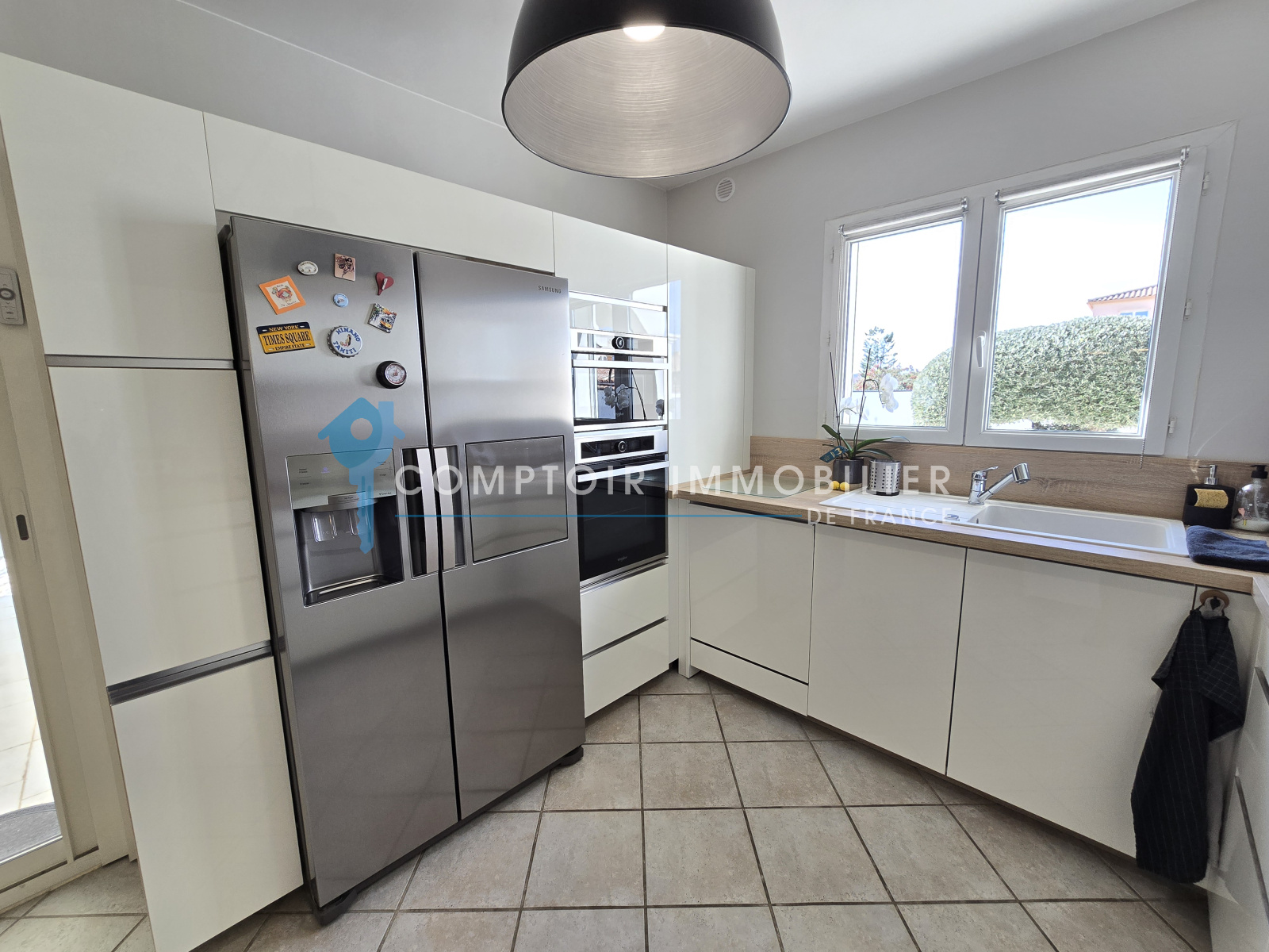 Au rez de chaussée, vous découvrirez, un espace de vie lumineux avec sa cuisine parfaitement équipée donnant sur une superbe véranda et la terrasse, une chambre parentale avec rangements et salle d'eau ainsi qu'un cellier/buanderie.