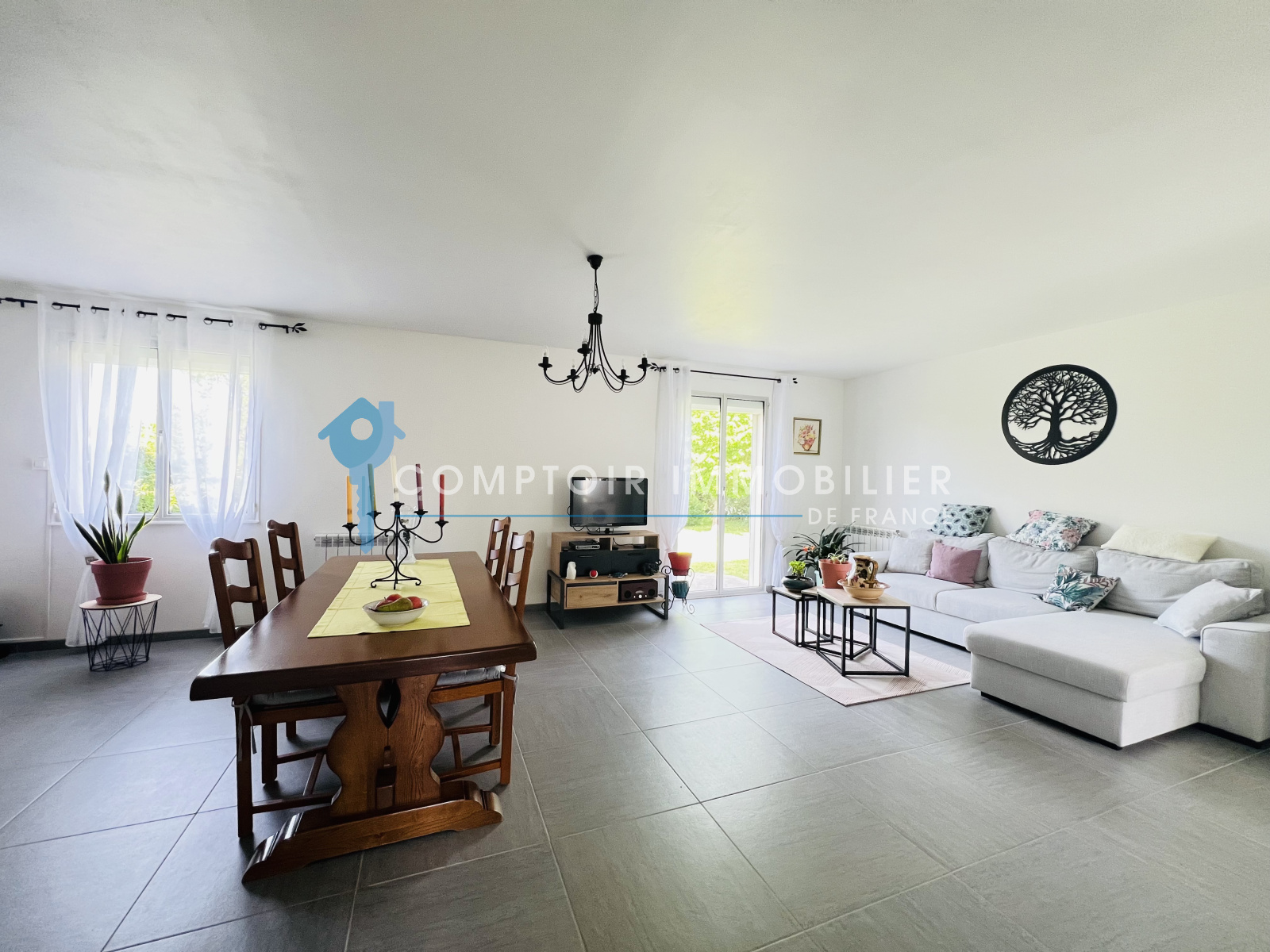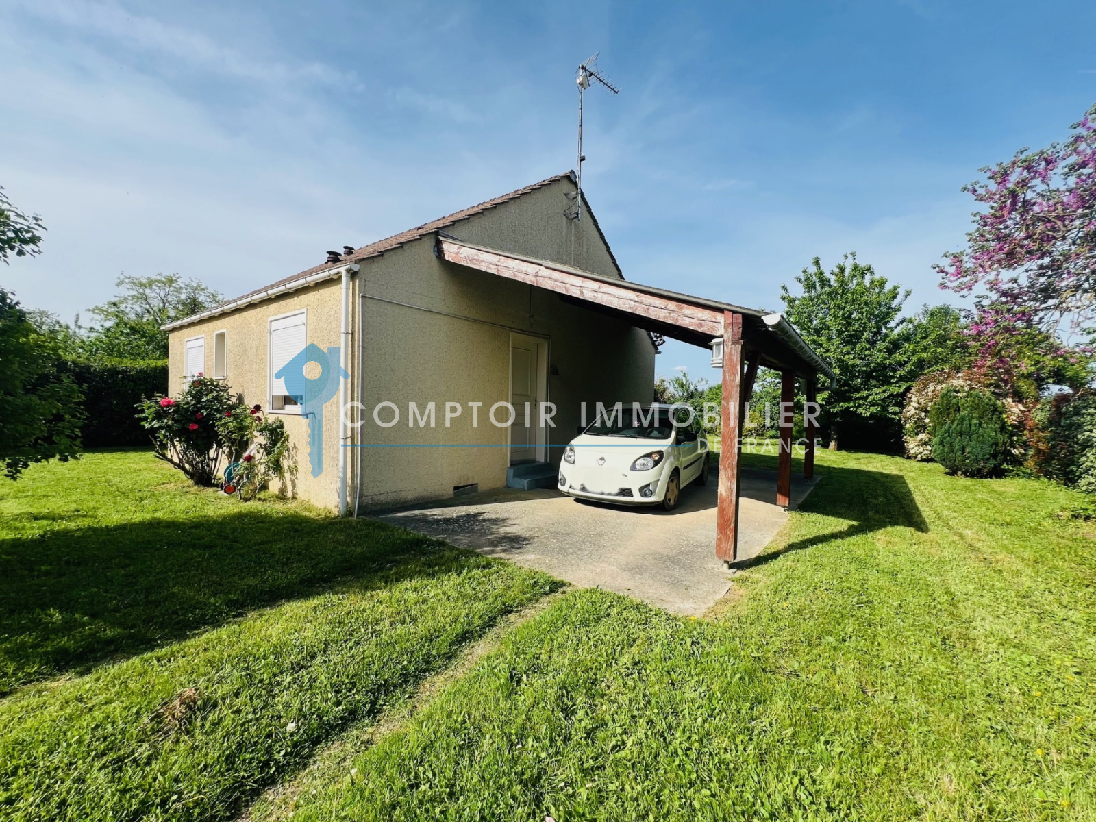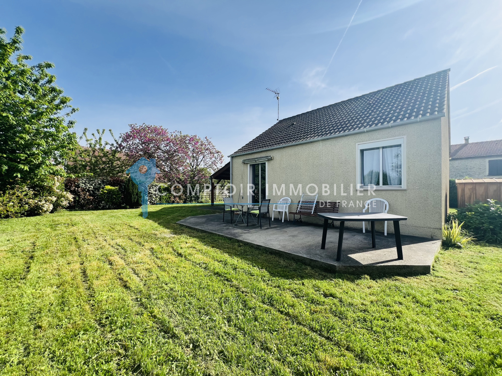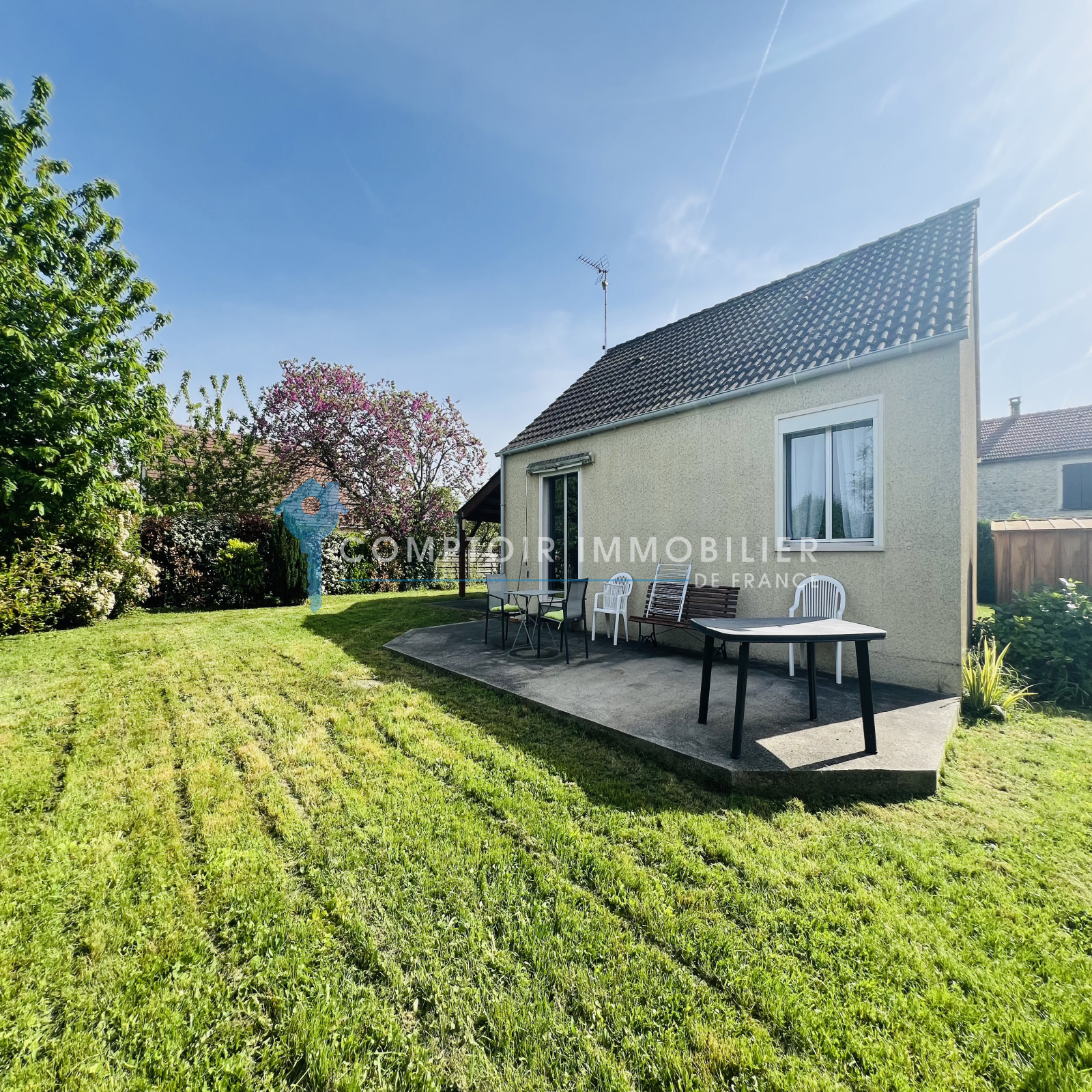 Située dans un environnement calme et verdoyant, venez découvrir cette agréable maison de plain-pied édifiée sur un magnifique terrain clos et arboré d’environ 948 m².