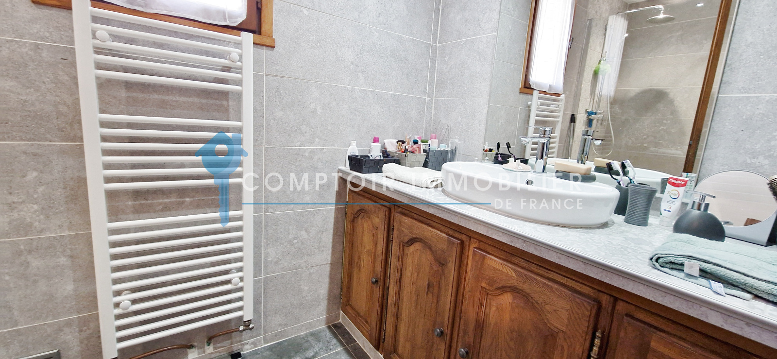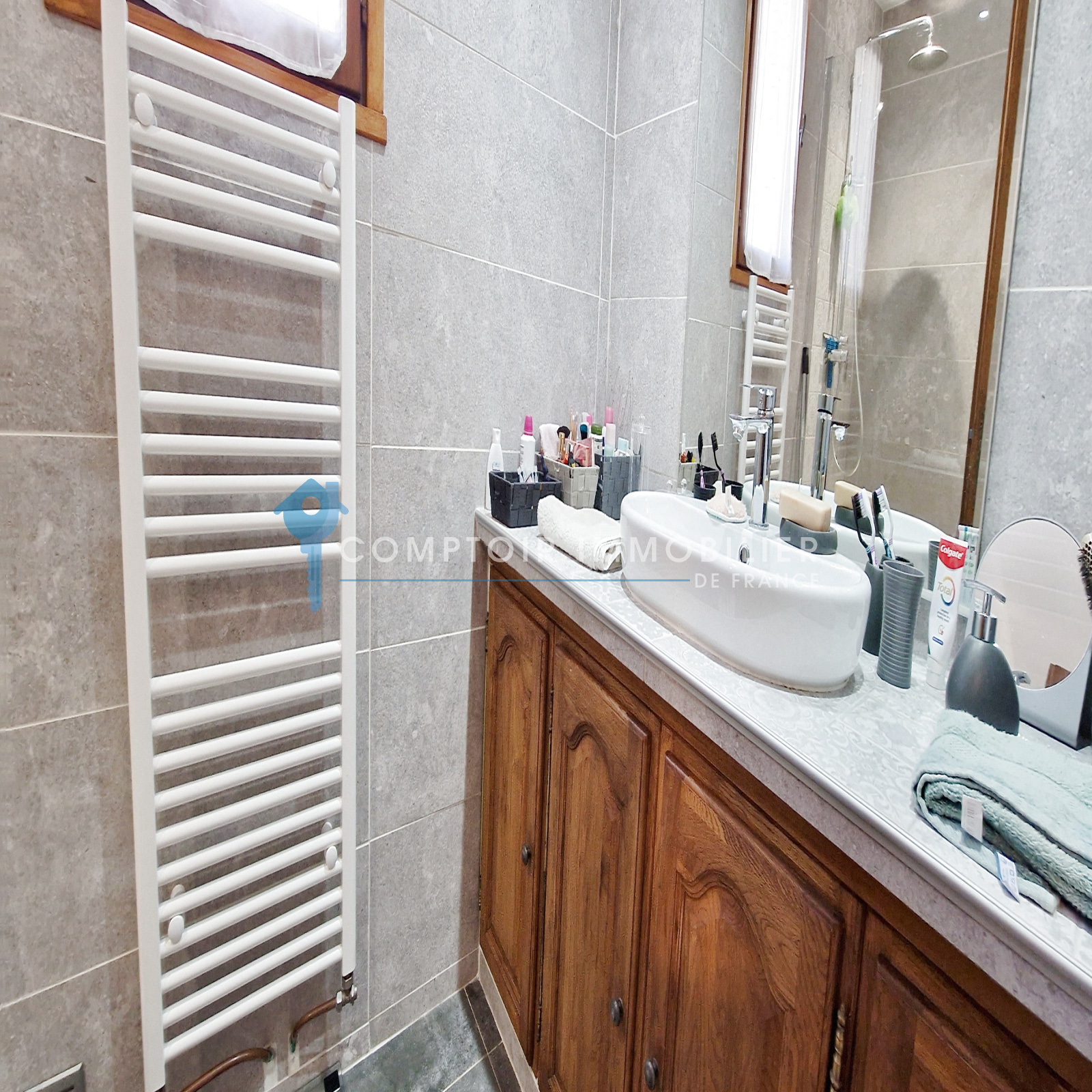 Ce bien offre 3 chambres avec penderie, une cuisine équipée ouverte sur séjour, une salle d'eau, un bureau, un garage.