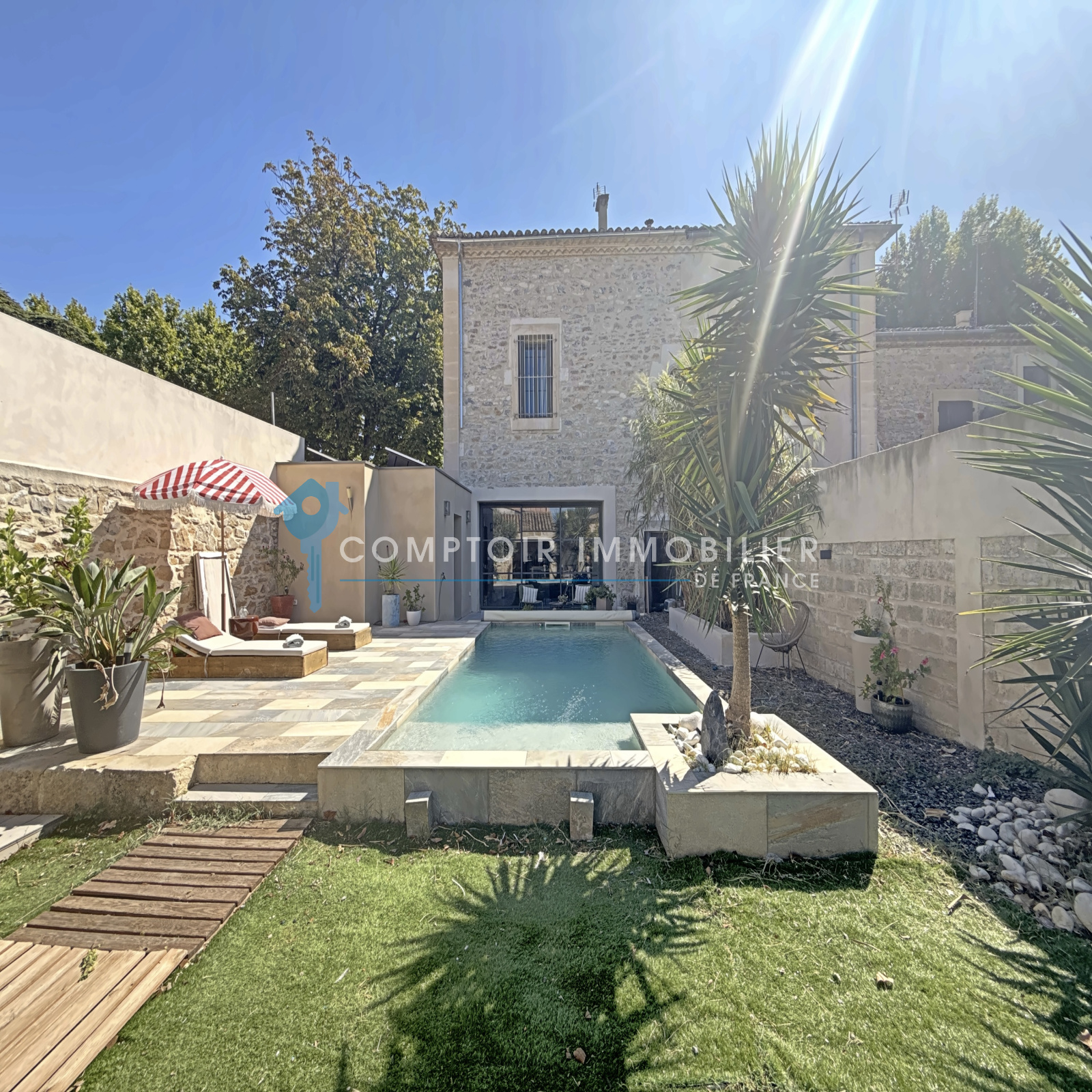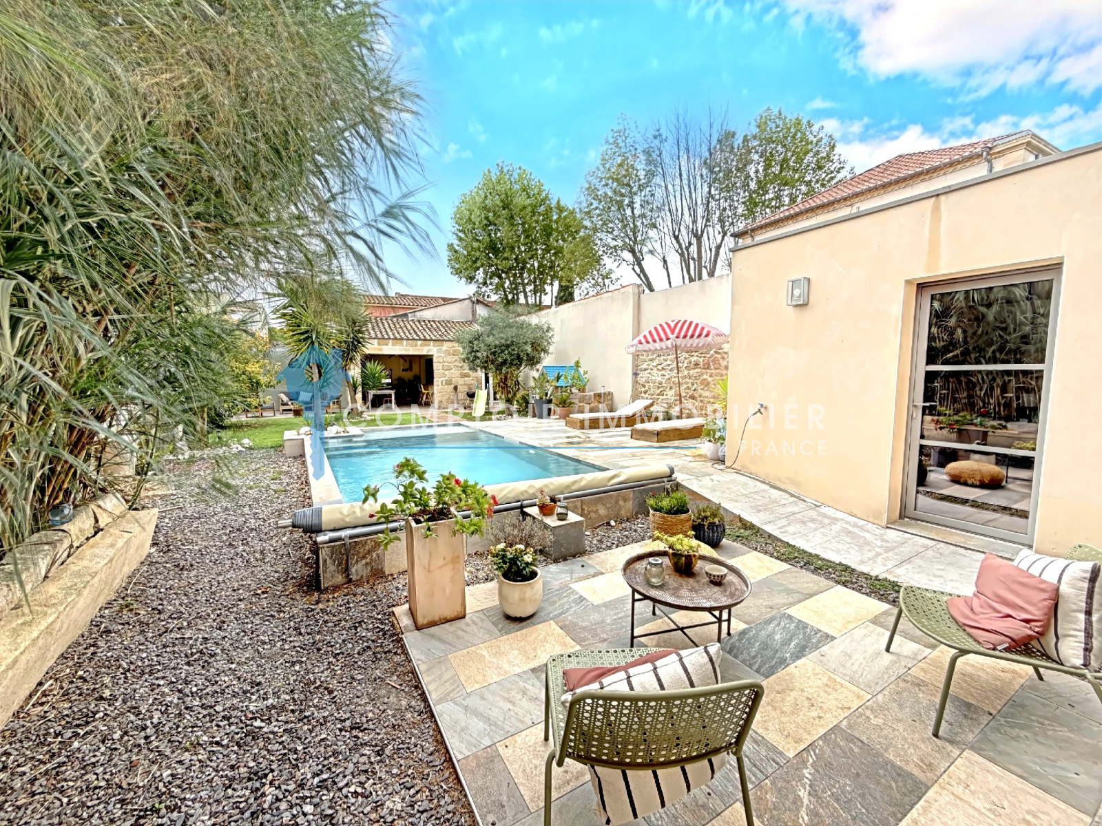 A l'exterieur , un jardin intime de 406 M2 sans vis à vis accueille une piscine au sel , entourée d'un agréable espace détente . Le pool house entièrement équipé avec cuisine permet de prolonger les journées d'été en toute sérénité /