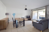 L'appartement de 47m² loi carrez, dispose d'un spacieux séjour prolongé d'une belle terrasse couverte de 10m² environ.