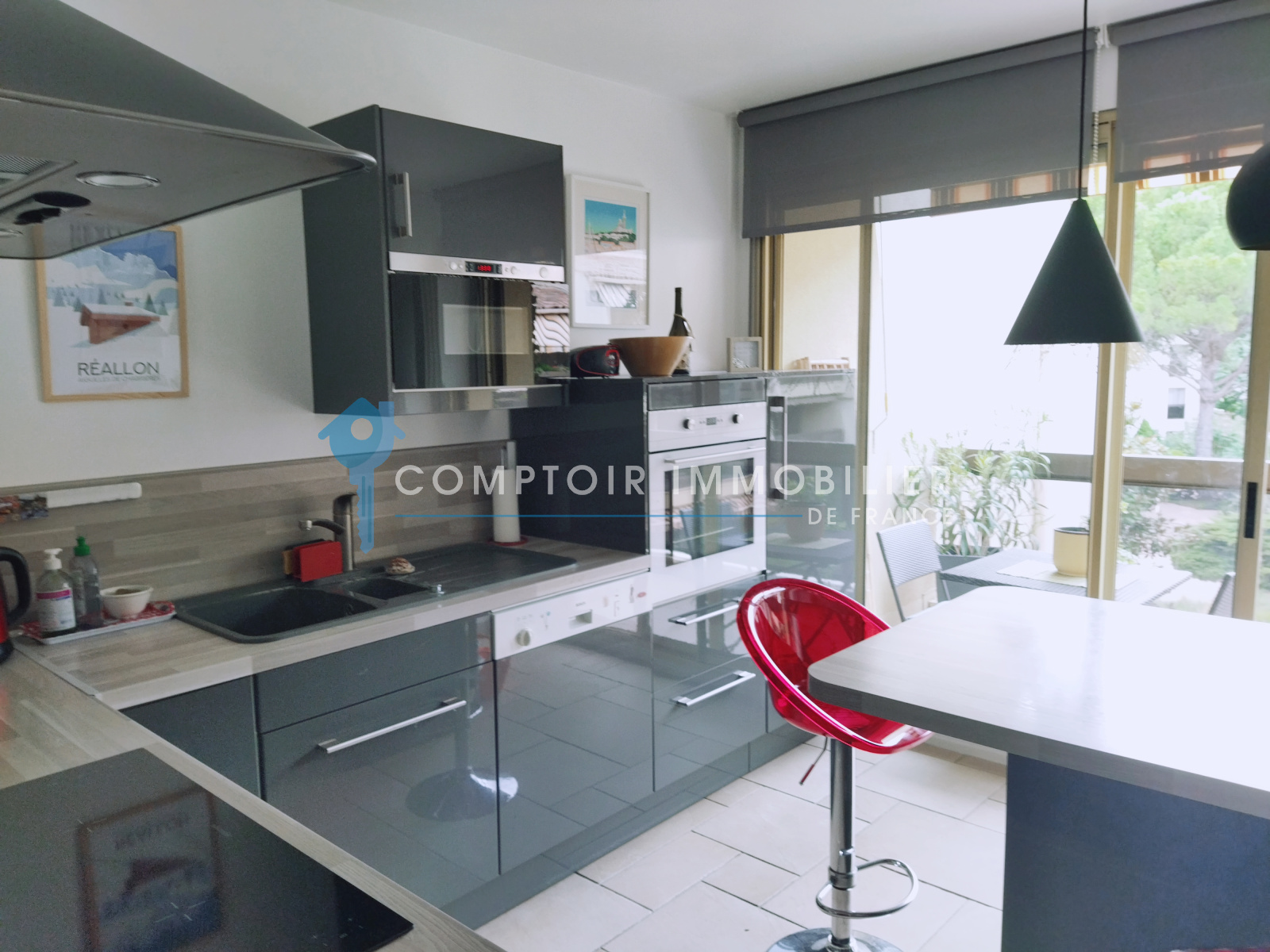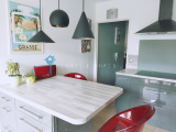 Une cuisine entièrement équipée et moderne avec un cellier attenant et un accès également à la terrasse principale.