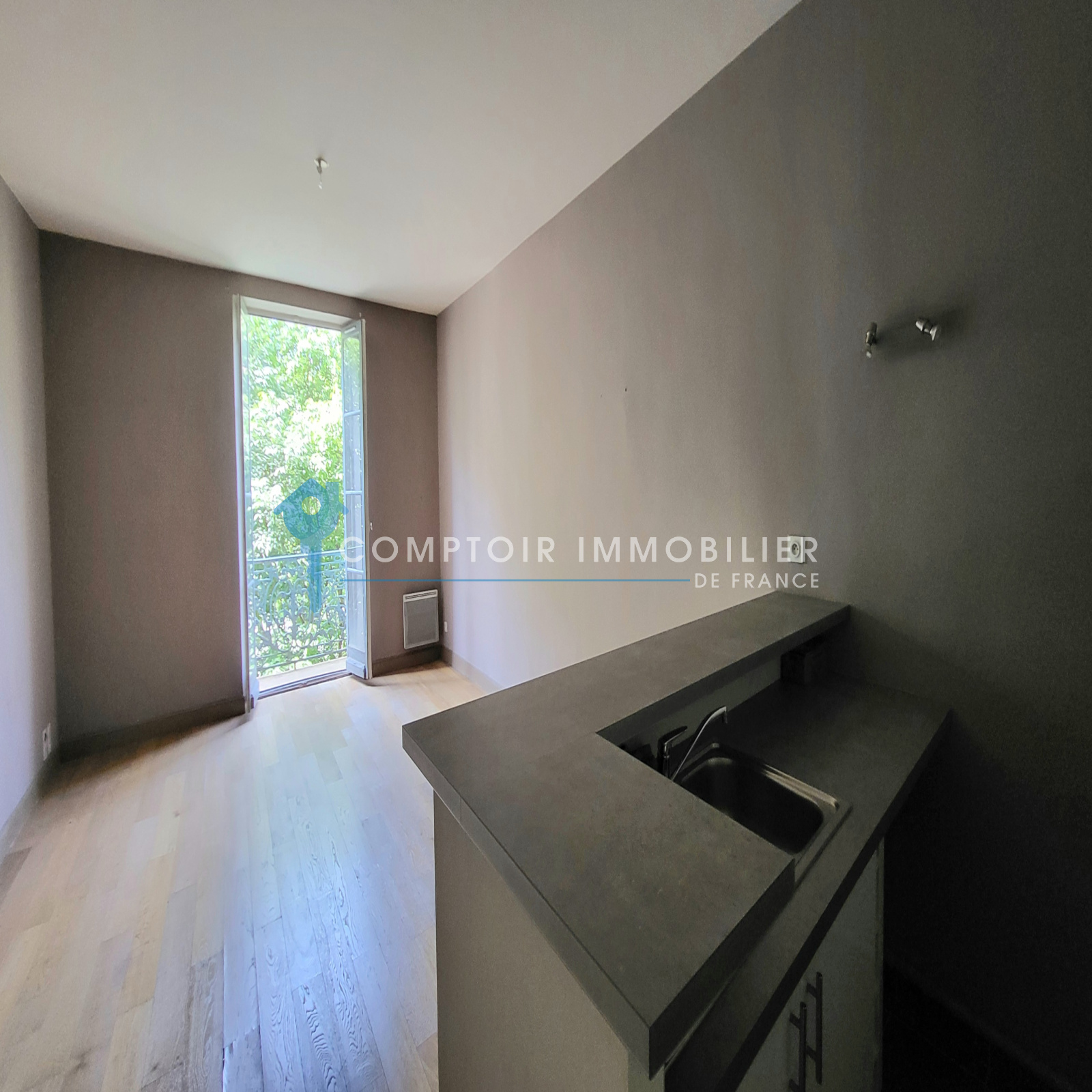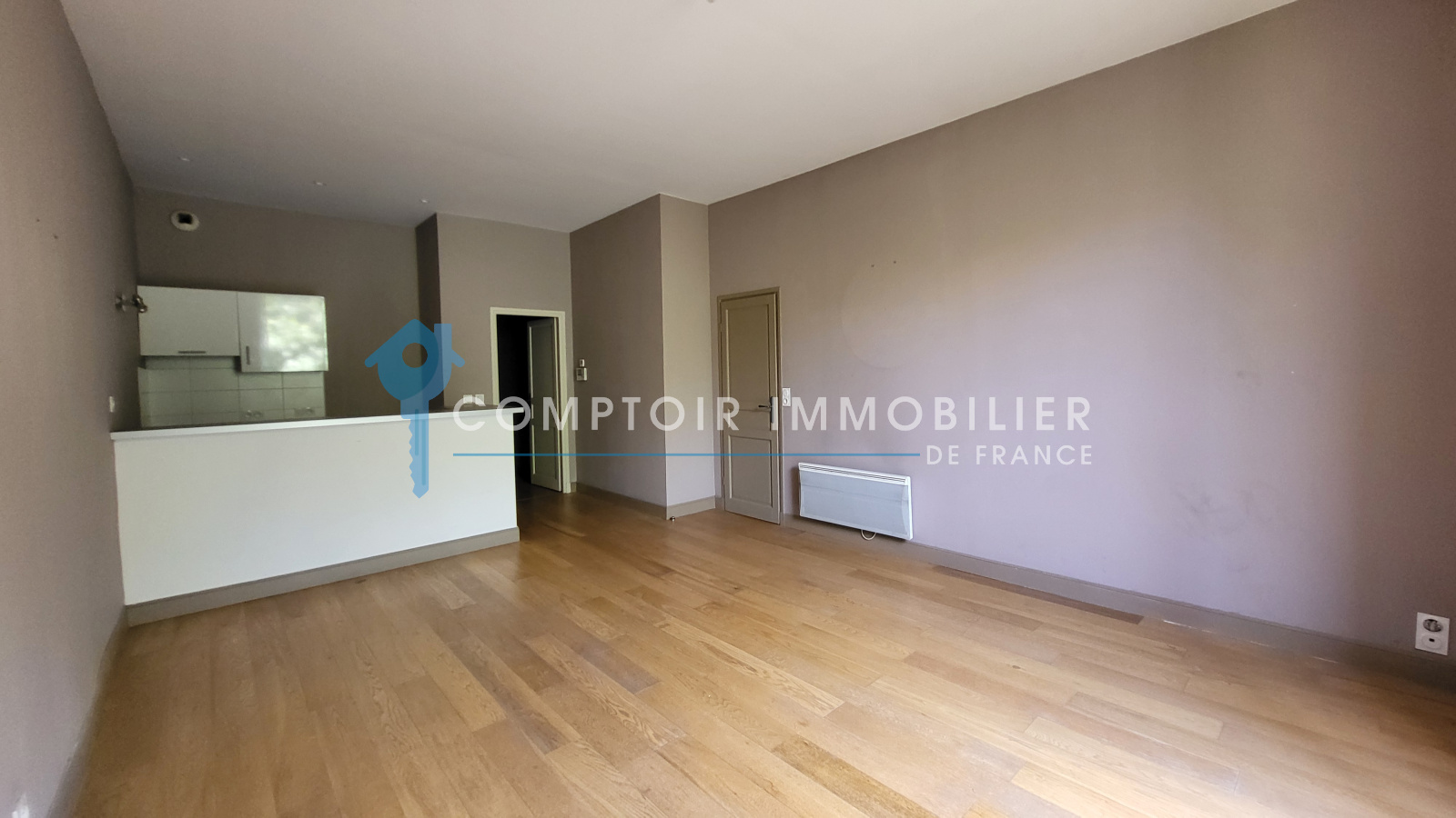 Vous trouverez un séjour lumineux de 29m² avec coin cuisine aménagé et semi équipé, une salle de bains avec WC,