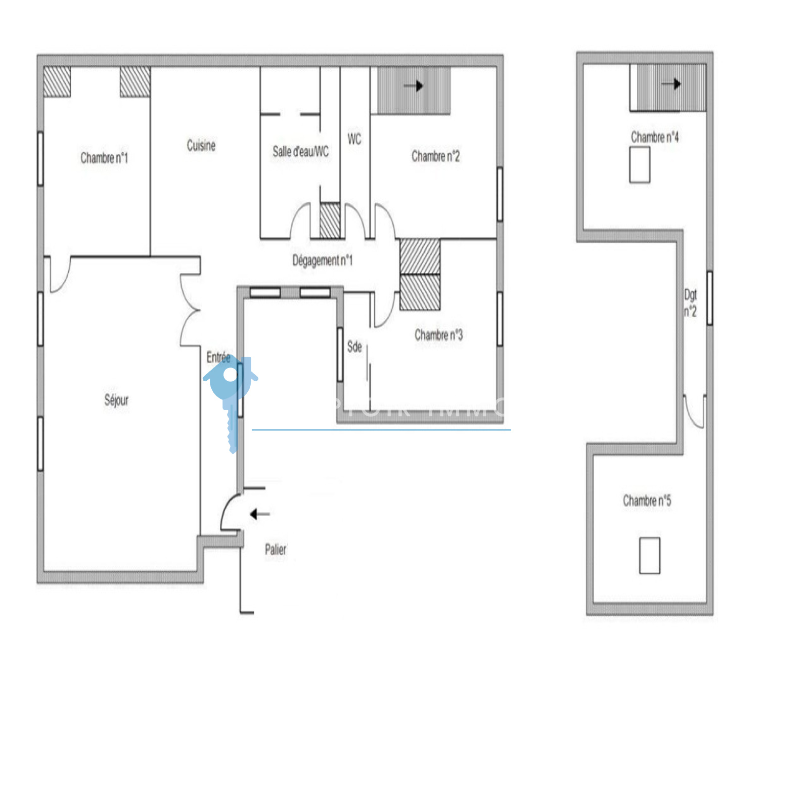 DISTRIBUTION : Entrée donnant sur cour intérieure, grand séjour à l'Ouest, salle à manger, cuisine séparée (possiblité de l'ouvrir sur la salle à manger), salle d'eau avec WC, chambre parentale avec salle d'eau privative, WC, 2e chambre, et en dernier étage, 2 chambres supplémentaires..
