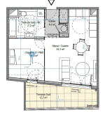 Confortable appartement T2, avec belle terrasse au calme de 12.7 m².
