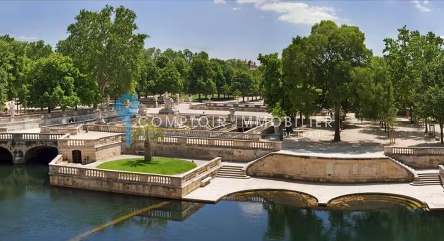 A quelques minutes à pied des Jardins de la Fontaine, spacieux appartement T3, en étage avec ascenseur et loggia.