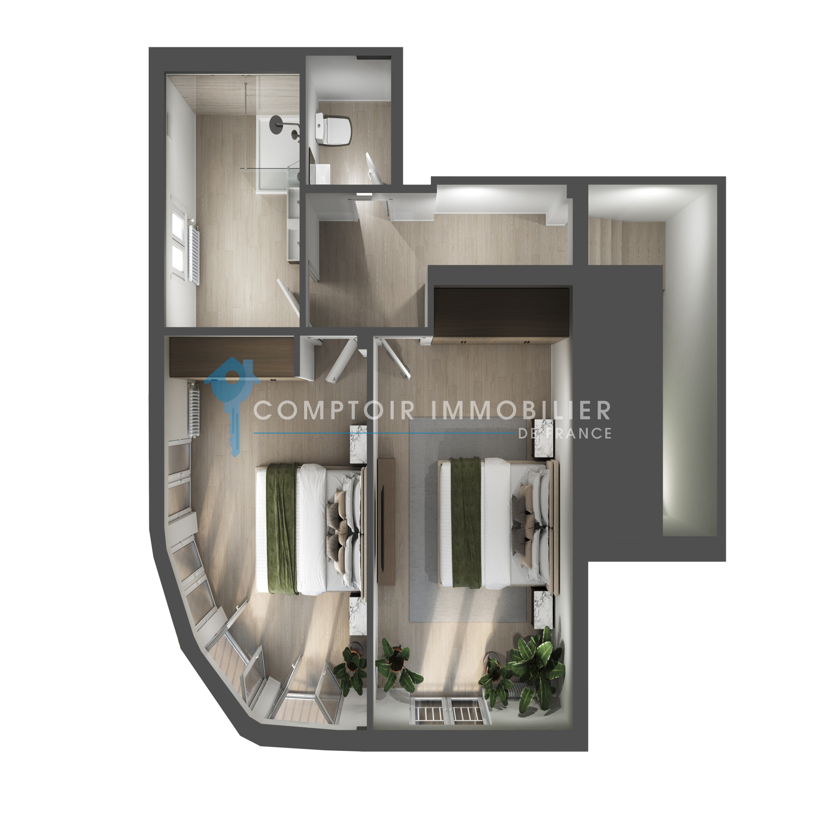 *Les étages desservis par ascenseur, sont quant à eux à destination d’habitation, 19 logements pour une surface totale de 1 700 M² habitables. Chaque appartement bénéficie d’un extérieur privé, terrasse ou jardinet.