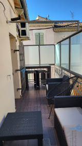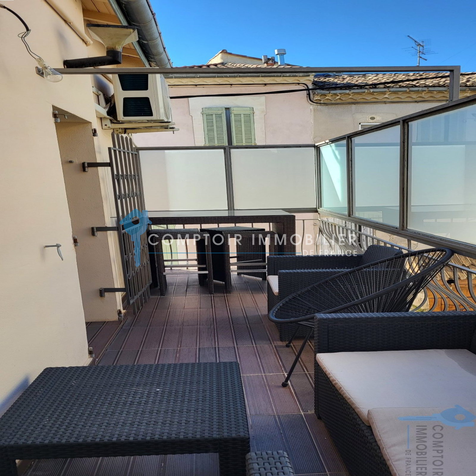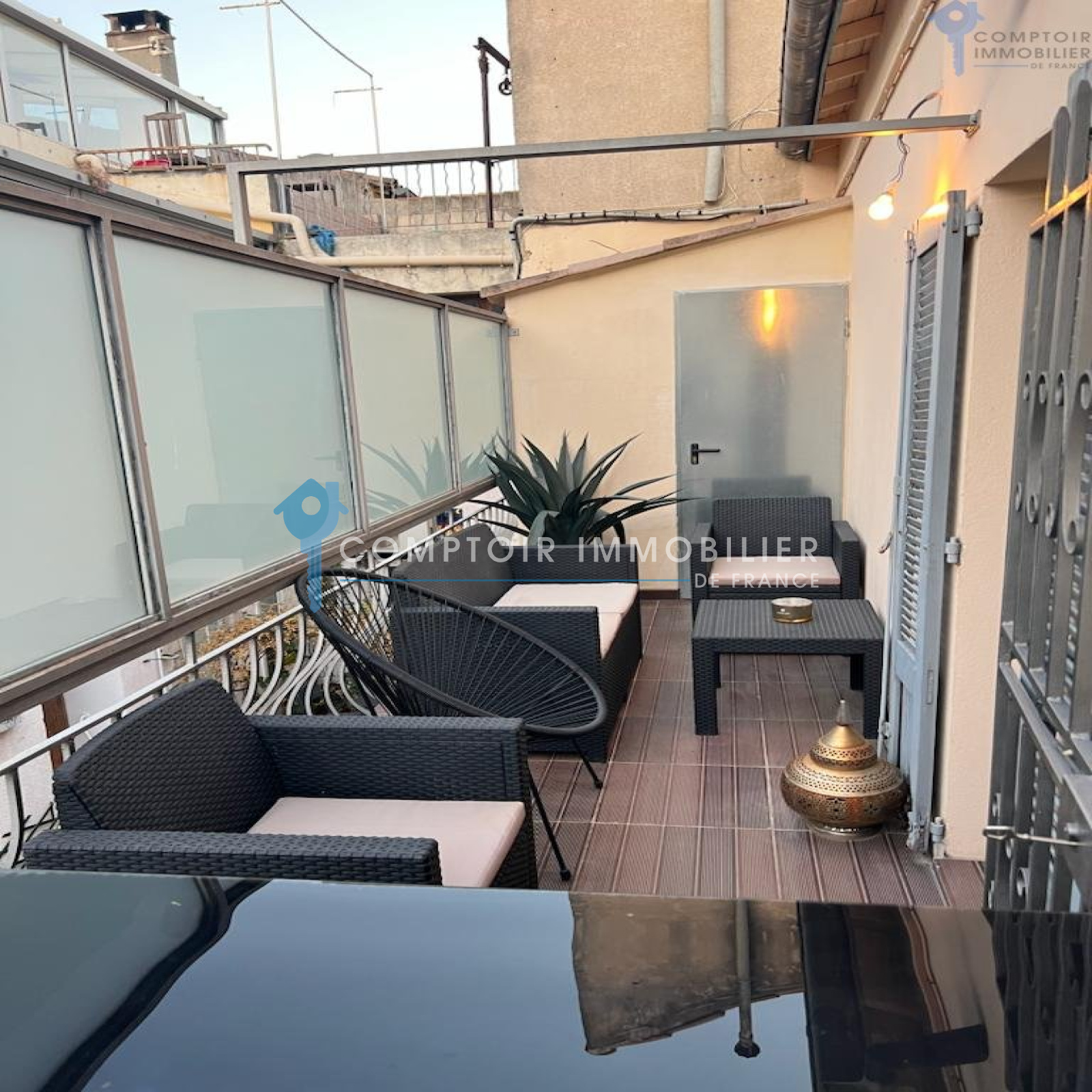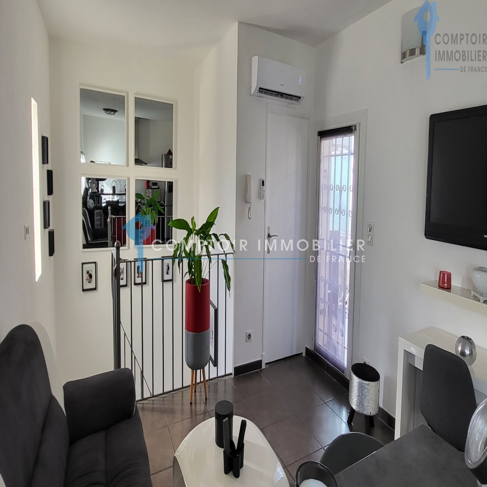 NIMES Quartier Jean Jaurès, proche Jardins de la Fontaine - A ne pas rater !! Superbe maison de ville type 3 de 53,86m² habitables. En duplex inversé, elle est composée en rez de chaussée d'une entrée, d'un dégagement qui mène à 2 chambres dont une avec dressing, une salle d'eau et un WC séparé. A l'étage, la cuisine entièrement aménagée et équipée ouvre sur le séjour climatisé et lumineux exposé nord/sud. Véritable plus dans un des quartiers les plus recherchés de la ville, la terrasse à l'abri des regards ! Totalement rénovée à l'intérieur comme à l'extérieur, venez poser vos valises dans ce cocoon ! Bon à savoir, tous les meubles peuvent rester. Ne passez pas à côté !
